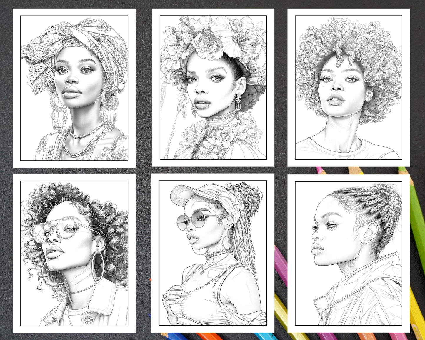 - 50 Unique Illustrations: A captivating collection of portraits, each meticulously detailed to showcase the natural beauty and strength of African American women.