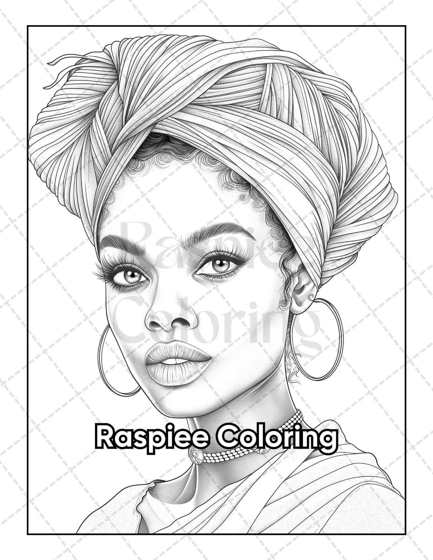 50 Black Women Portrait Coloring Pages for Adults Printable PDF Instant Download