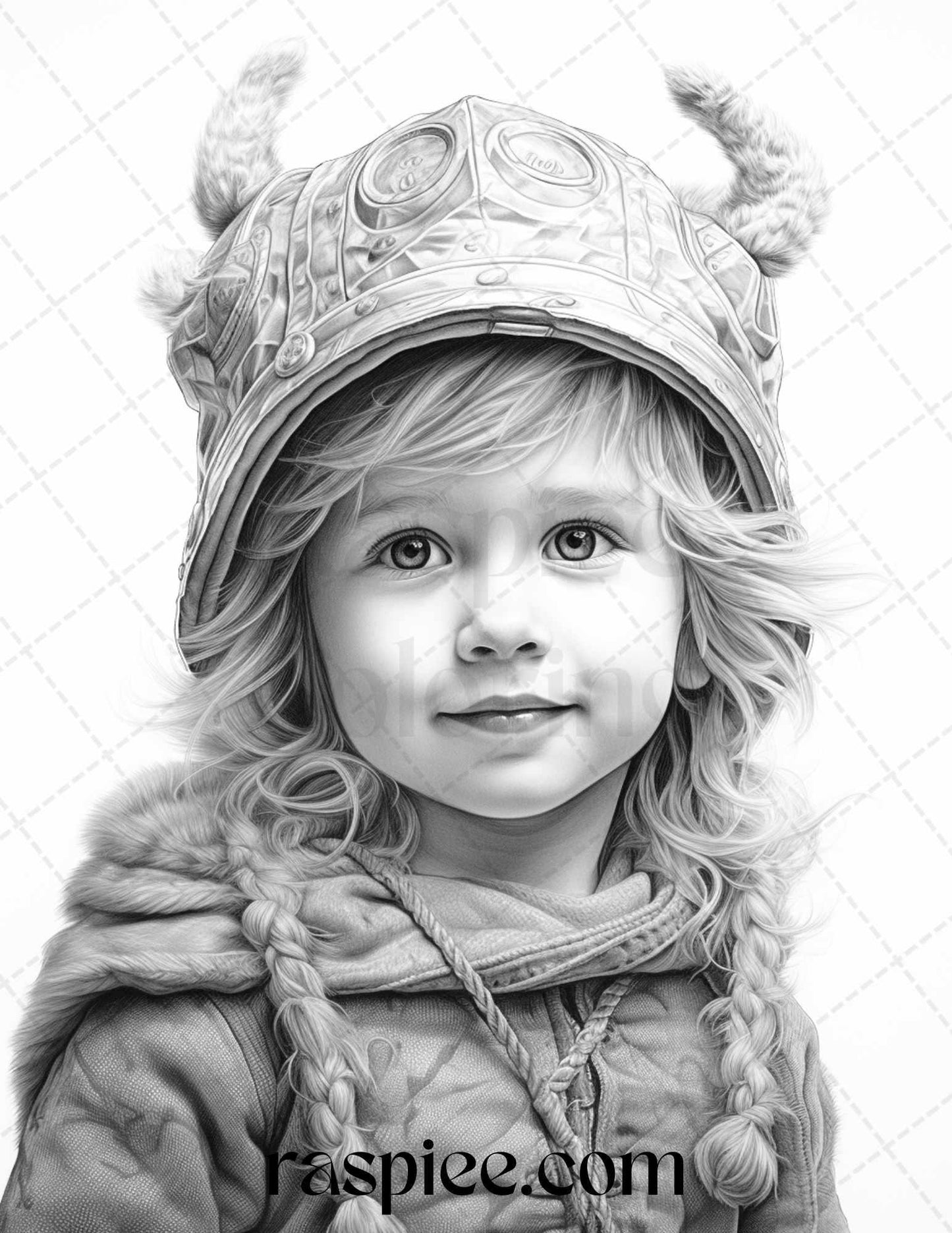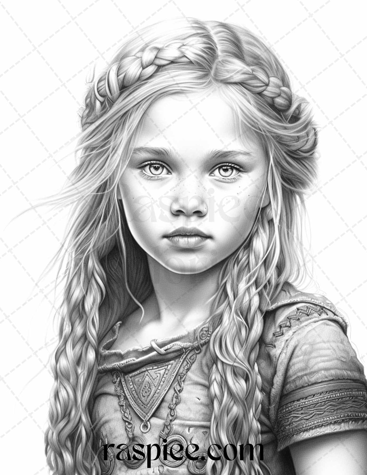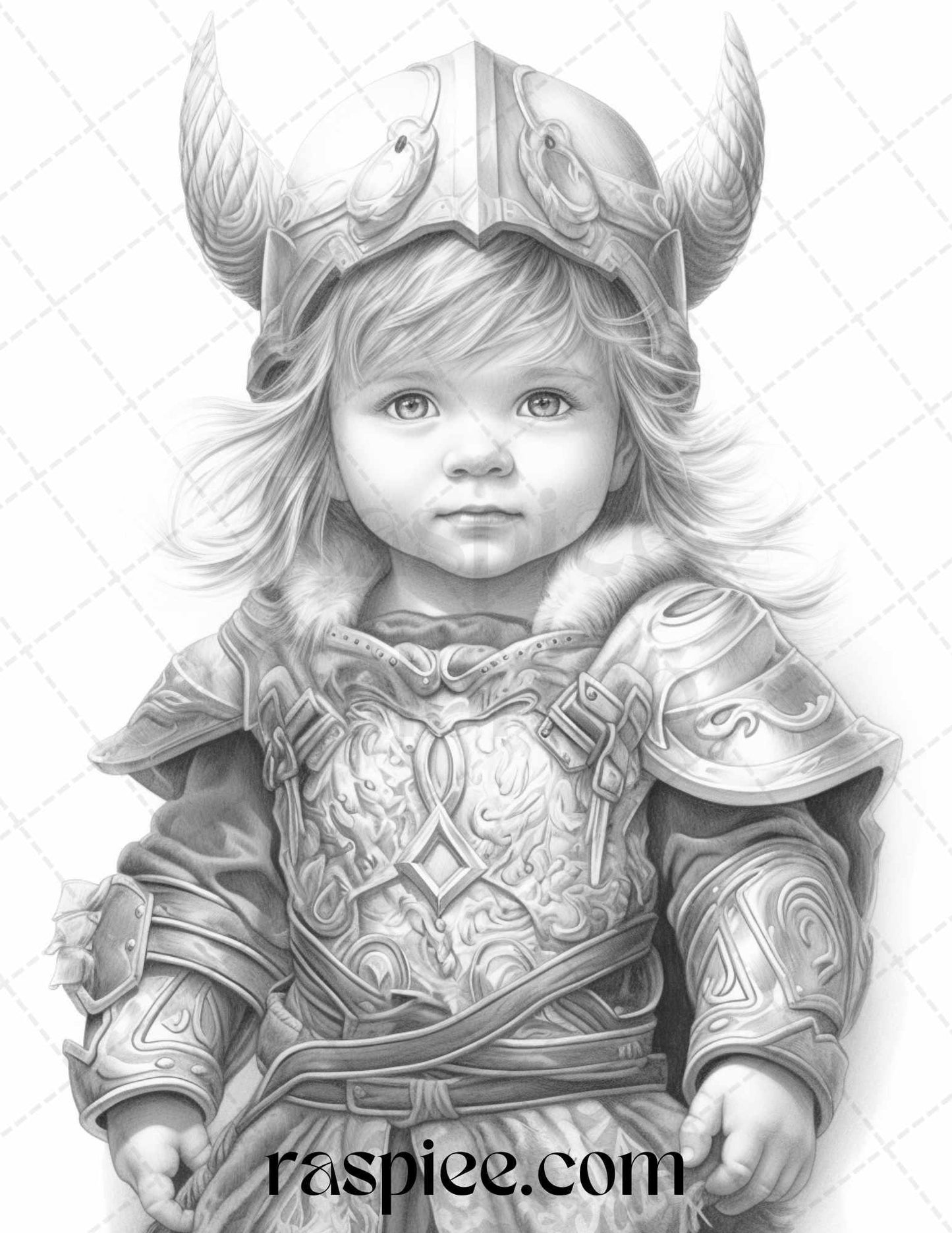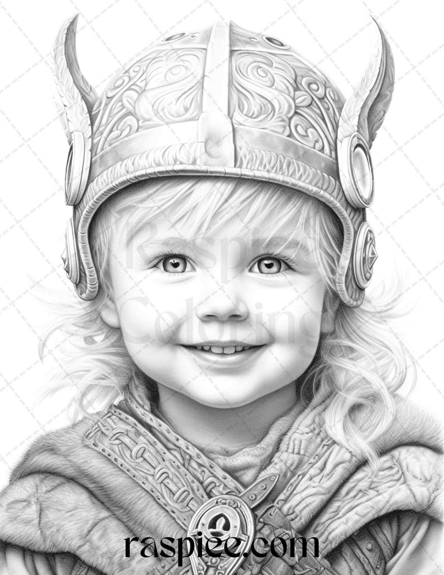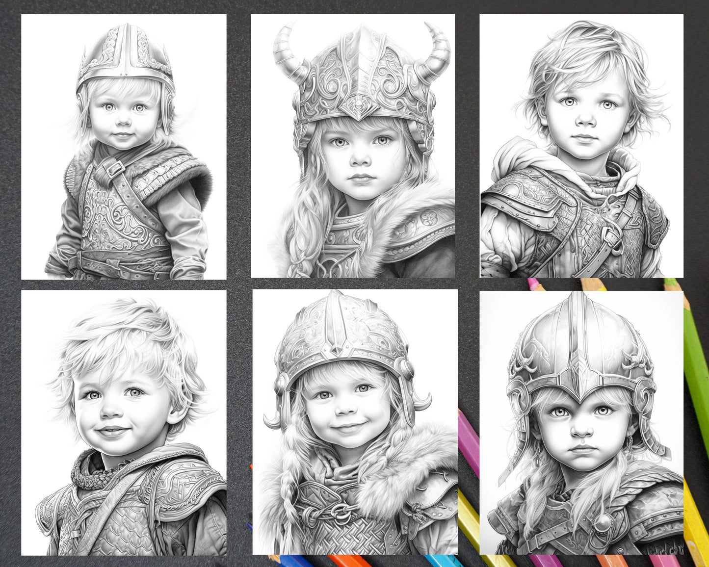 58 Little Viking Girls Boys Portrait Grayscale Coloring Pages Printable, PDF File Instant Download