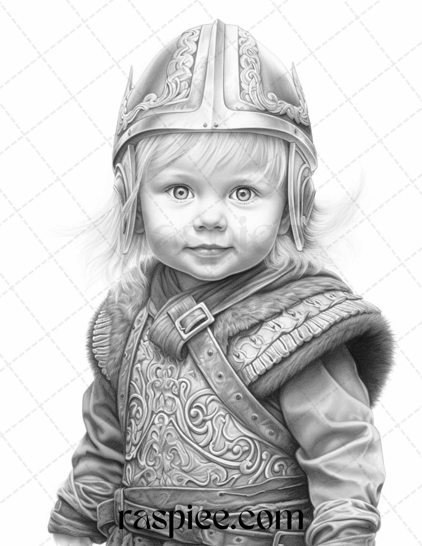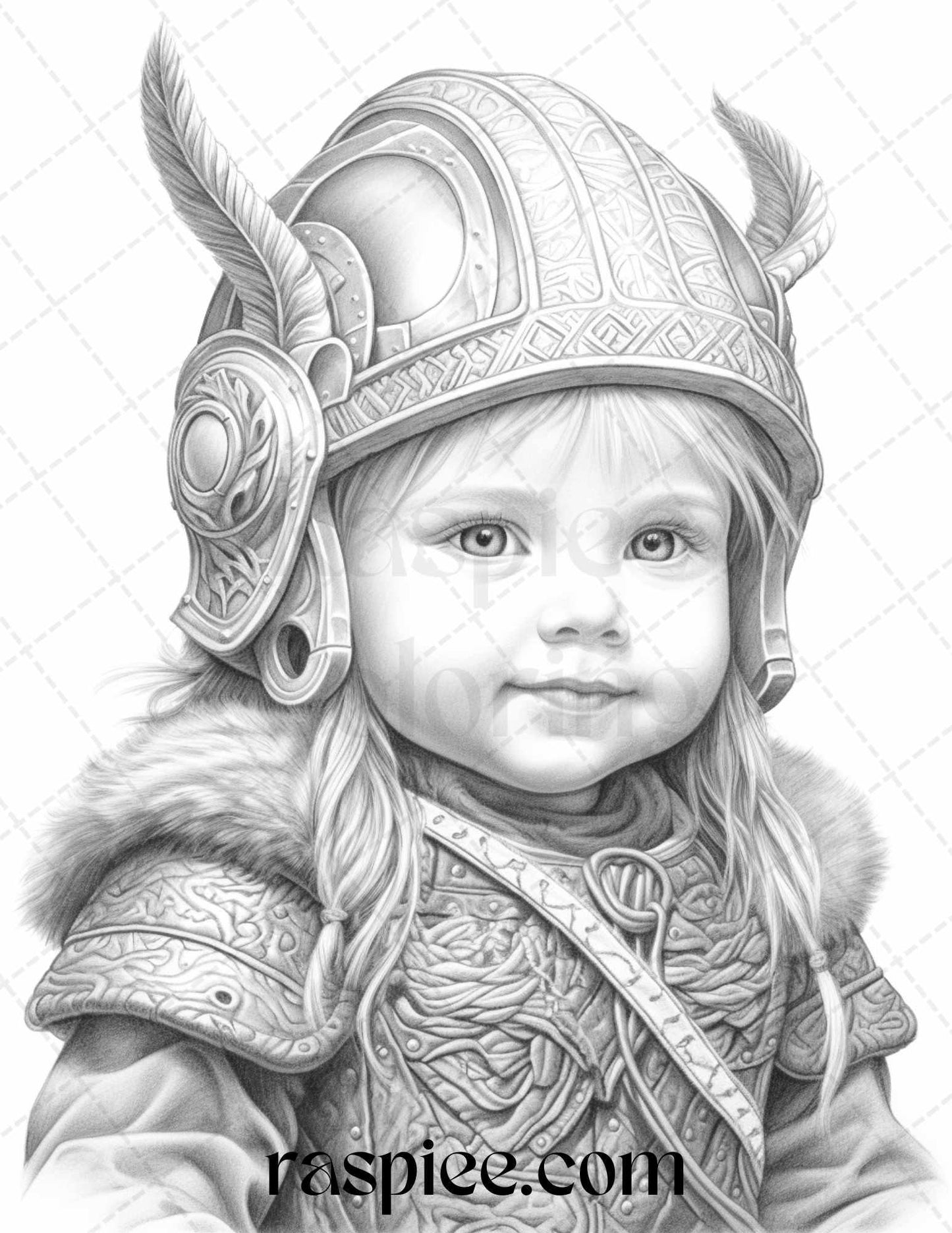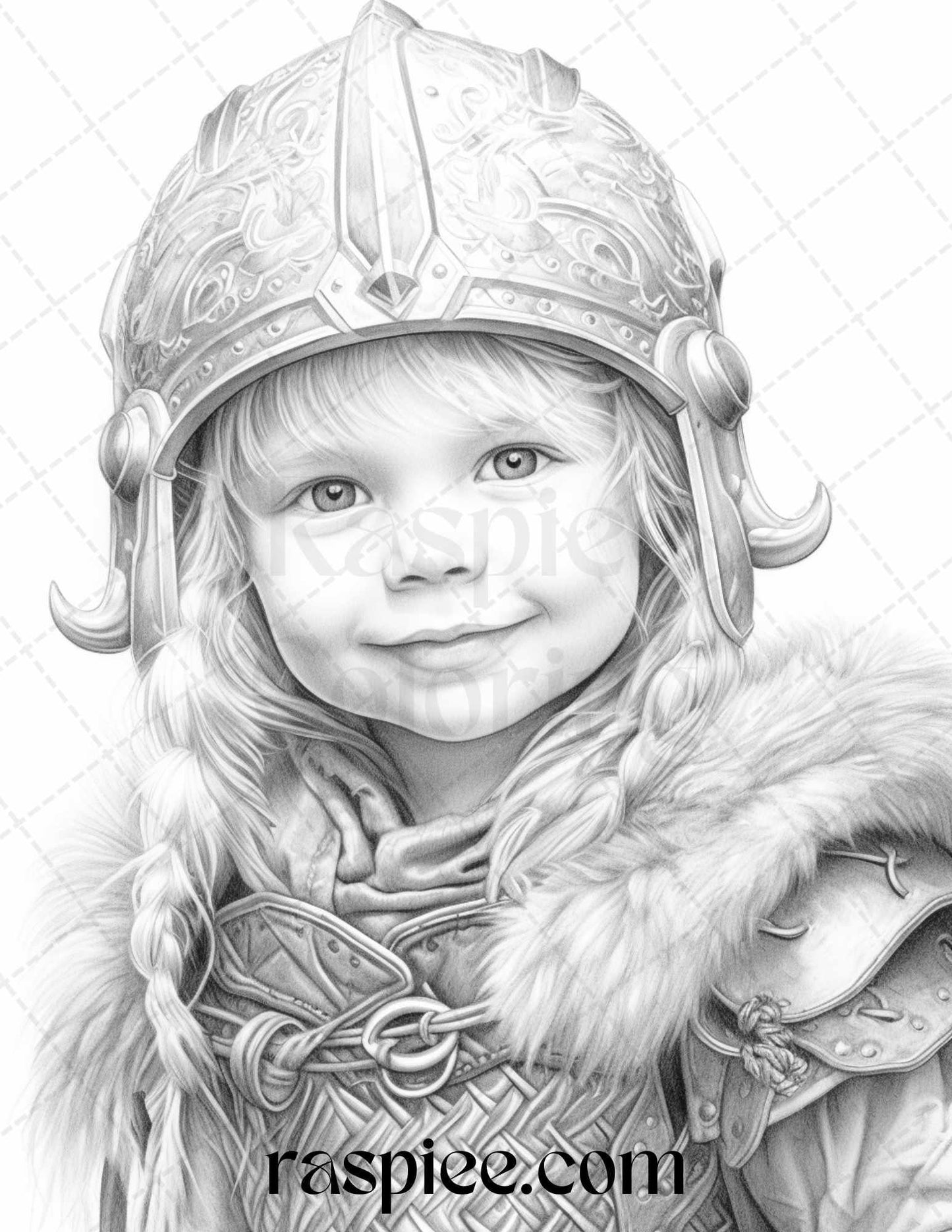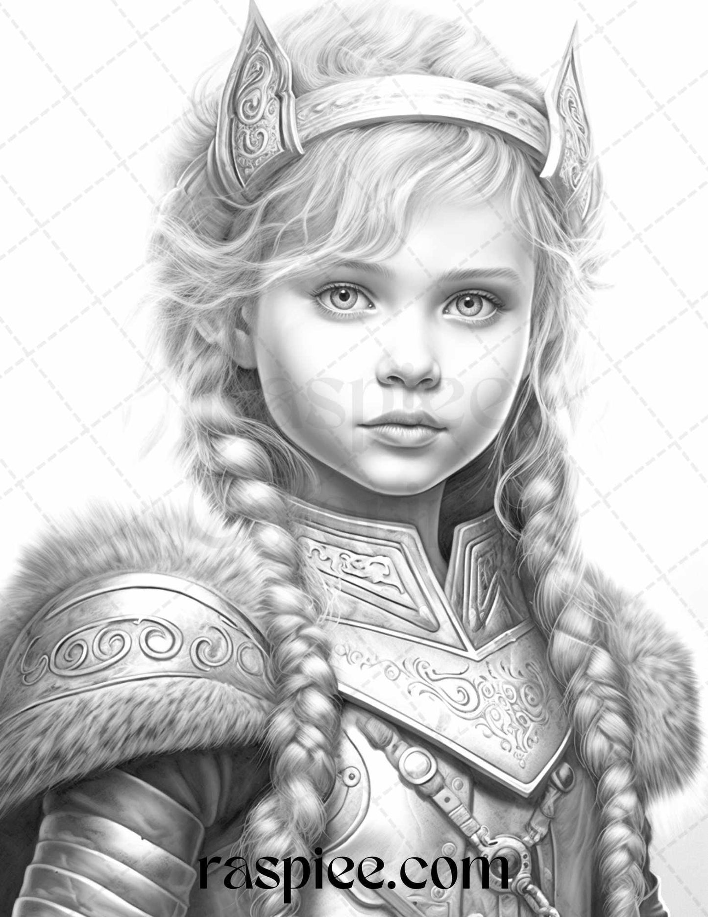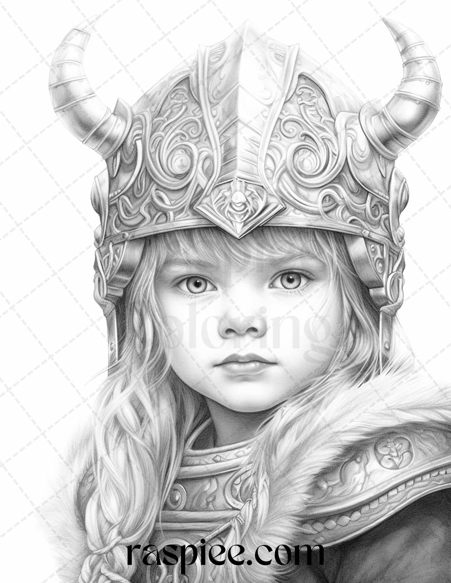 58 Little Viking Girls Boys Portrait Grayscale Coloring Pages Printable, PDF File Instant Download