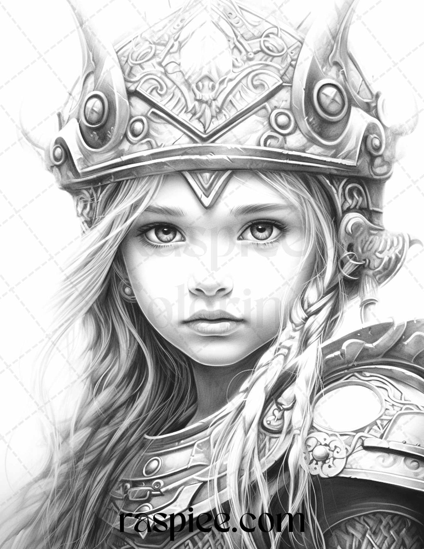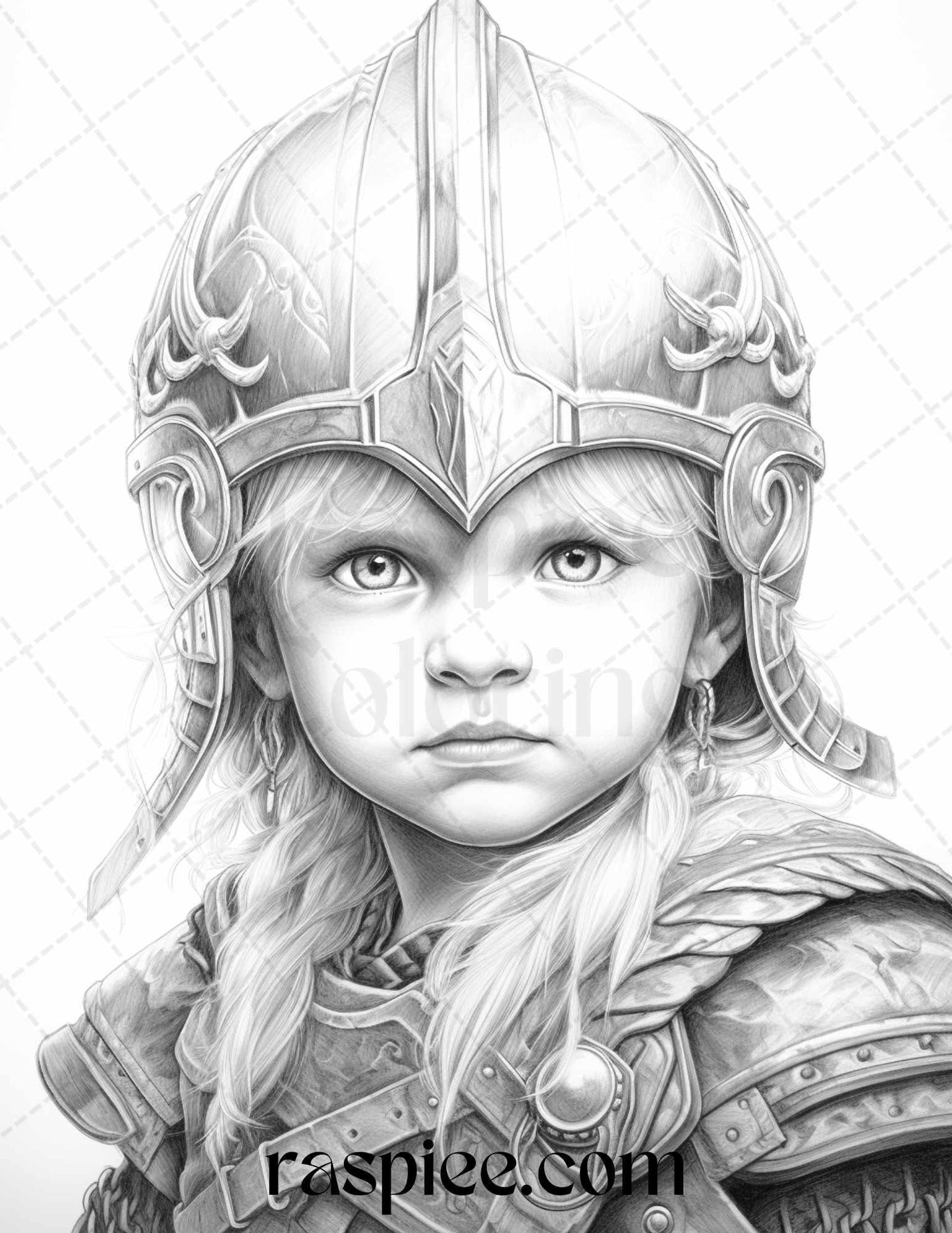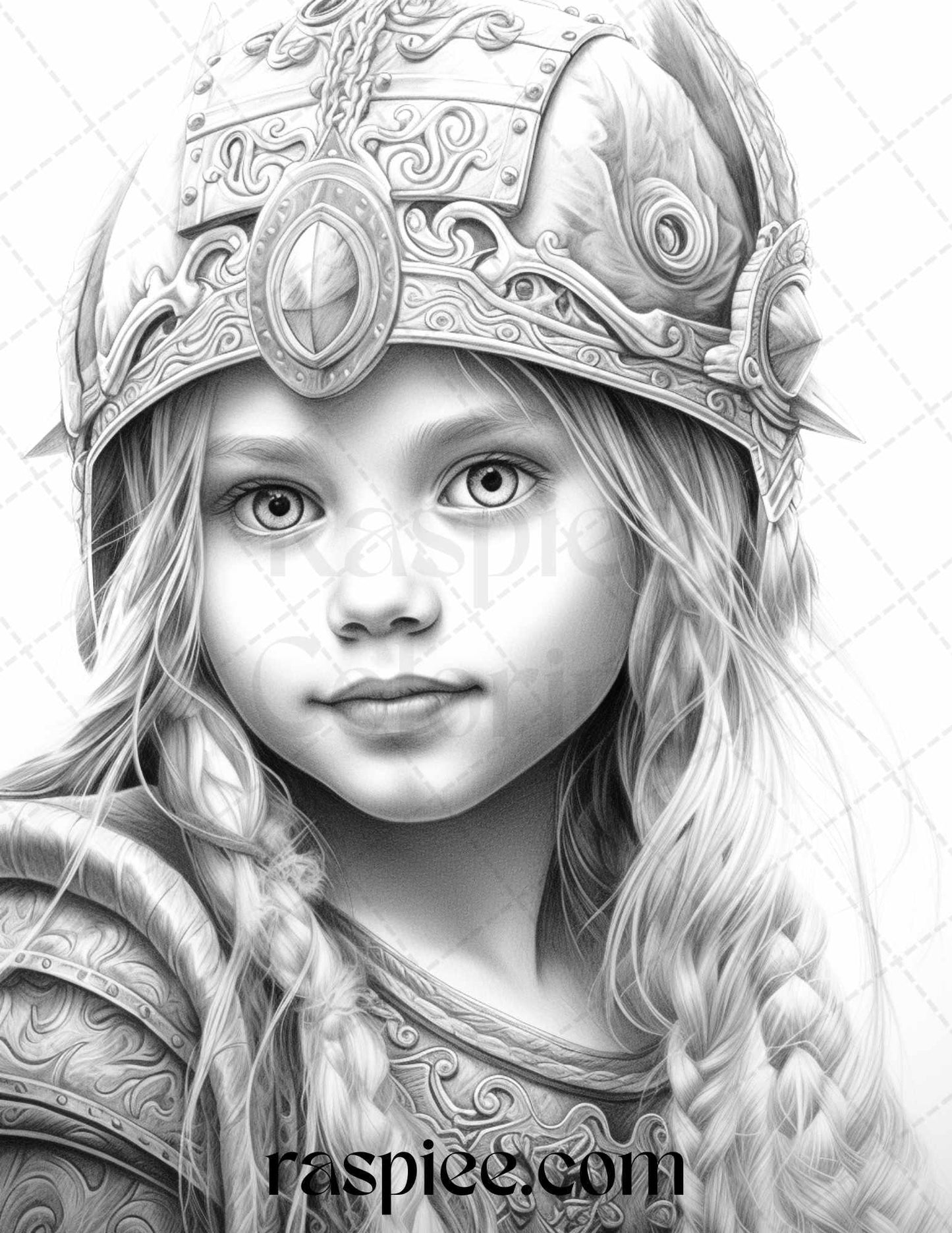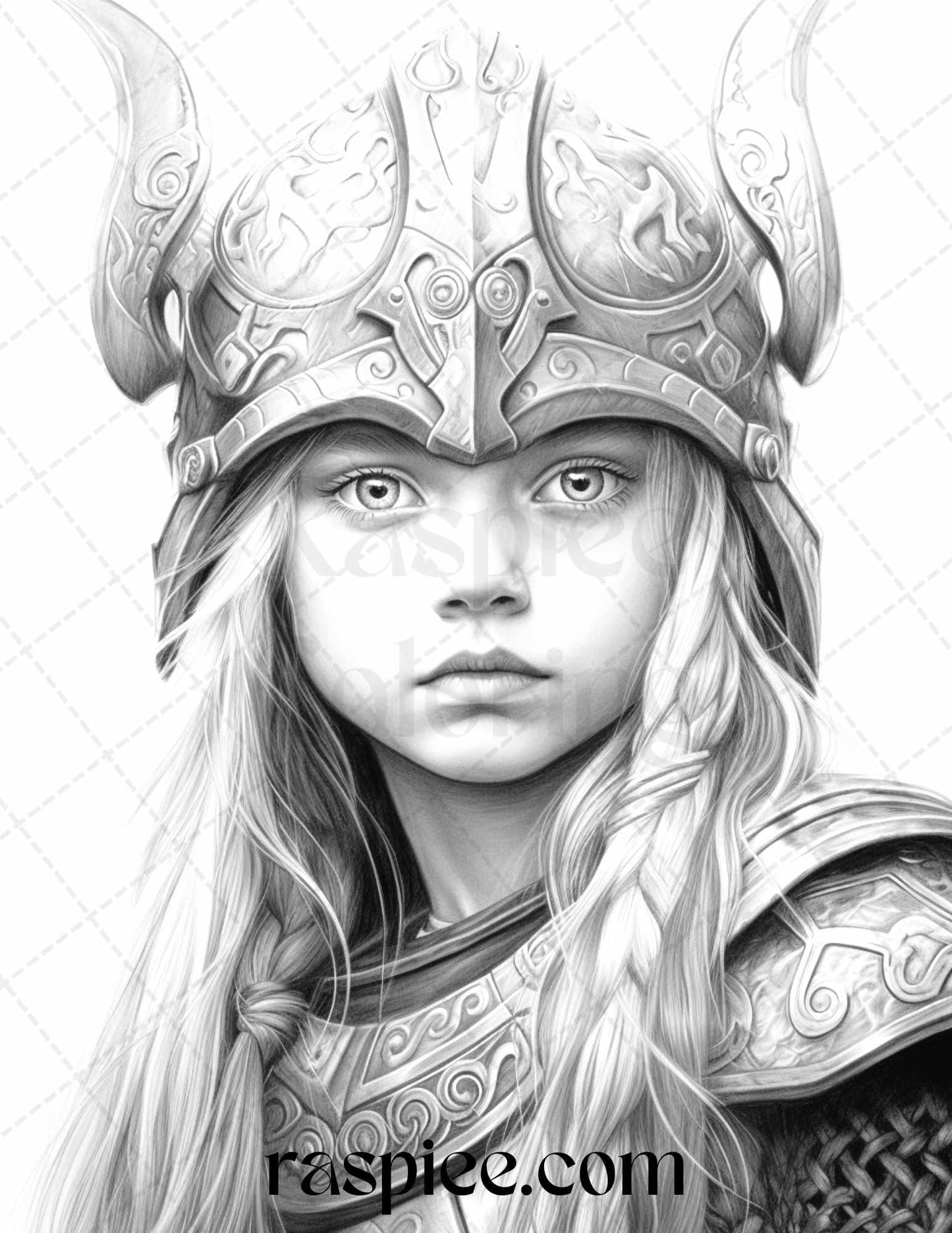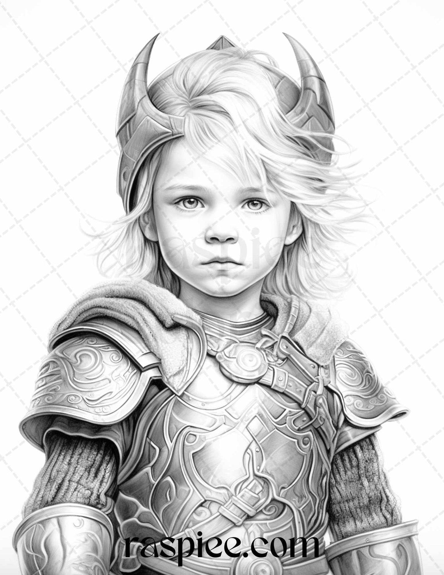 58 Little Viking Girls Boys Portrait Grayscale Coloring Pages Printable, PDF File Instant Download