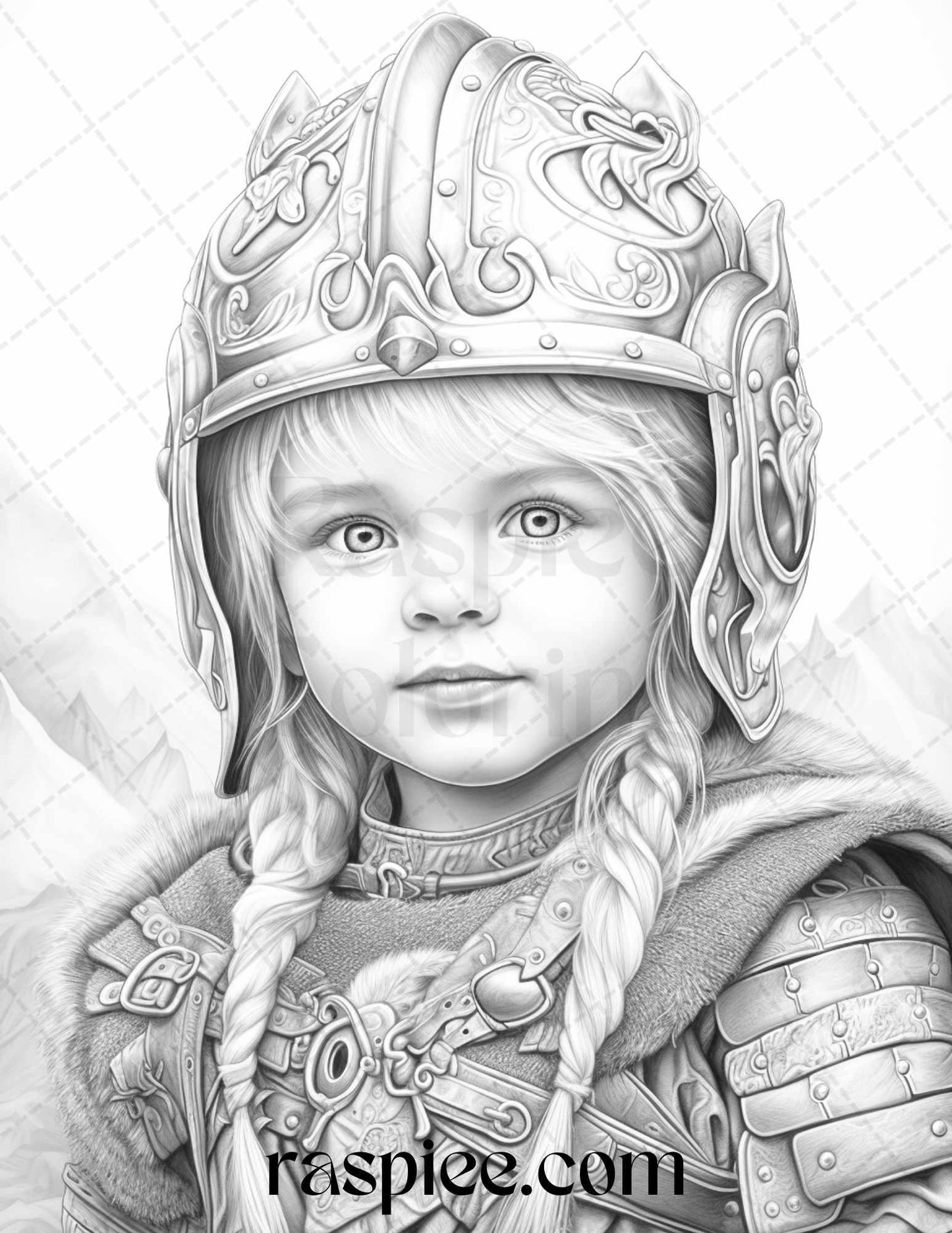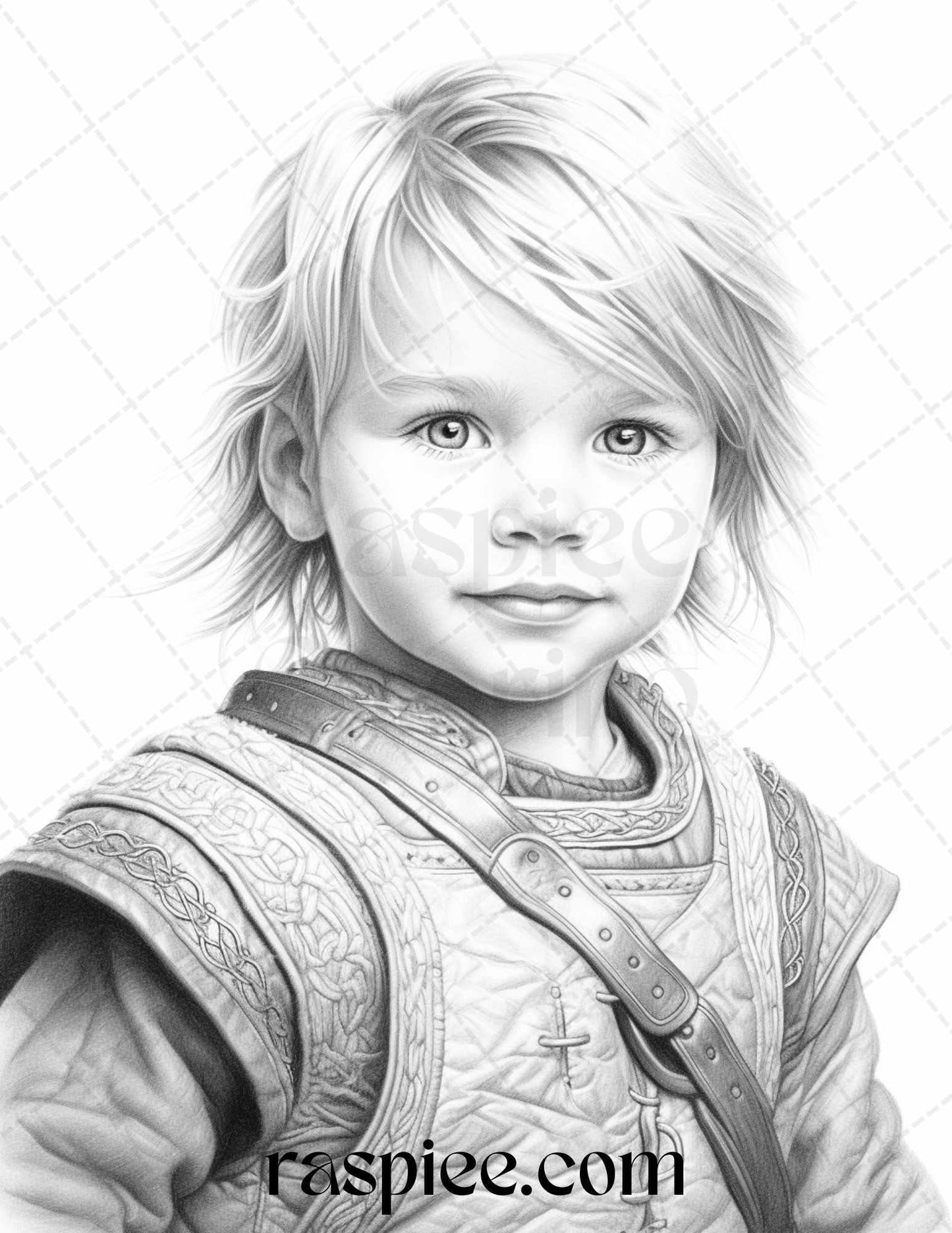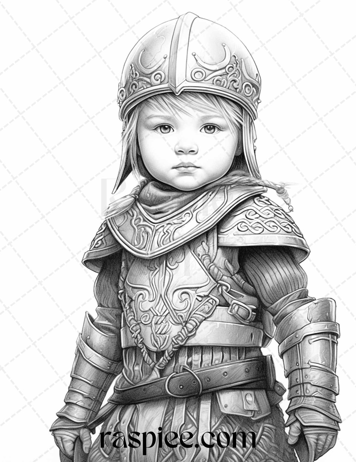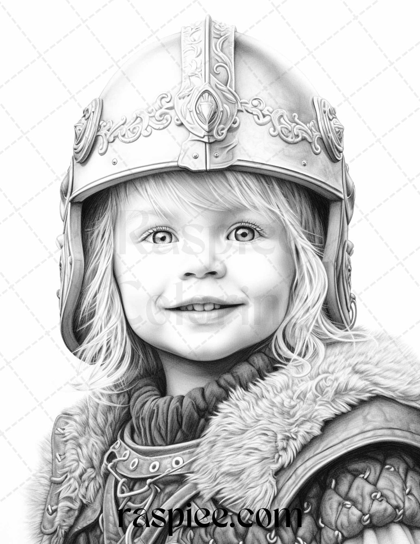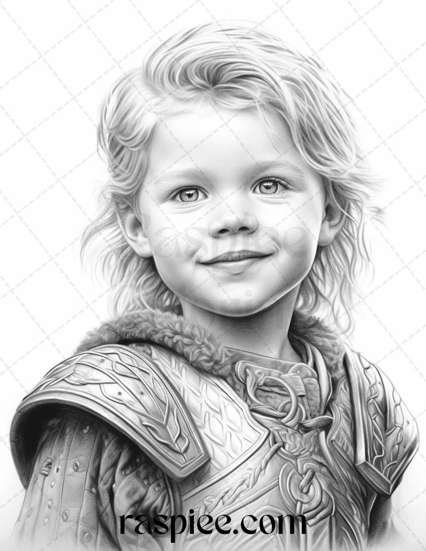 58 Little Viking Girls Boys Portrait Grayscale Coloring Pages Printable, PDF File Instant Download