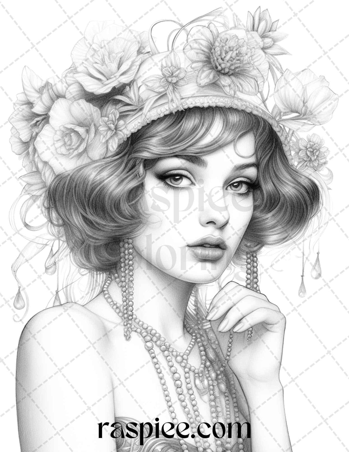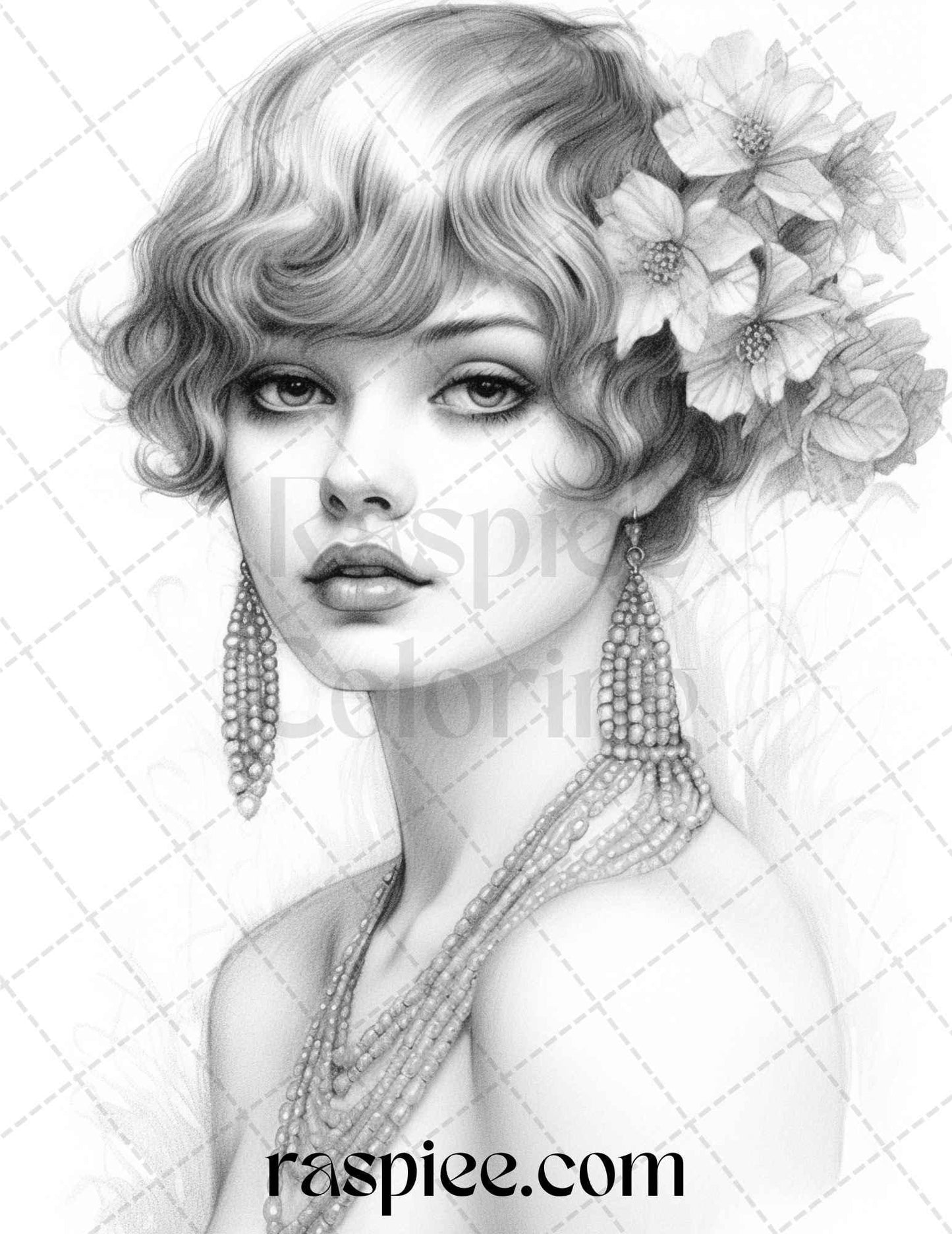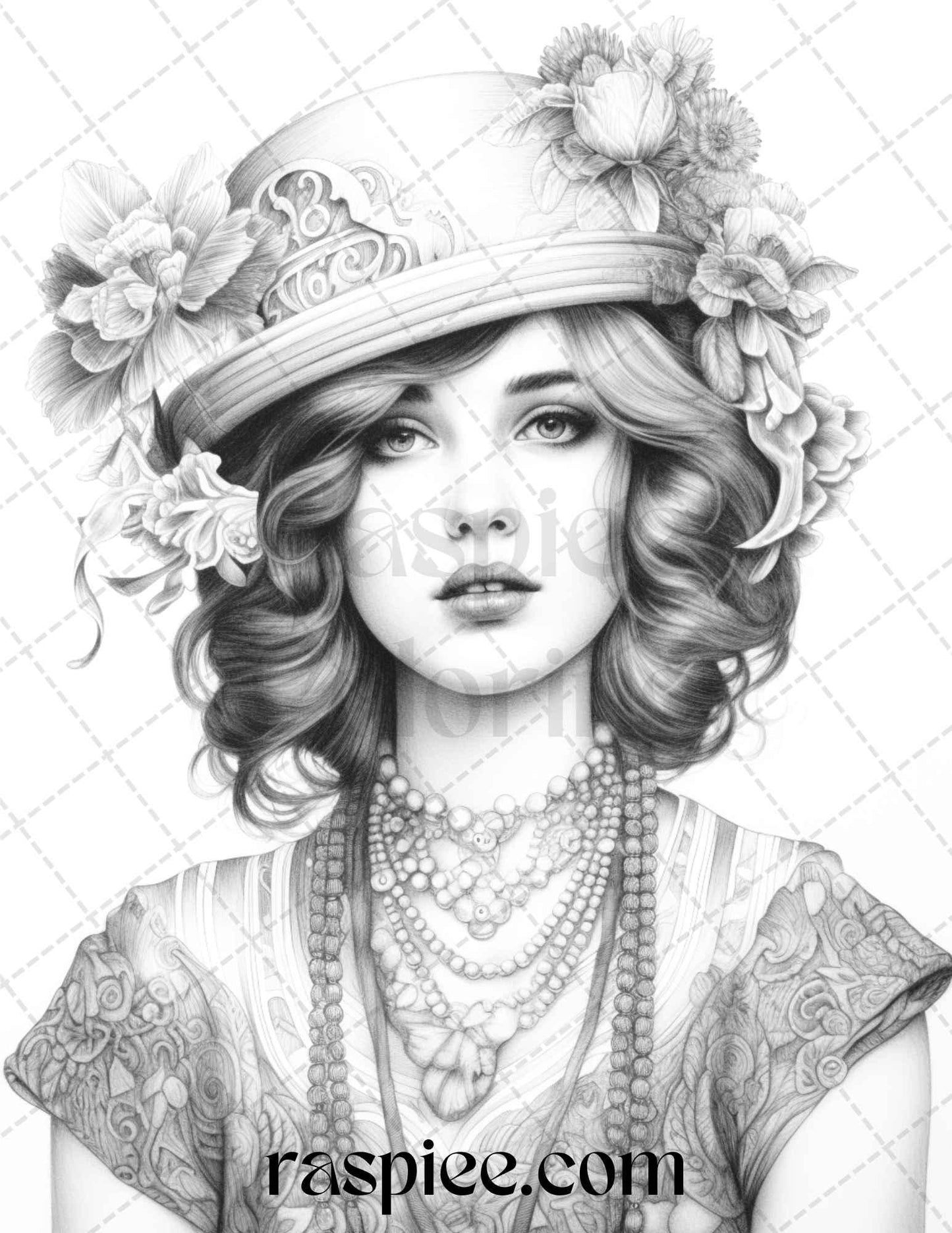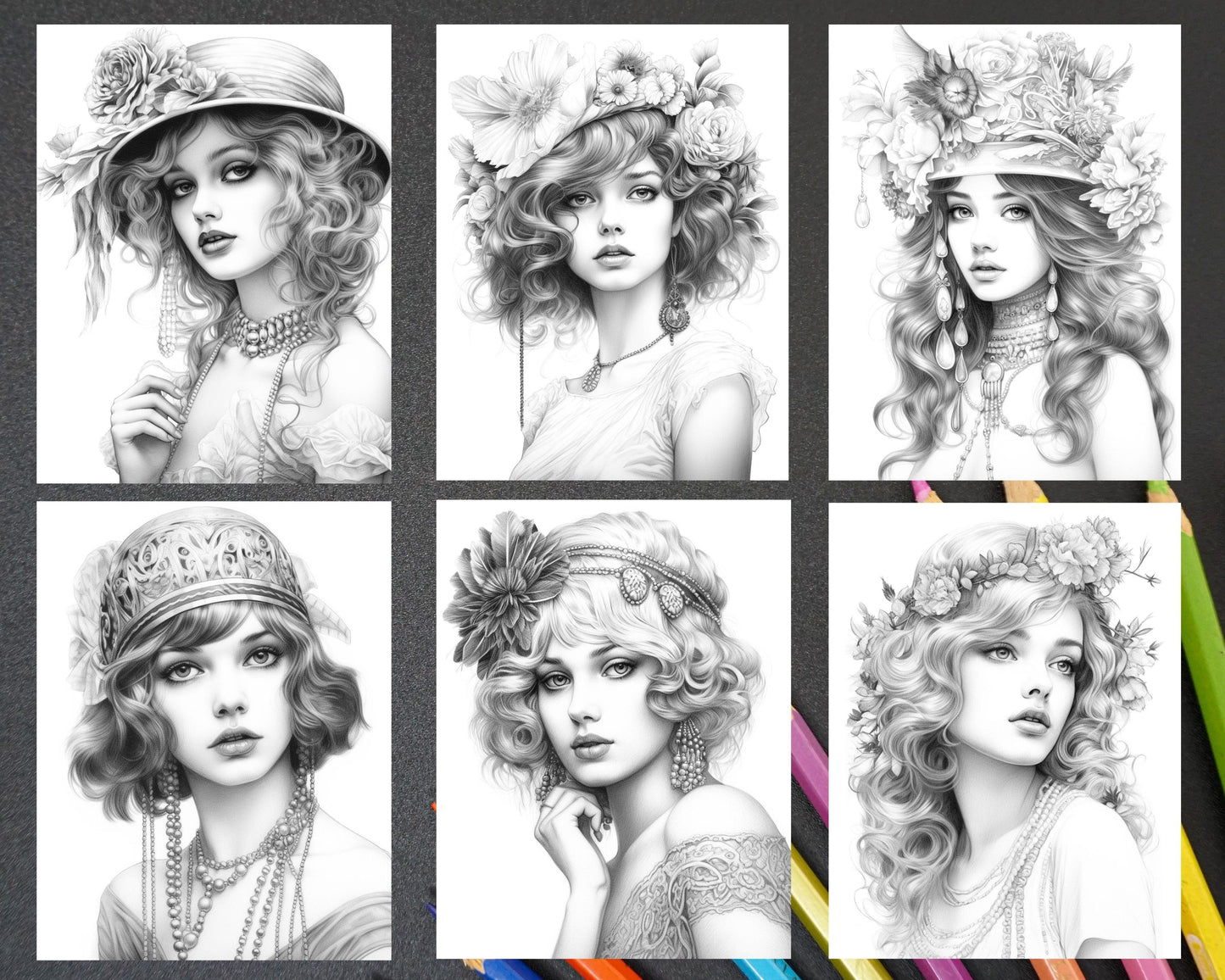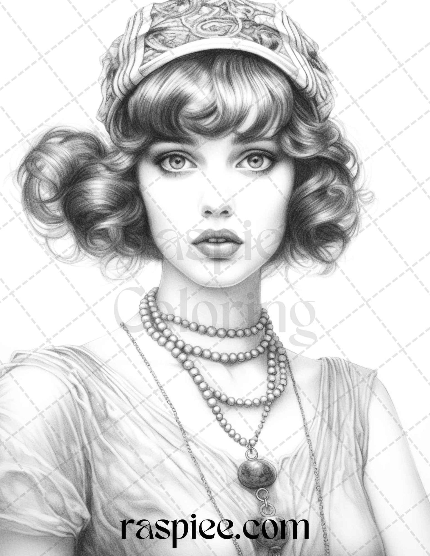 40 Beautiful Gatsby Girls Grayscale Coloring Pages Printable for Adults, PDF File Instant Download