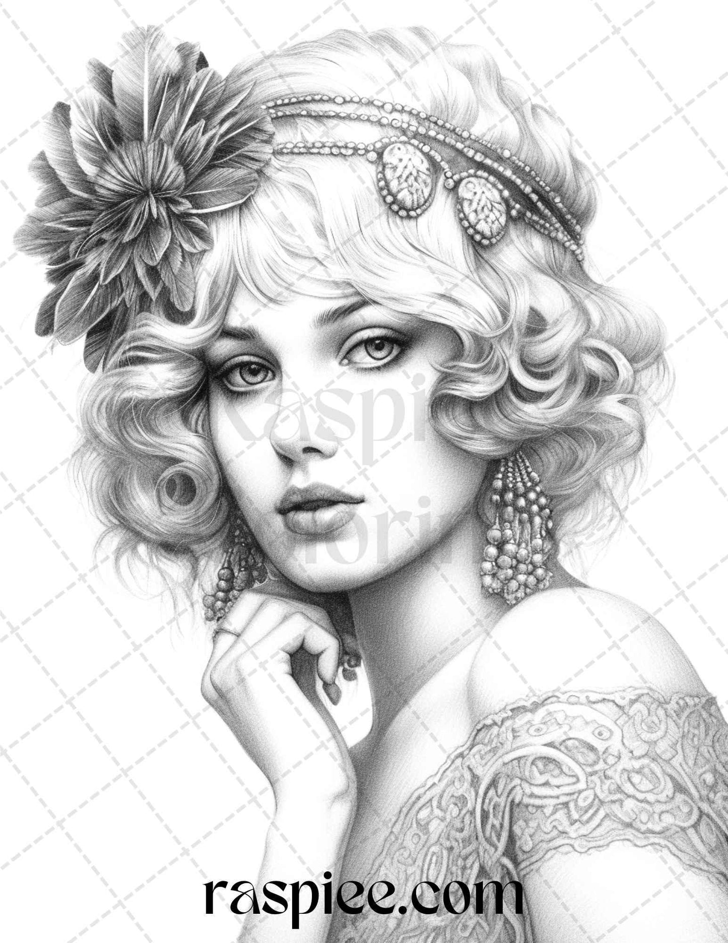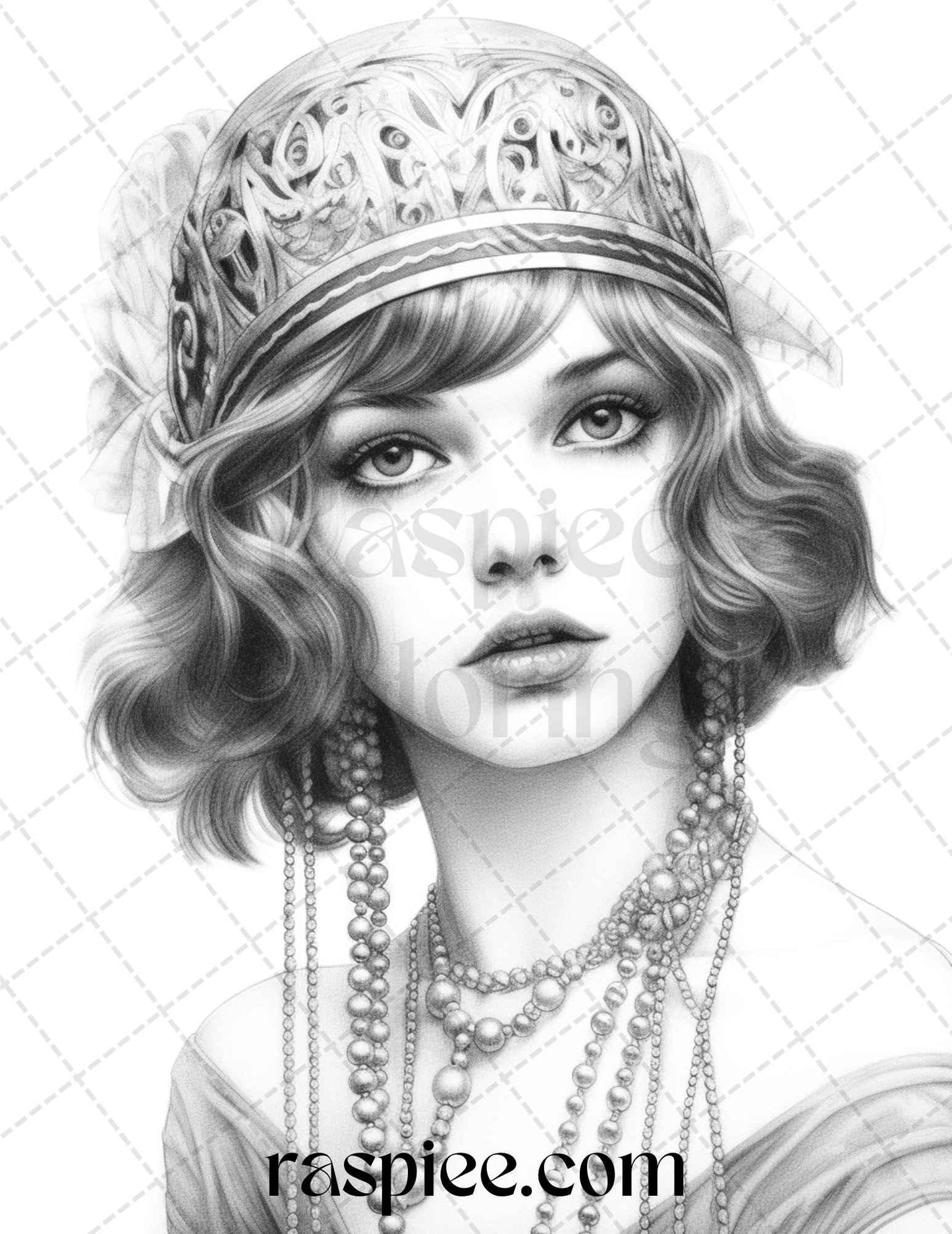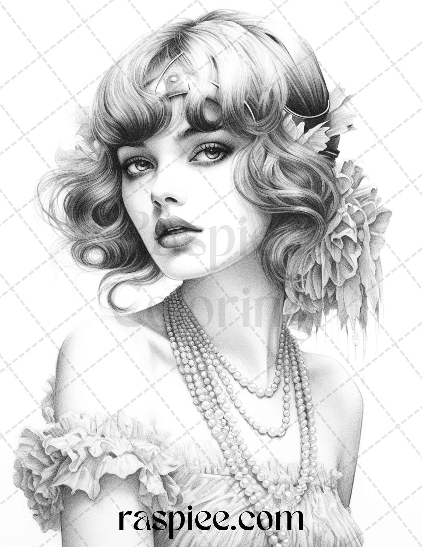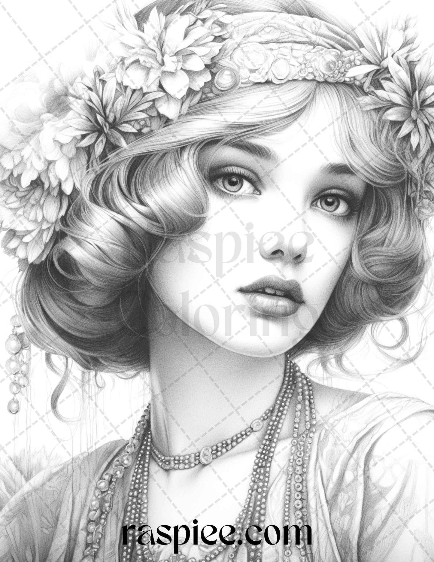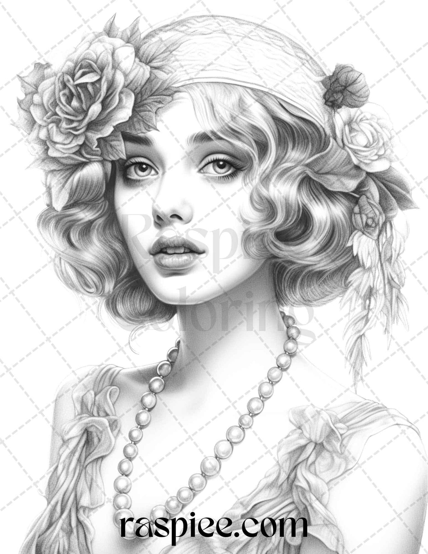 40 Beautiful Gatsby Girls Grayscale Coloring Pages Printable for Adults, PDF File Instant Download