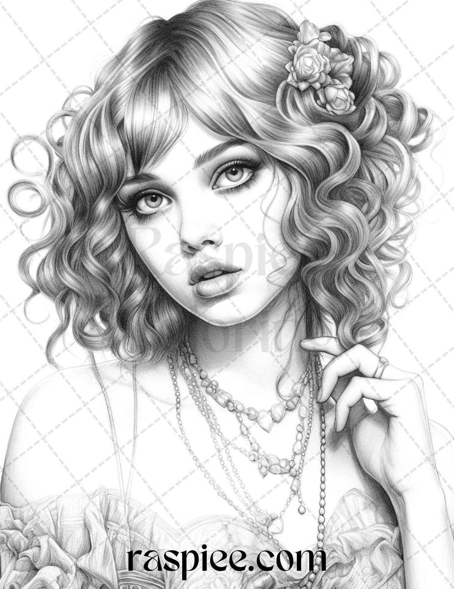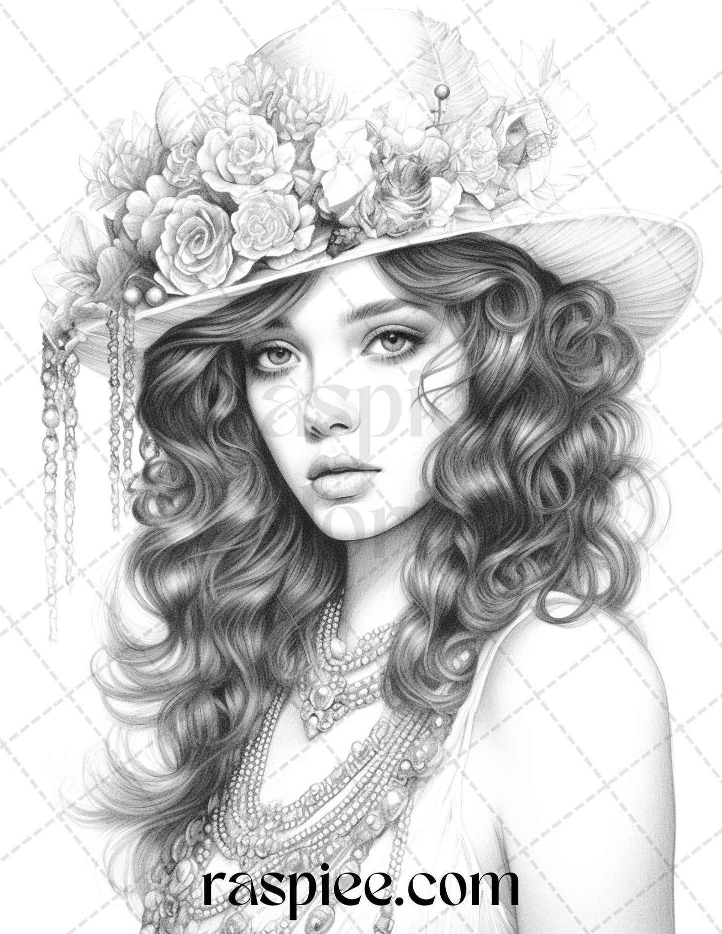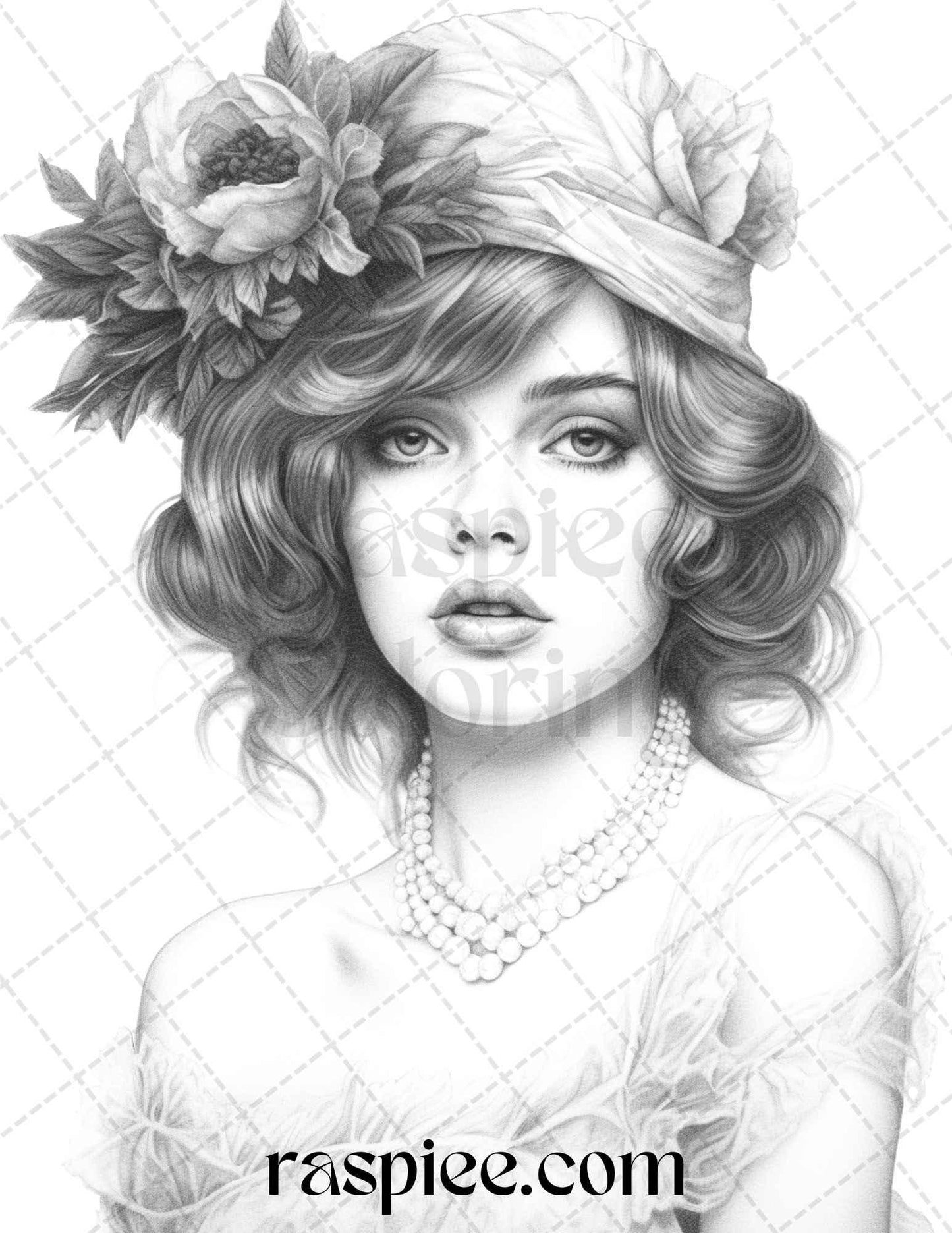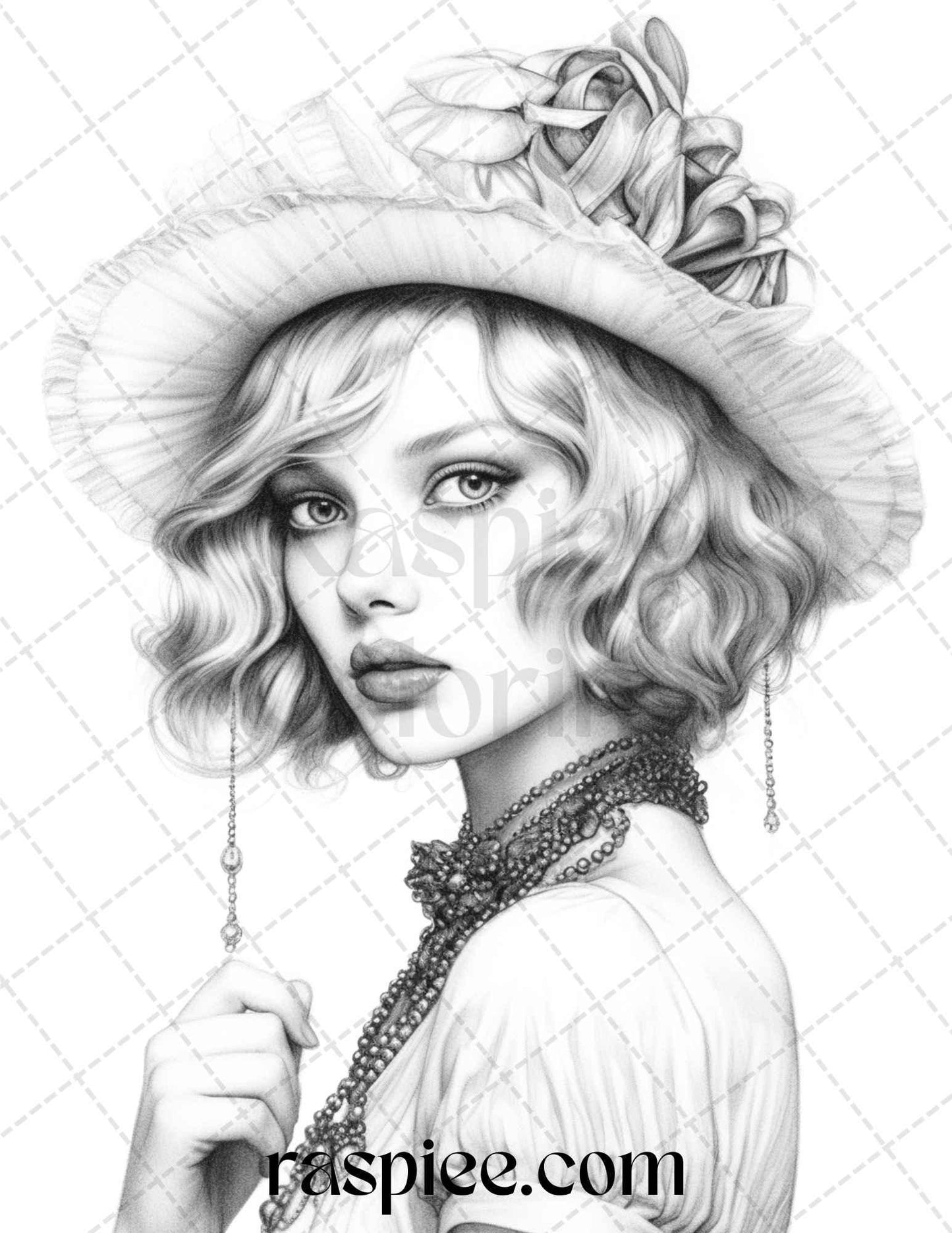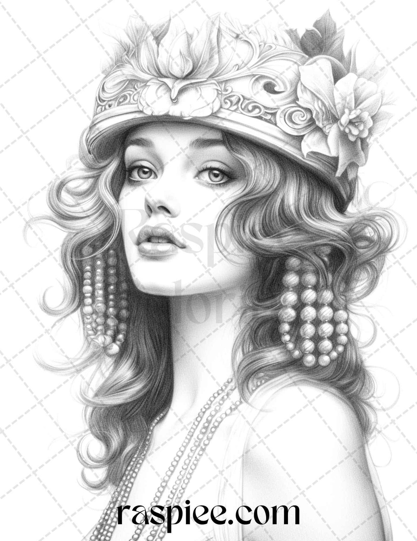 40 Beautiful Gatsby Girls Grayscale Coloring Pages Printable for Adults, PDF File Instant Download