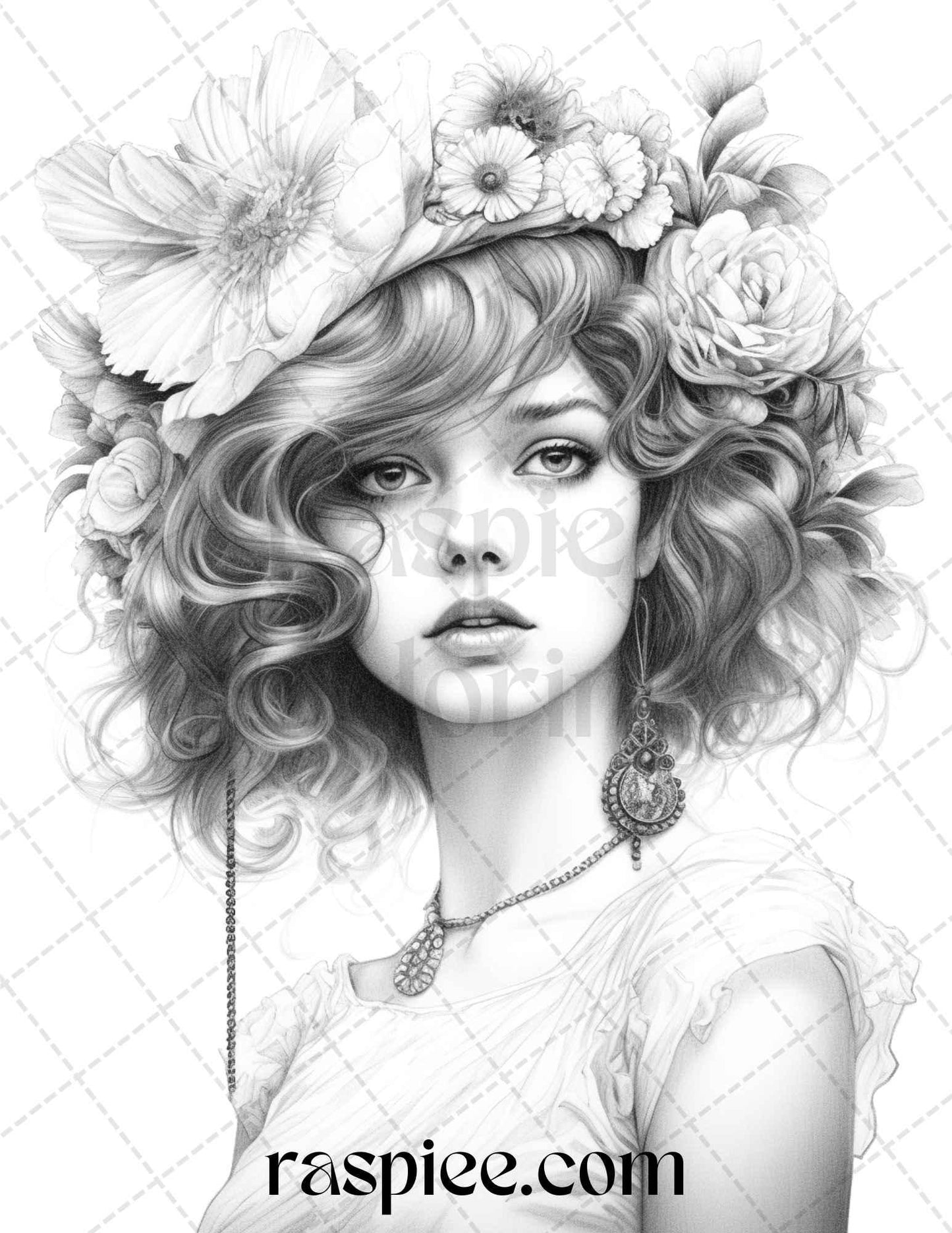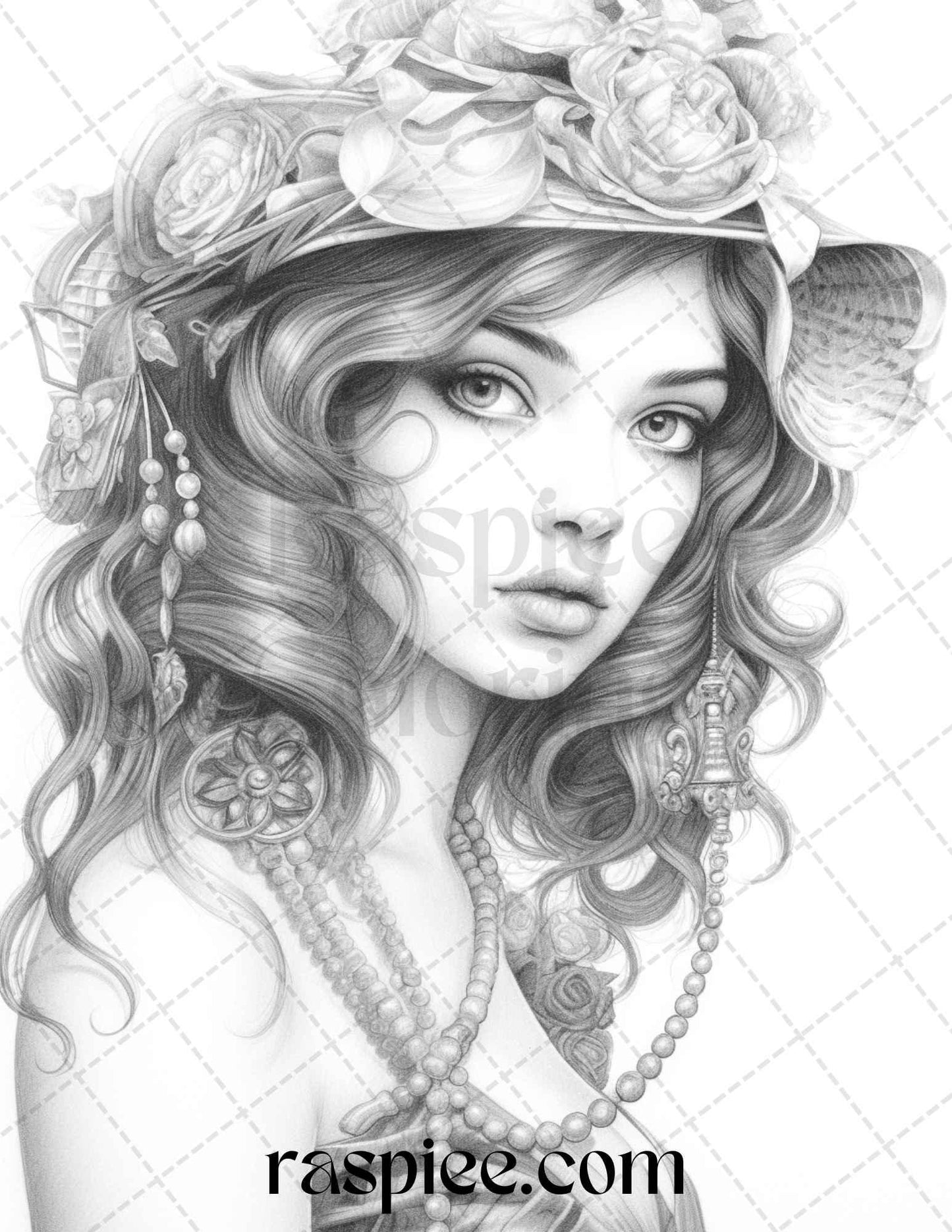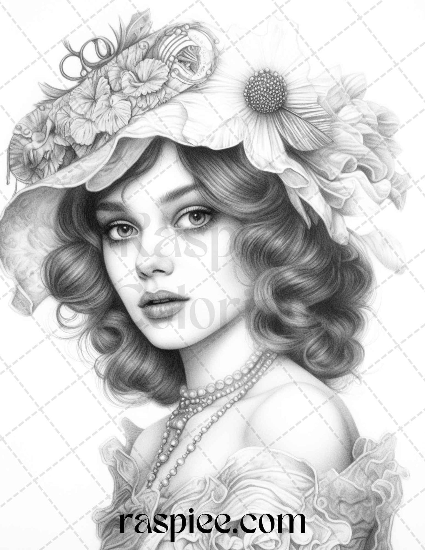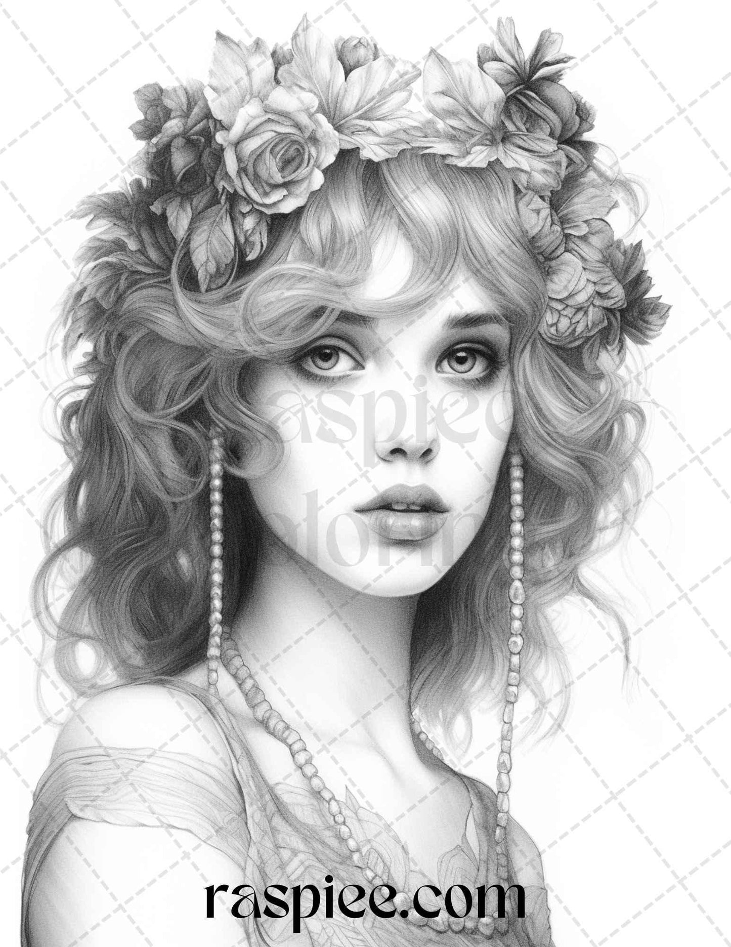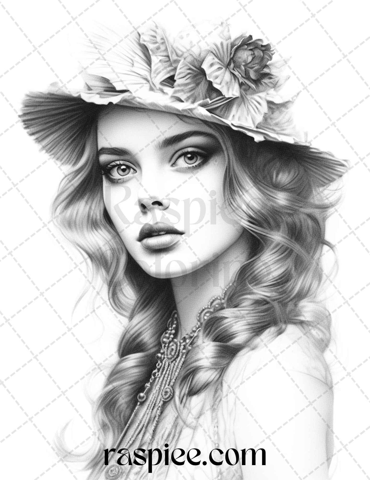 40 Beautiful Gatsby Girls Grayscale Coloring Pages Printable for Adults, PDF File Instant Download