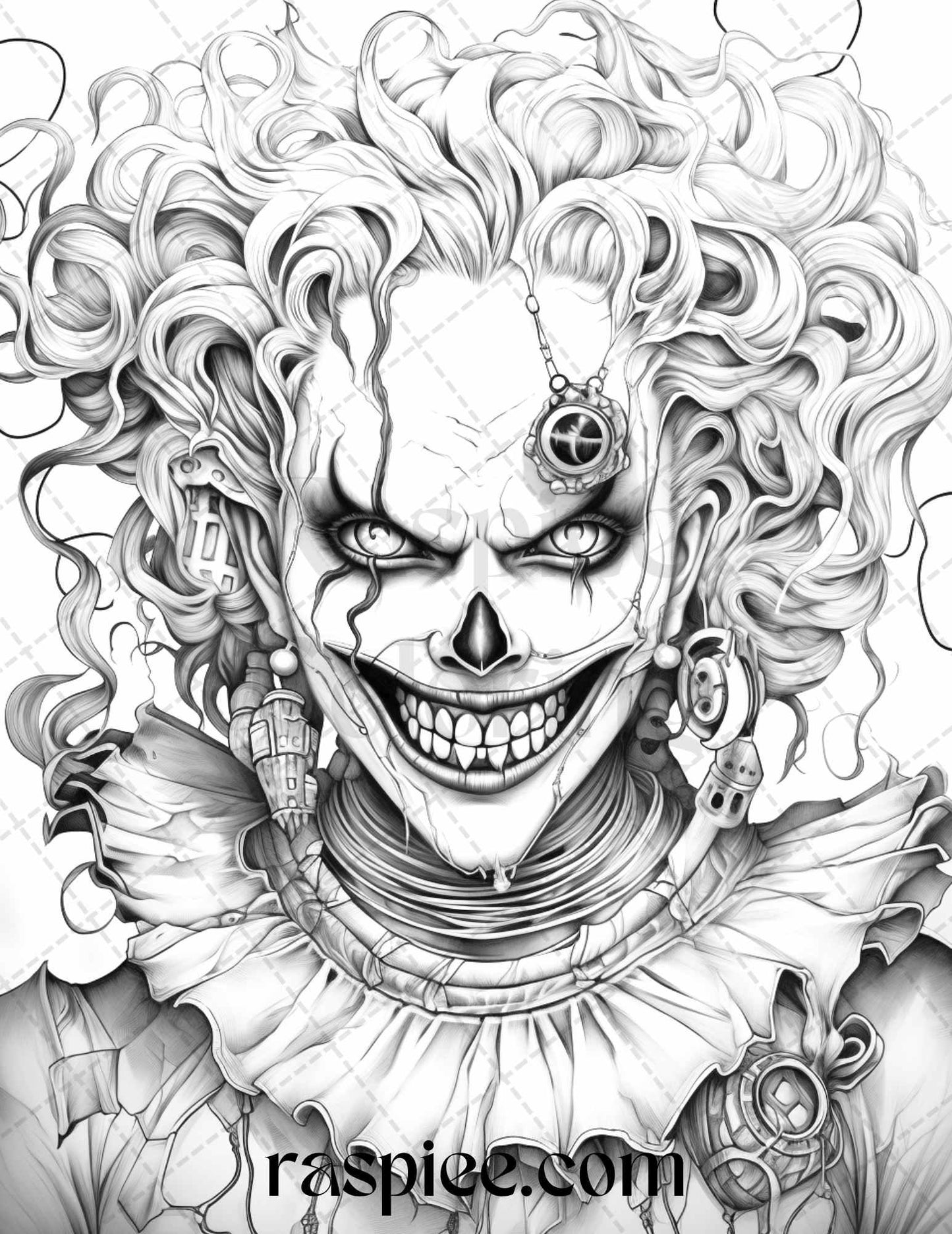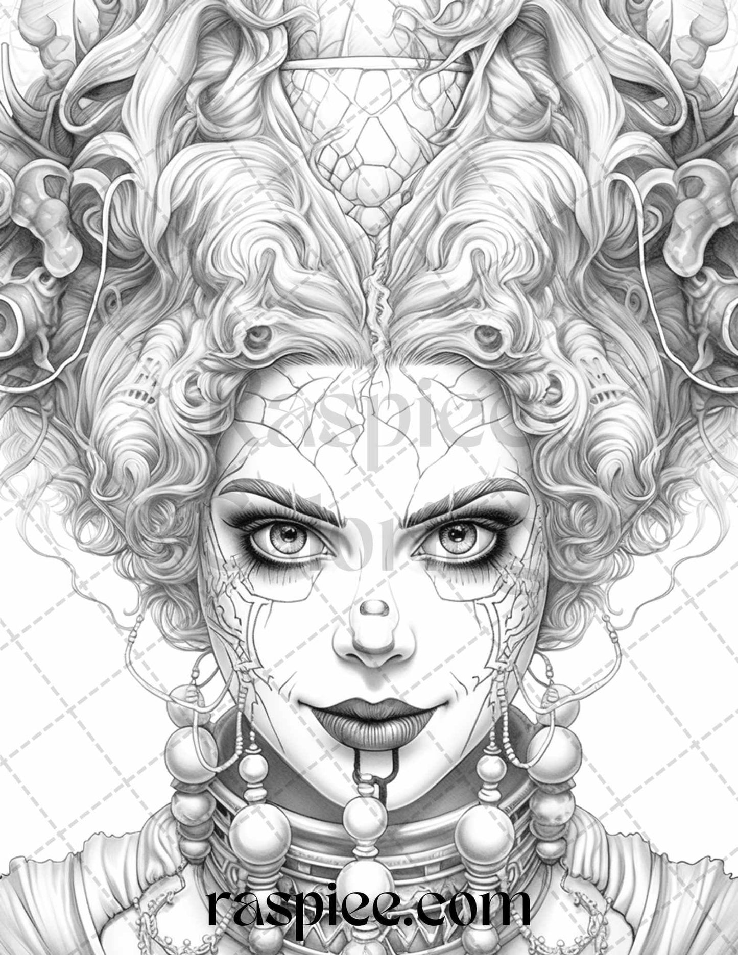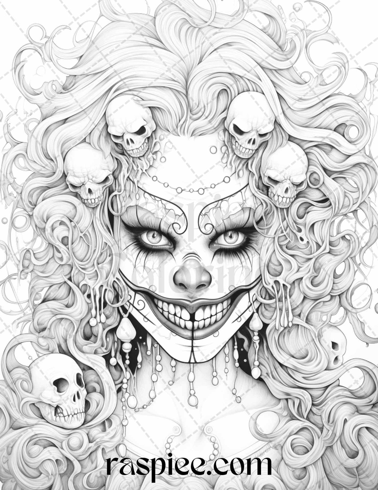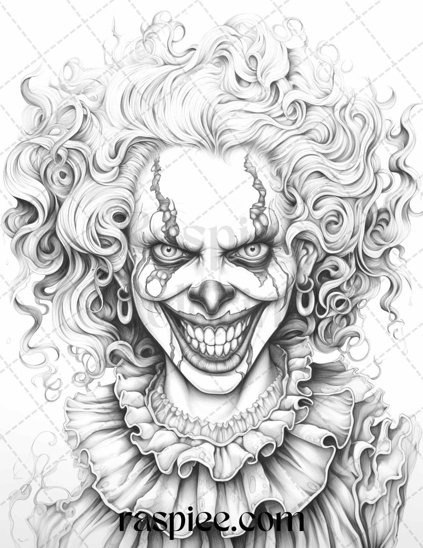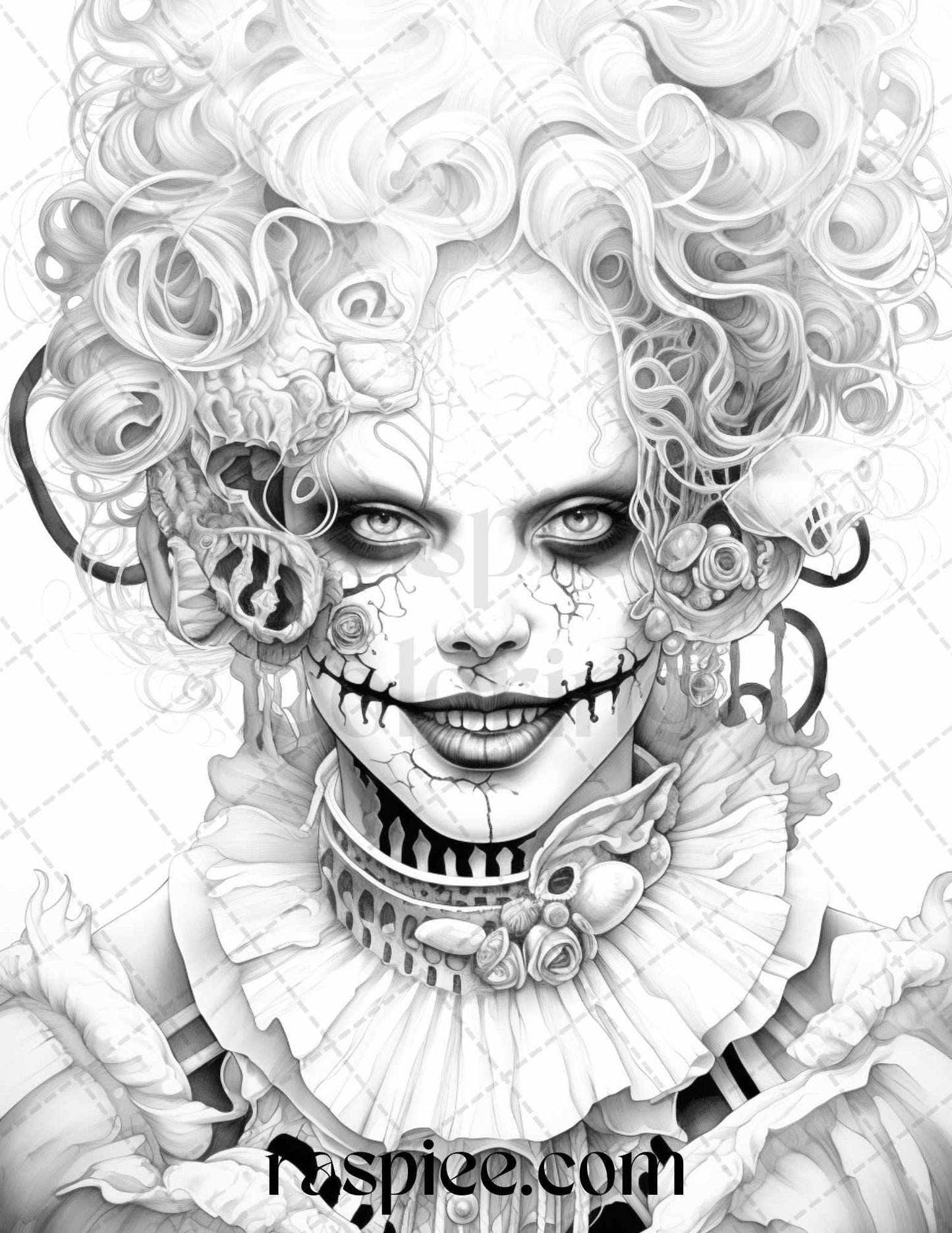 50 Scary Clown Girls Grayscale Coloring Pages Printable for Adults, PDF File Instant Download