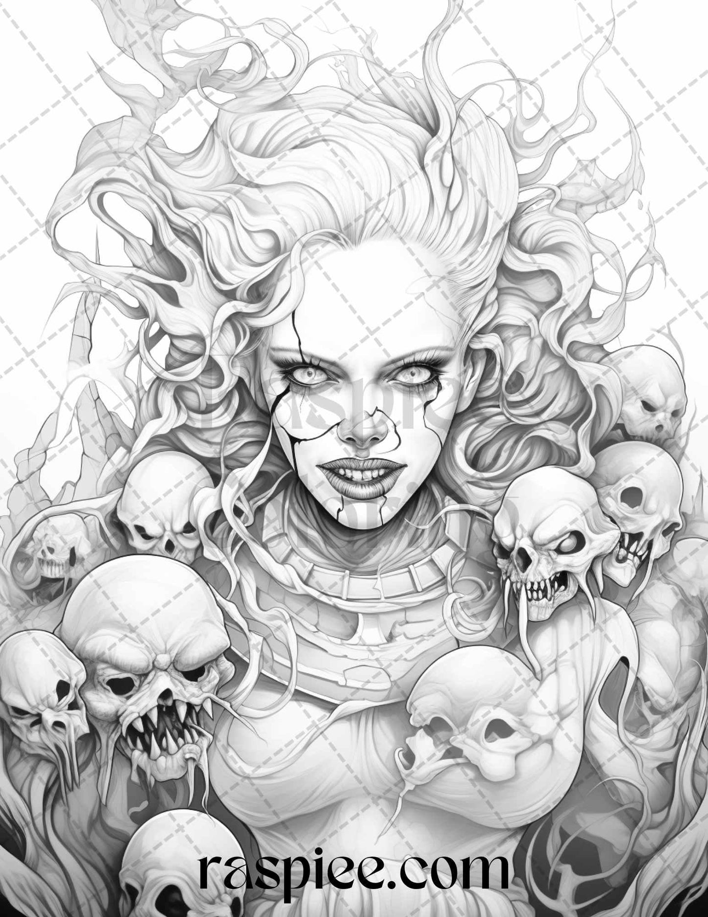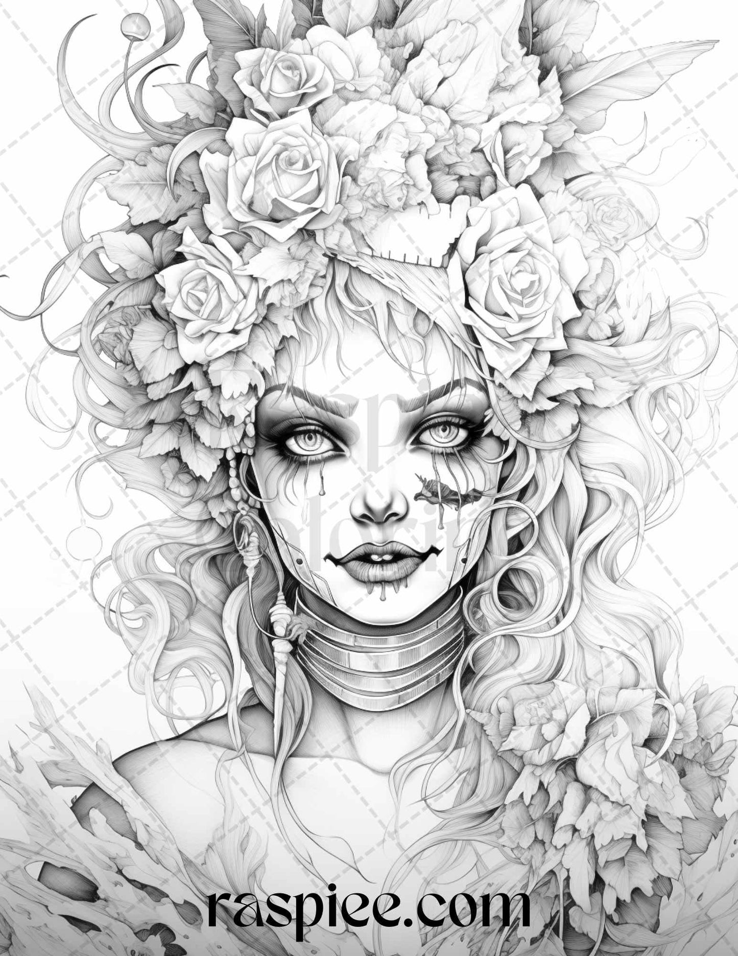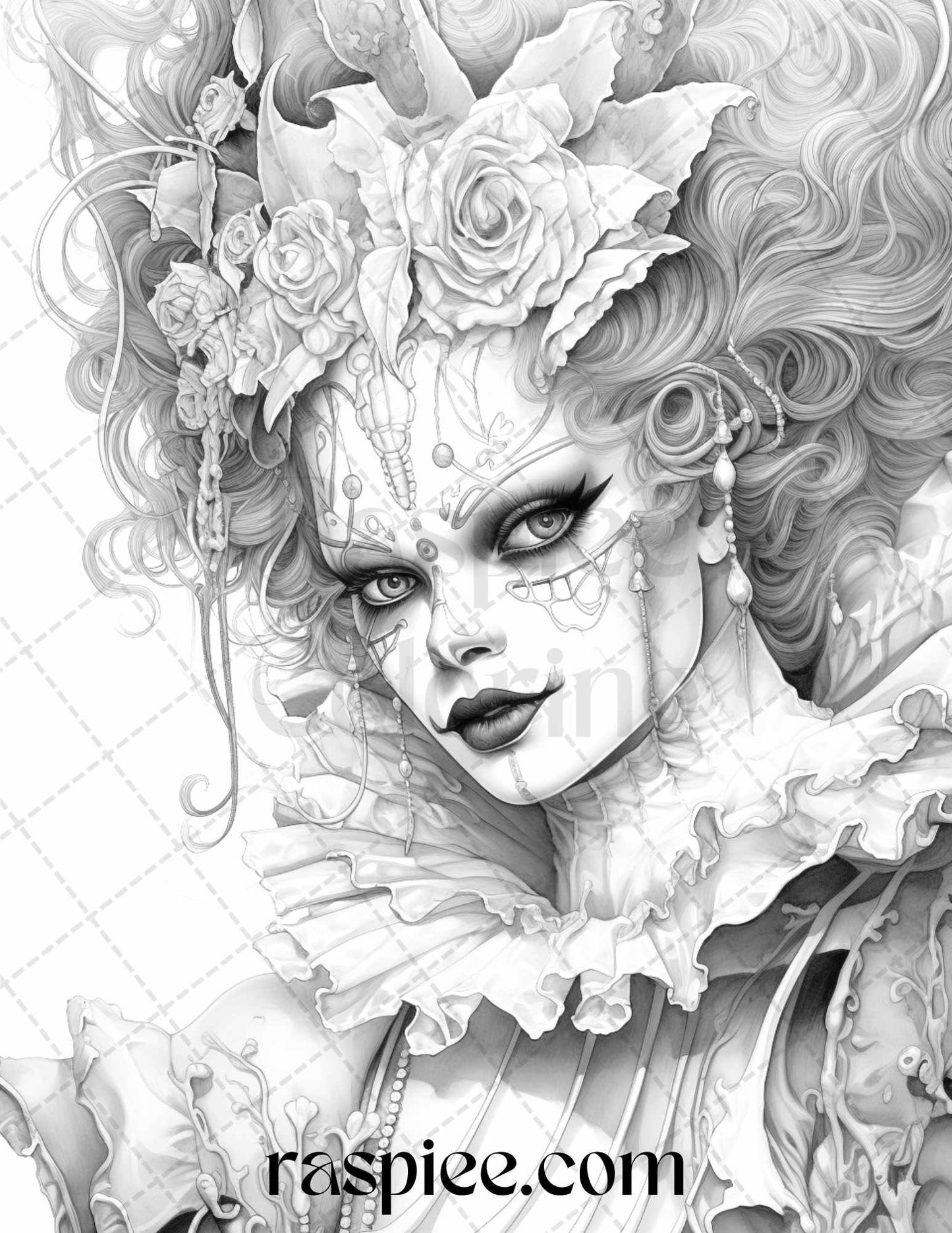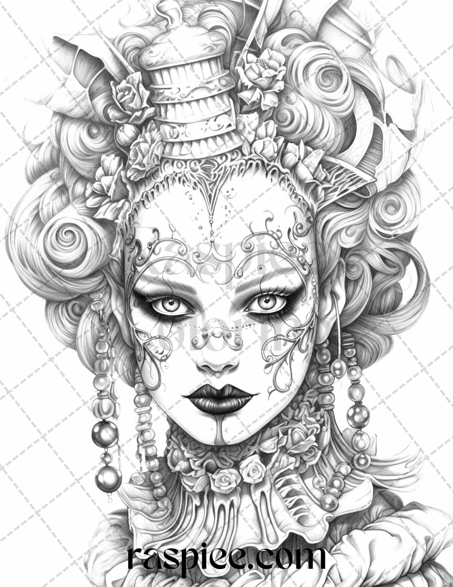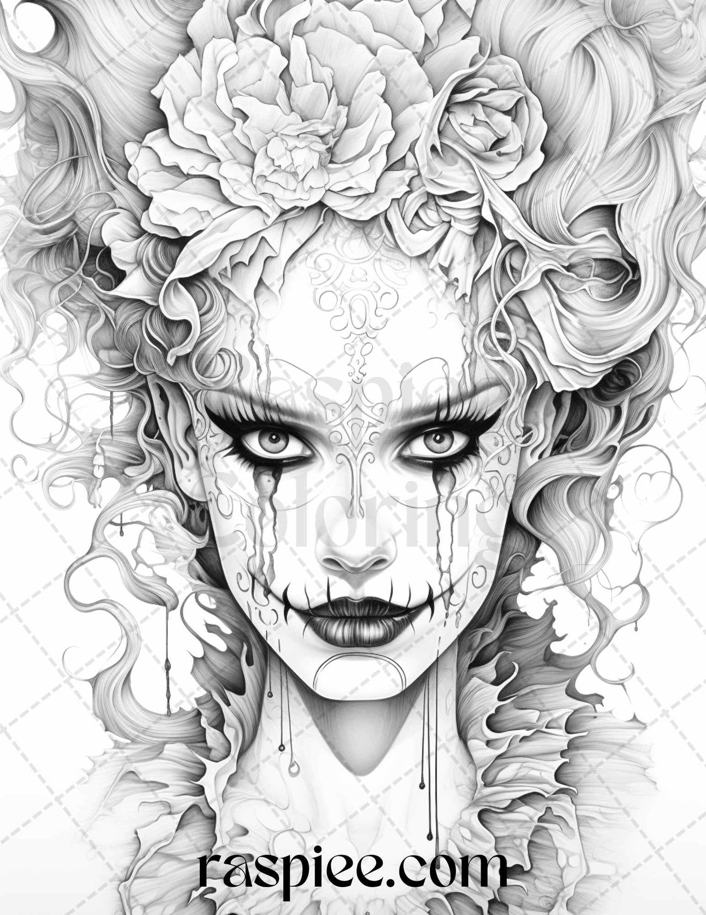 50 Scary Clown Girls Grayscale Coloring Pages Printable for Adults, PDF File Instant Download