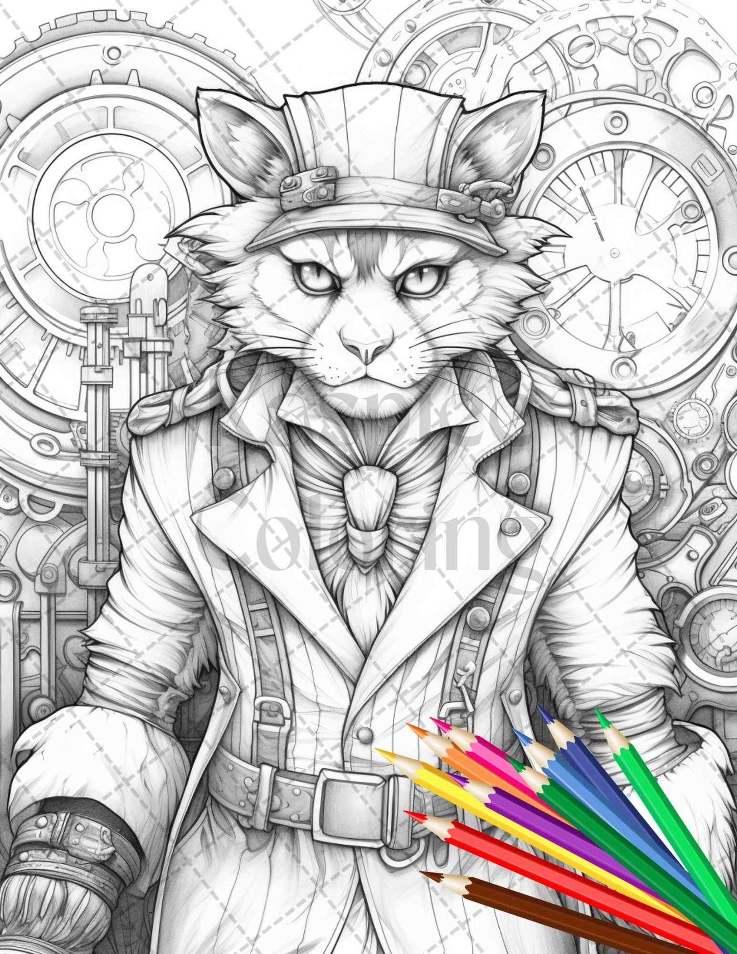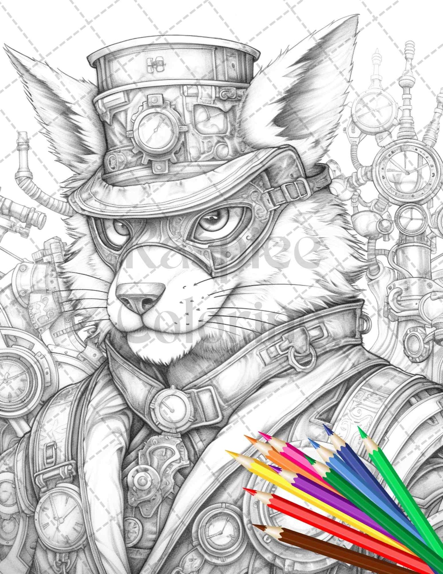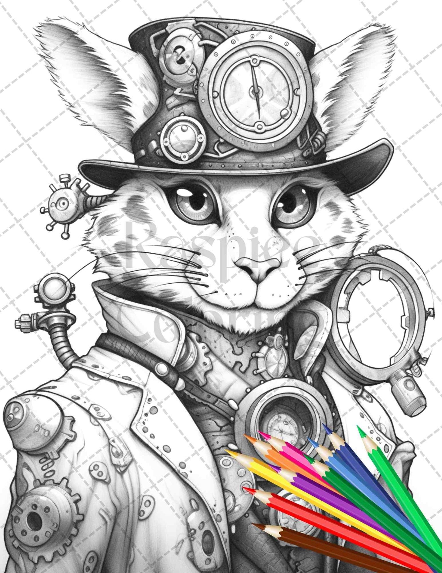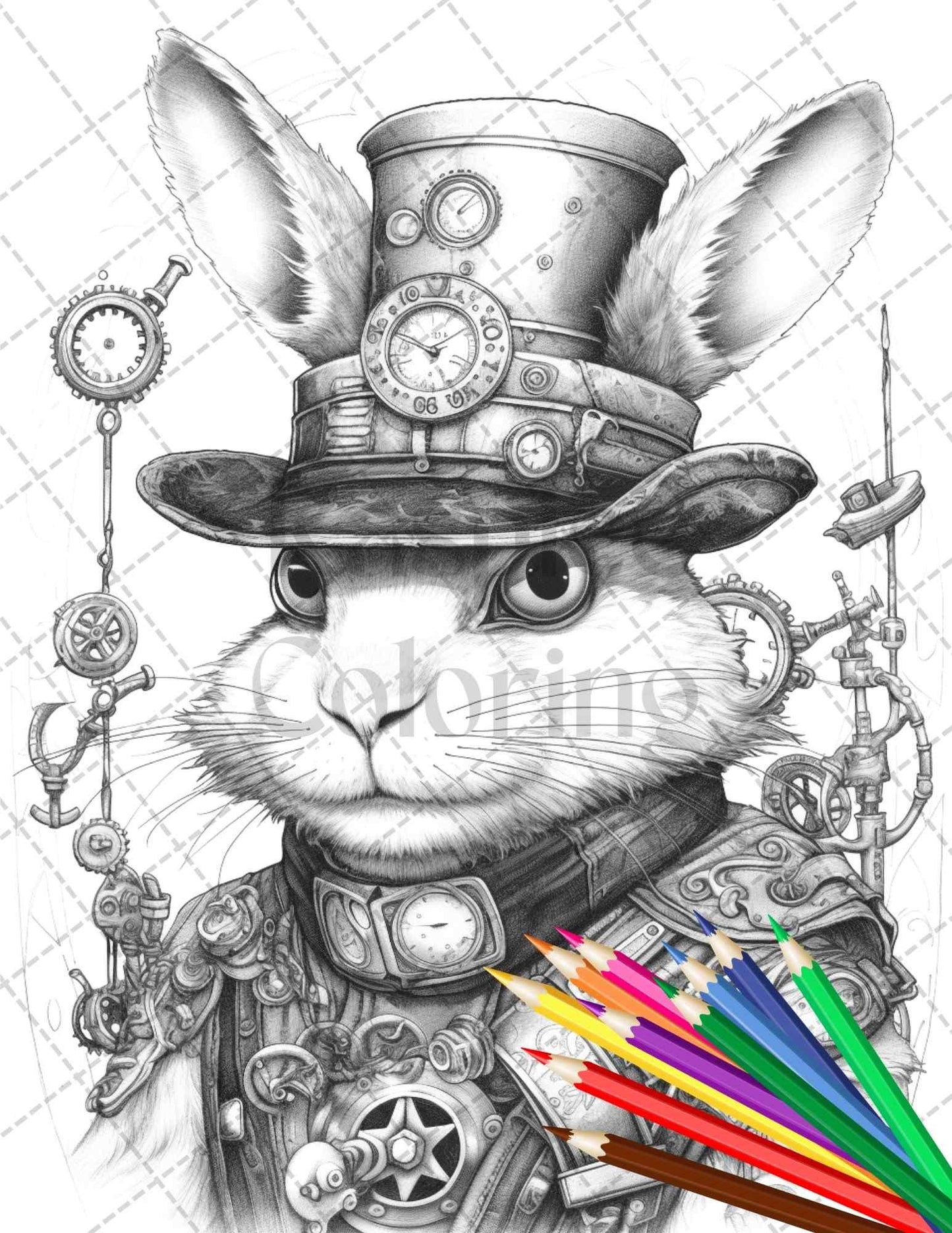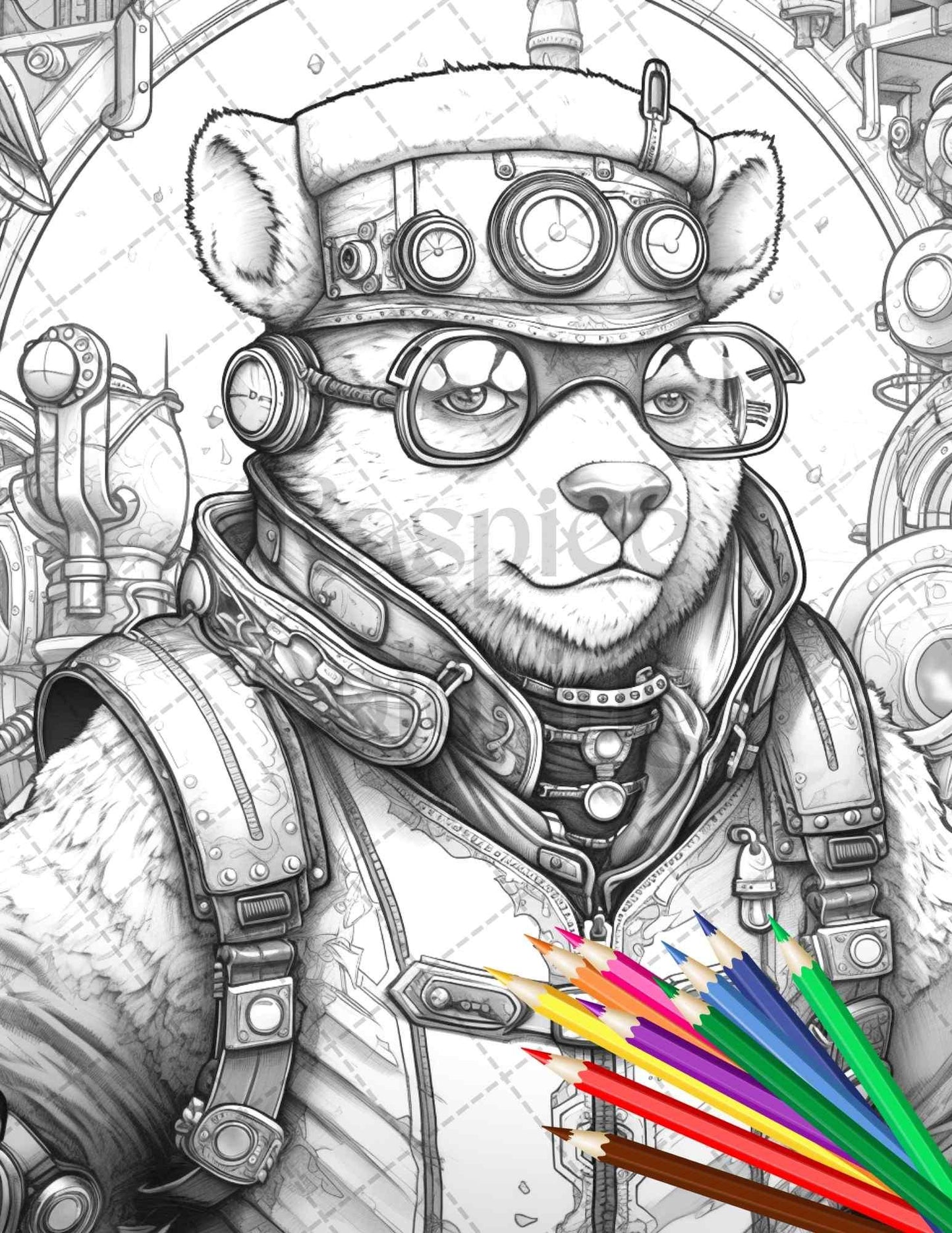 Each grayscale coloring page is carefully crafted to provide you with a delightful coloring experience. The intricate details and shading will allow you to explore your creativity, giving life to these fascinating steampunk animals. Whether you prefer using colored pencils, markers, or other coloring tools, these pages are perfect for bringing your artistic vision to life.