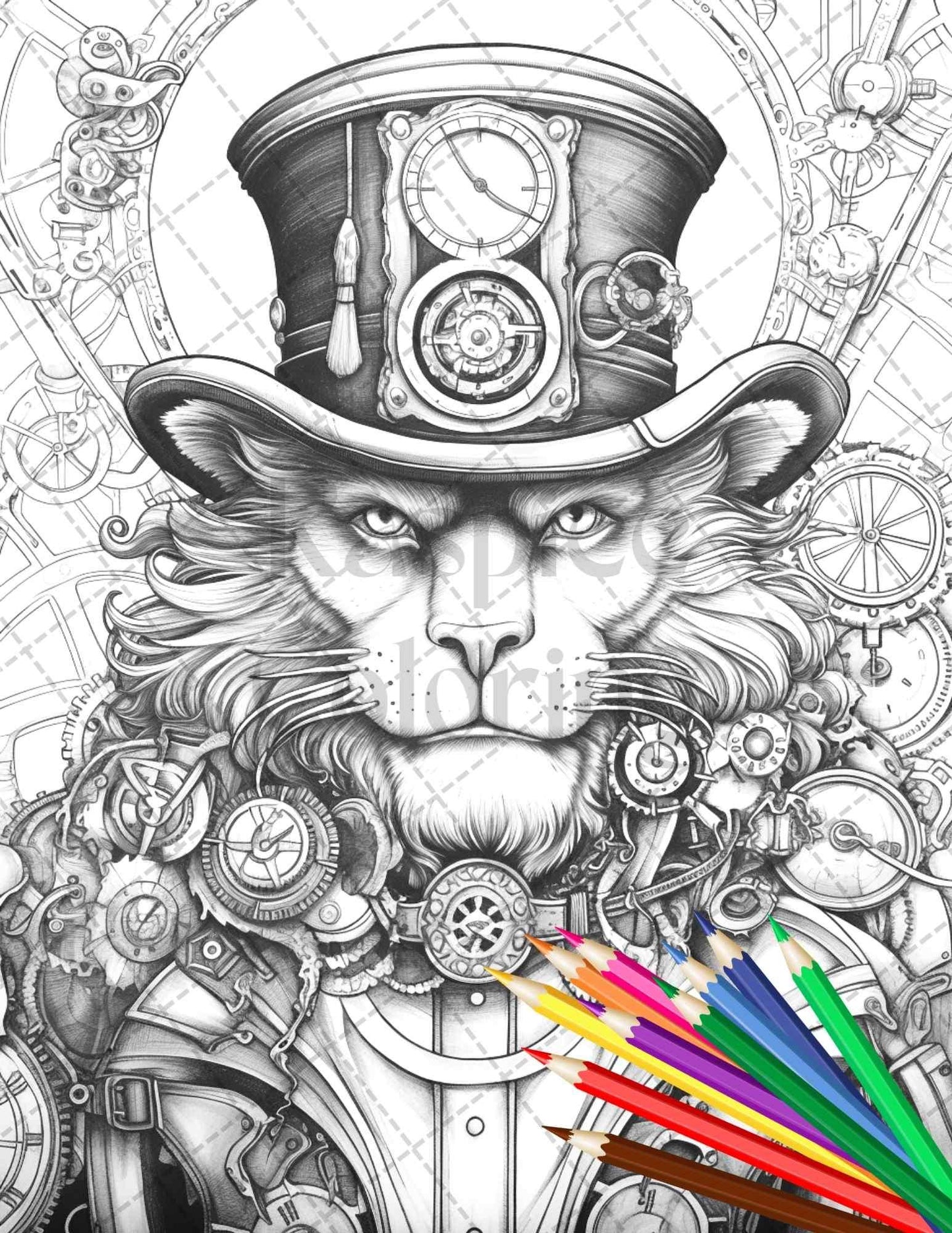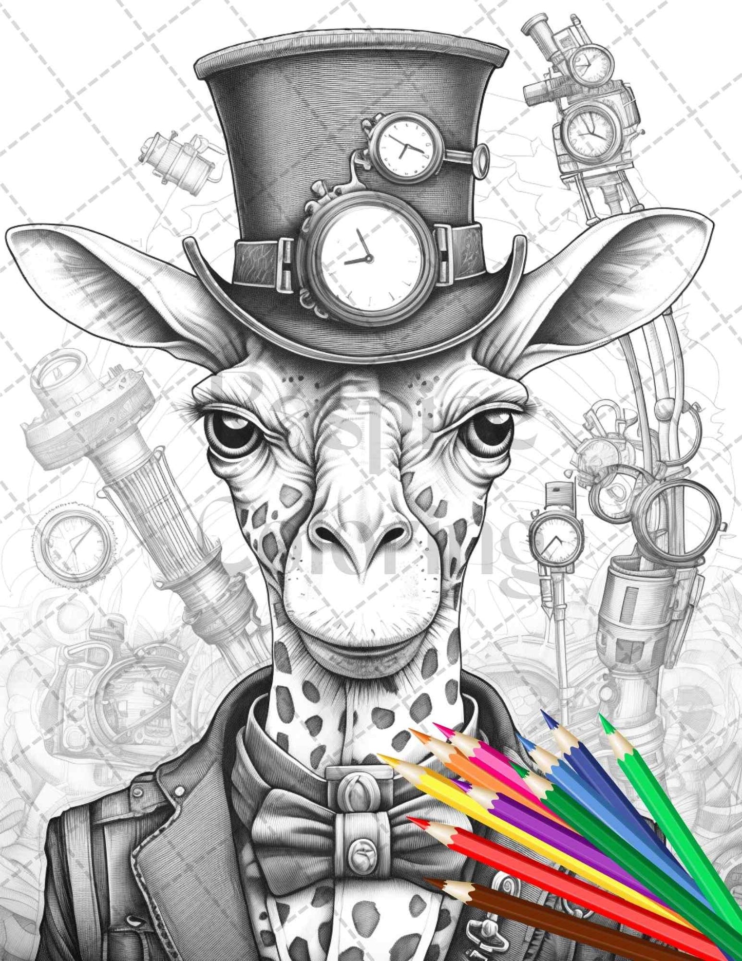 These grayscale coloring pages are not only a great way to relax and unwind but also make a wonderful gift for any coloring enthusiast or steampunk lover. The vintage-inspired steampunk animal designs add a touch of nostalgia and elegance to your coloring sessions.