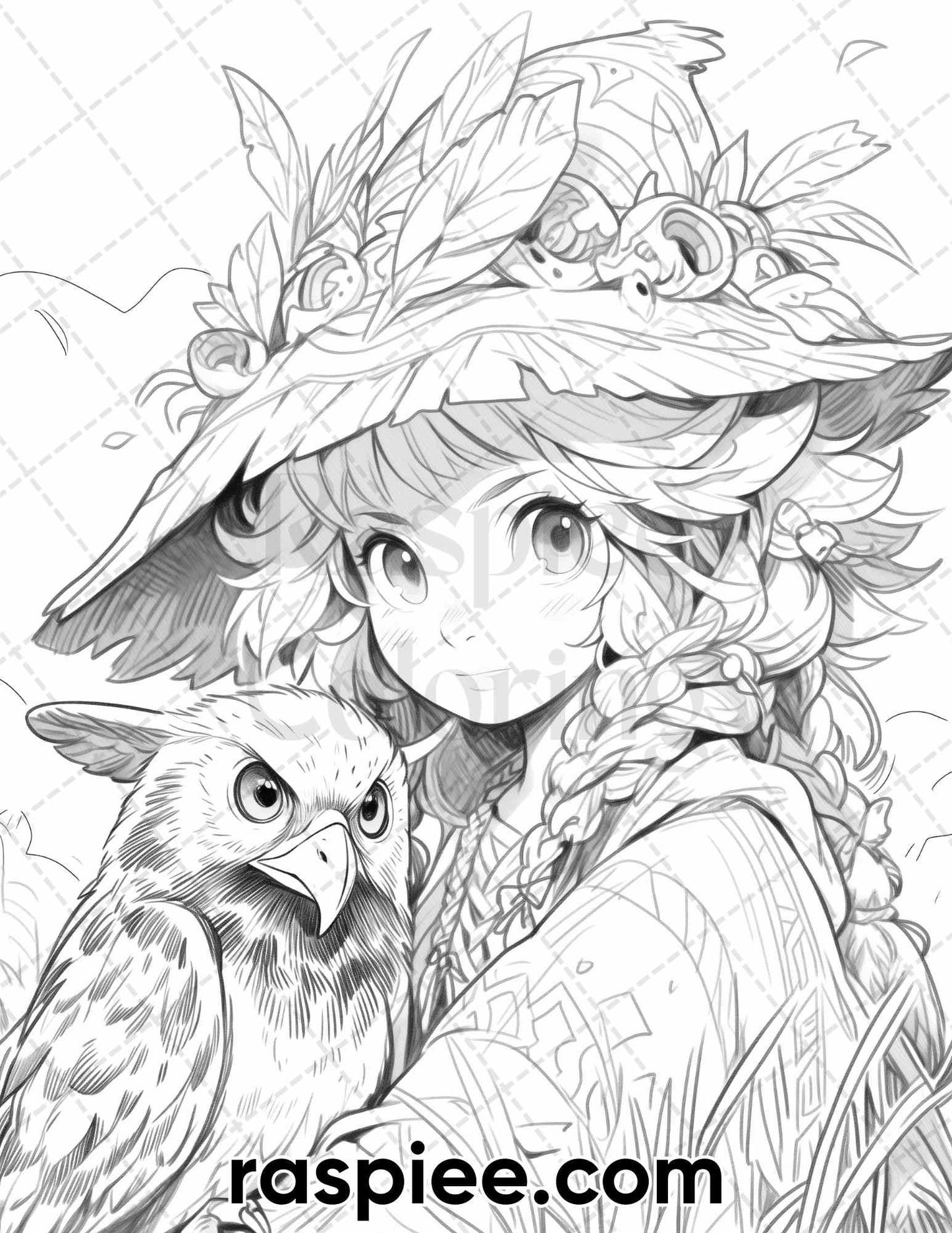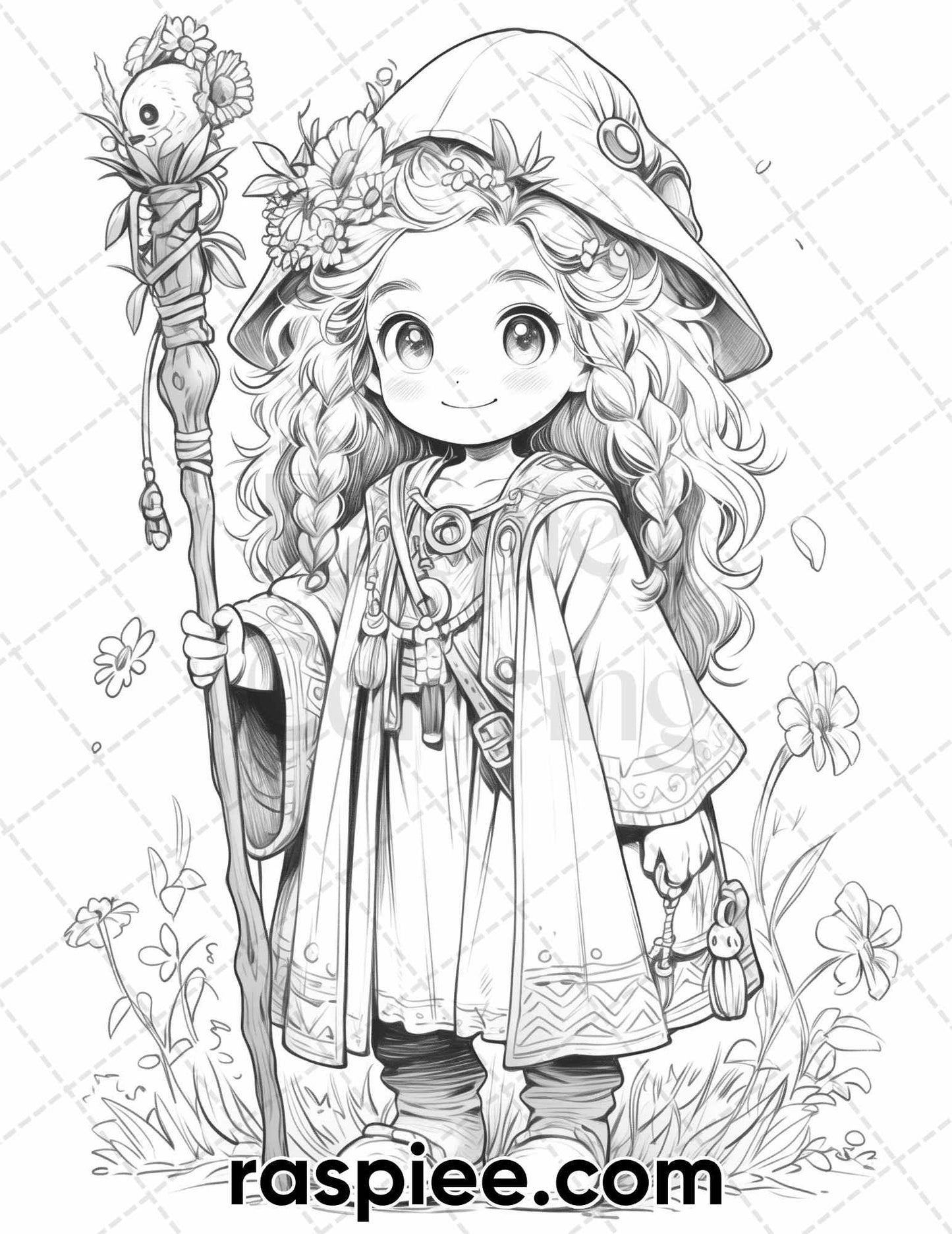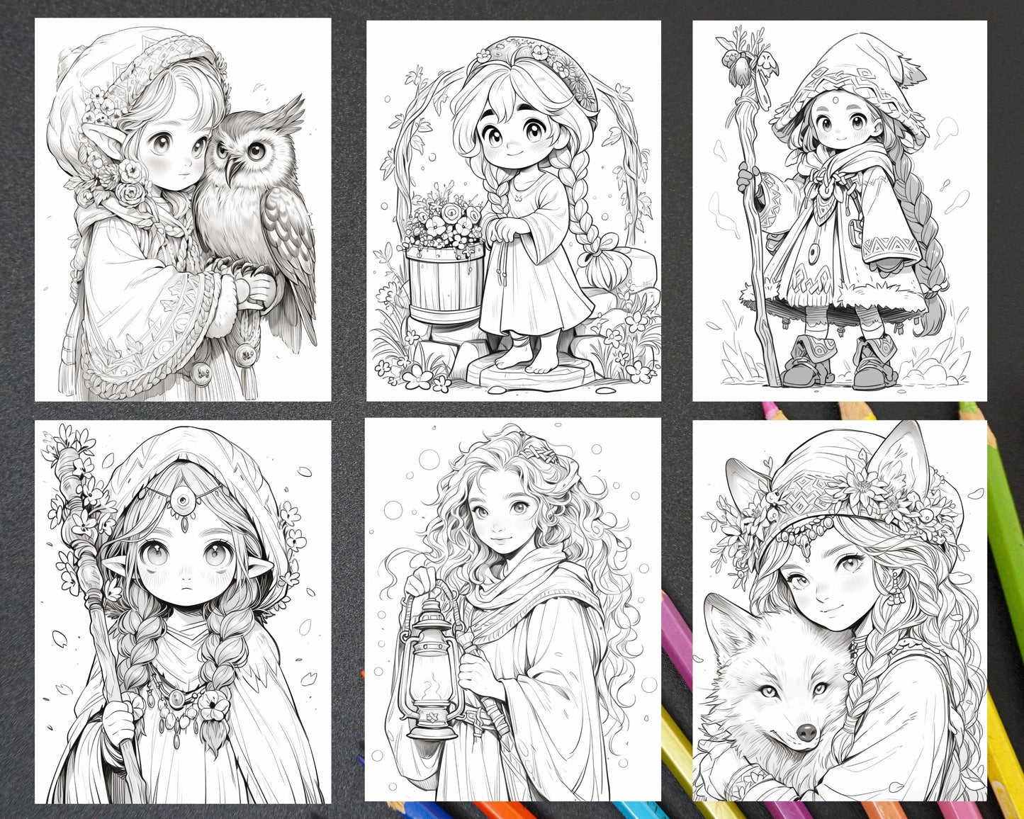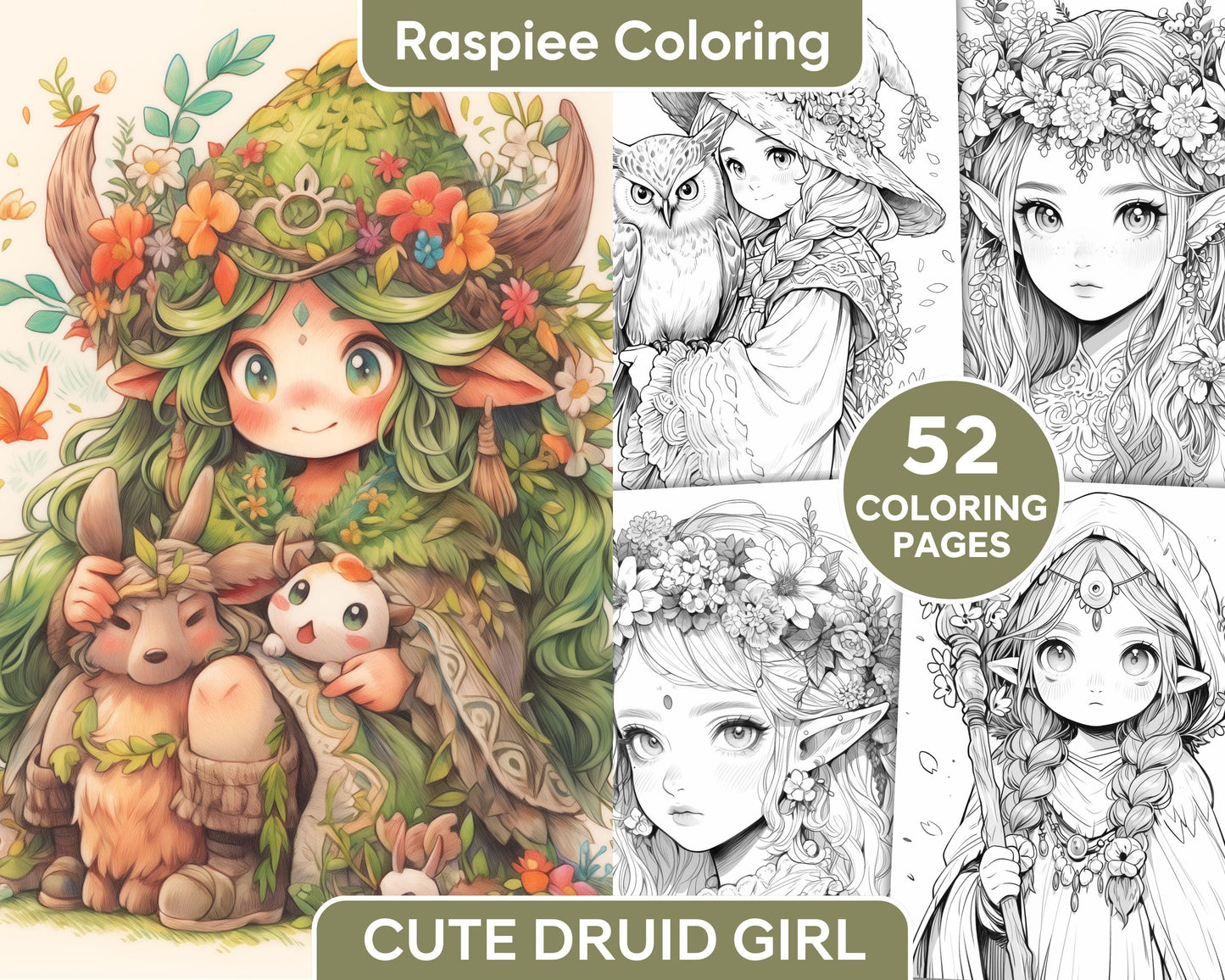 Welcome to our enchanting collection of 52 Cute Druid Girl Grayscale Coloring Pages, perfect for adults seeking a relaxing and creative escape into the world of fantasy art. These digital download coloring pages are designed to bring joy and tranquility to your coloring experience.