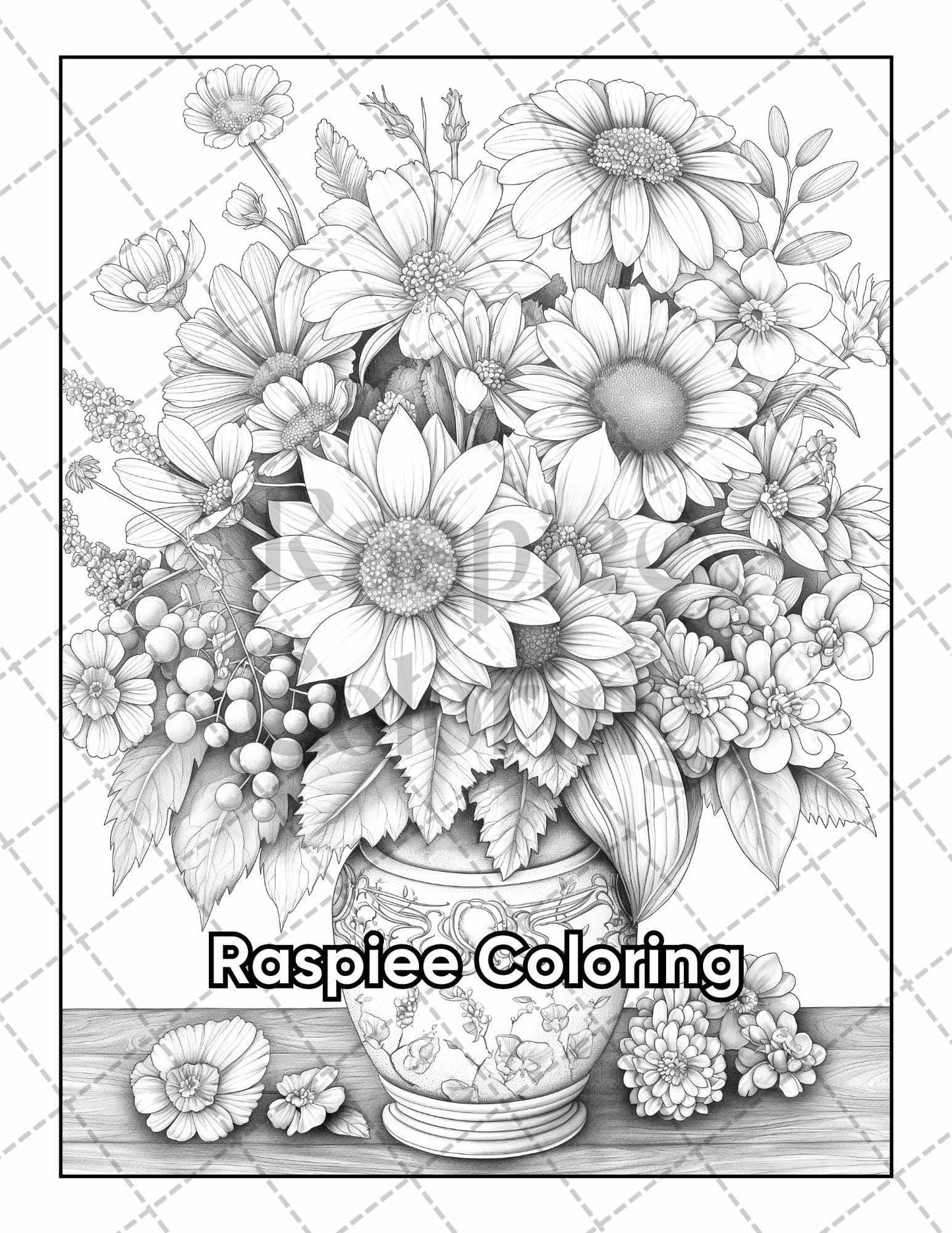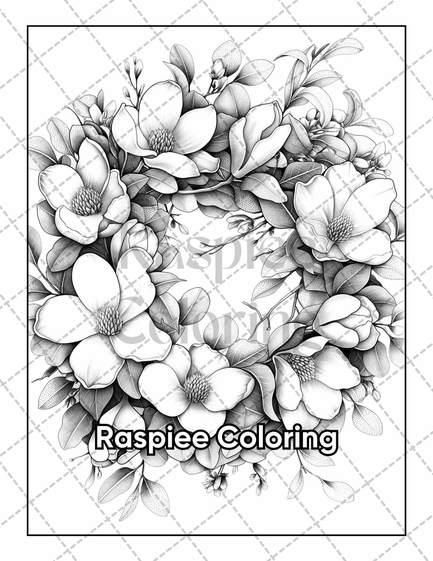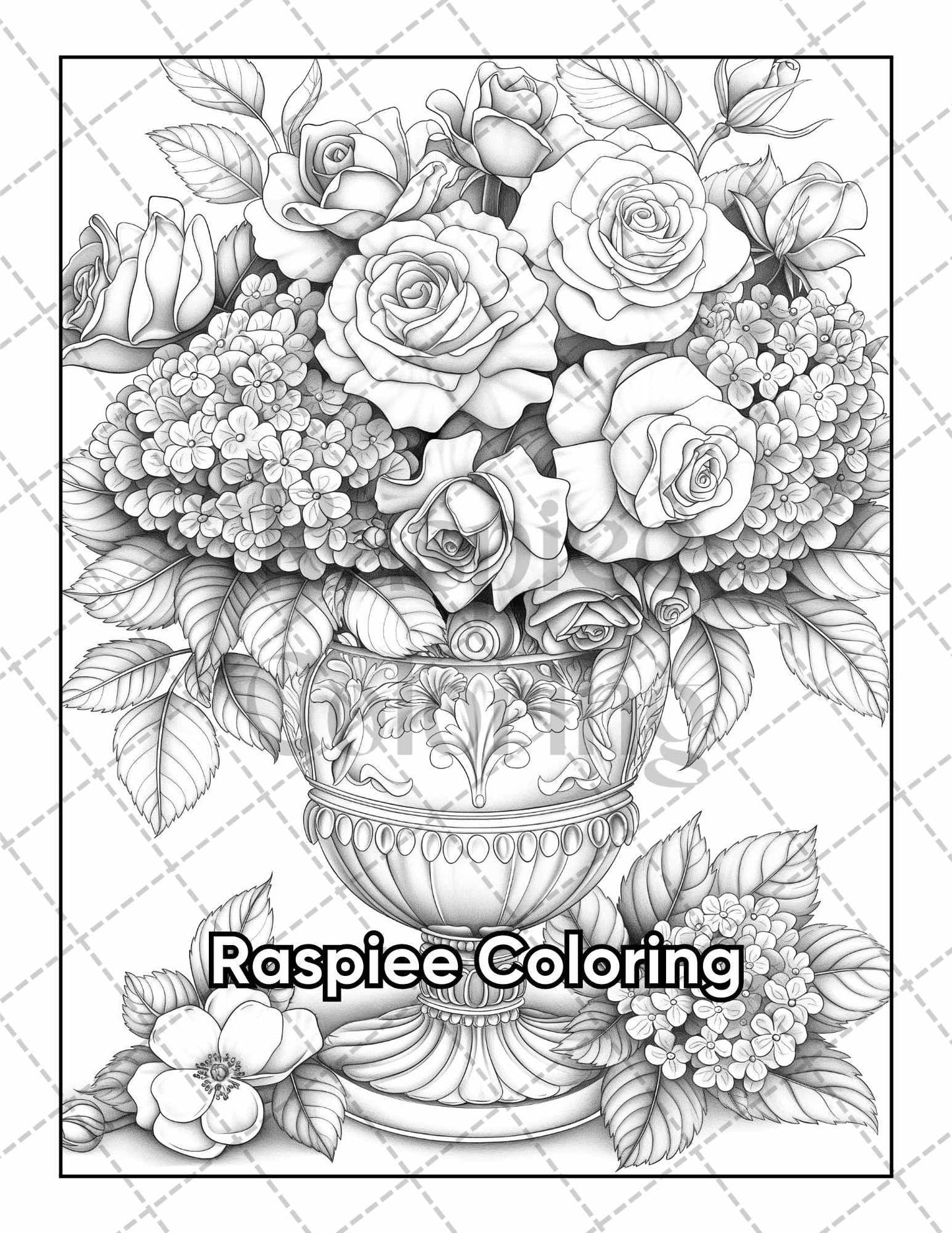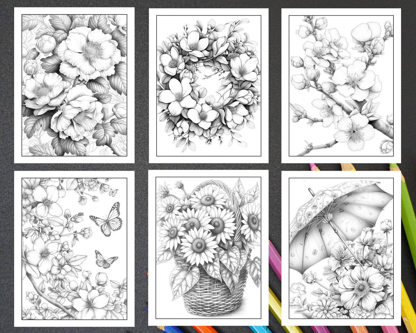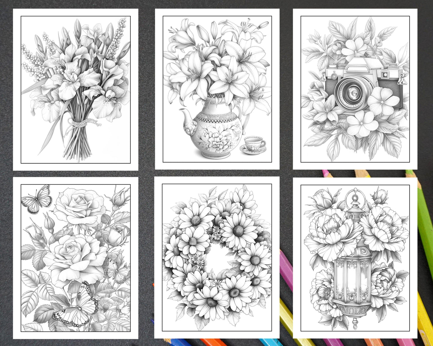 Explore a diverse array of stunning floral patterns, intricate decorations, elegant bouquets, charming wreaths, and more. Each page offers a unique design that caters to every coloring enthusiast's taste, providing a perfect escape for stress relief and relaxation.