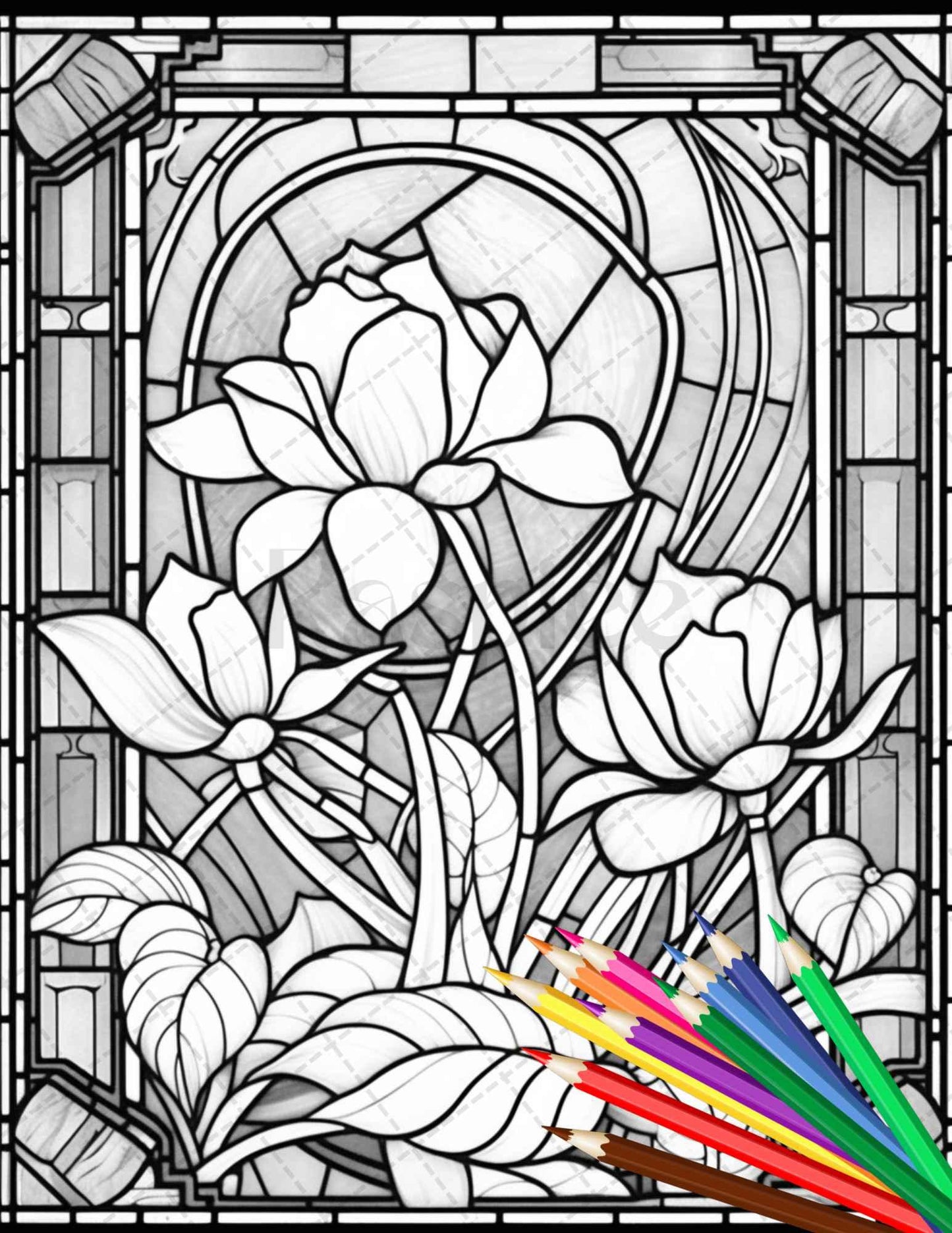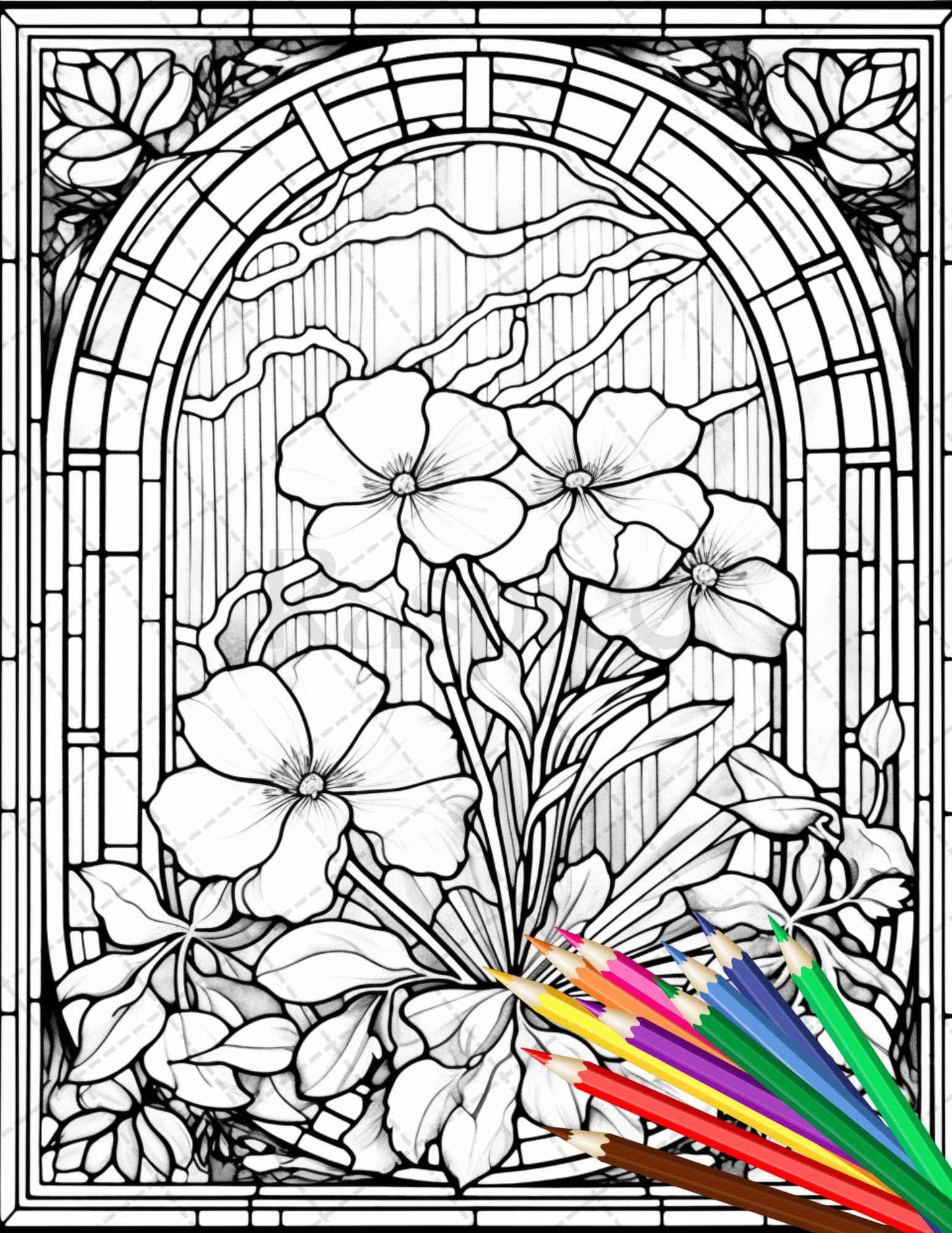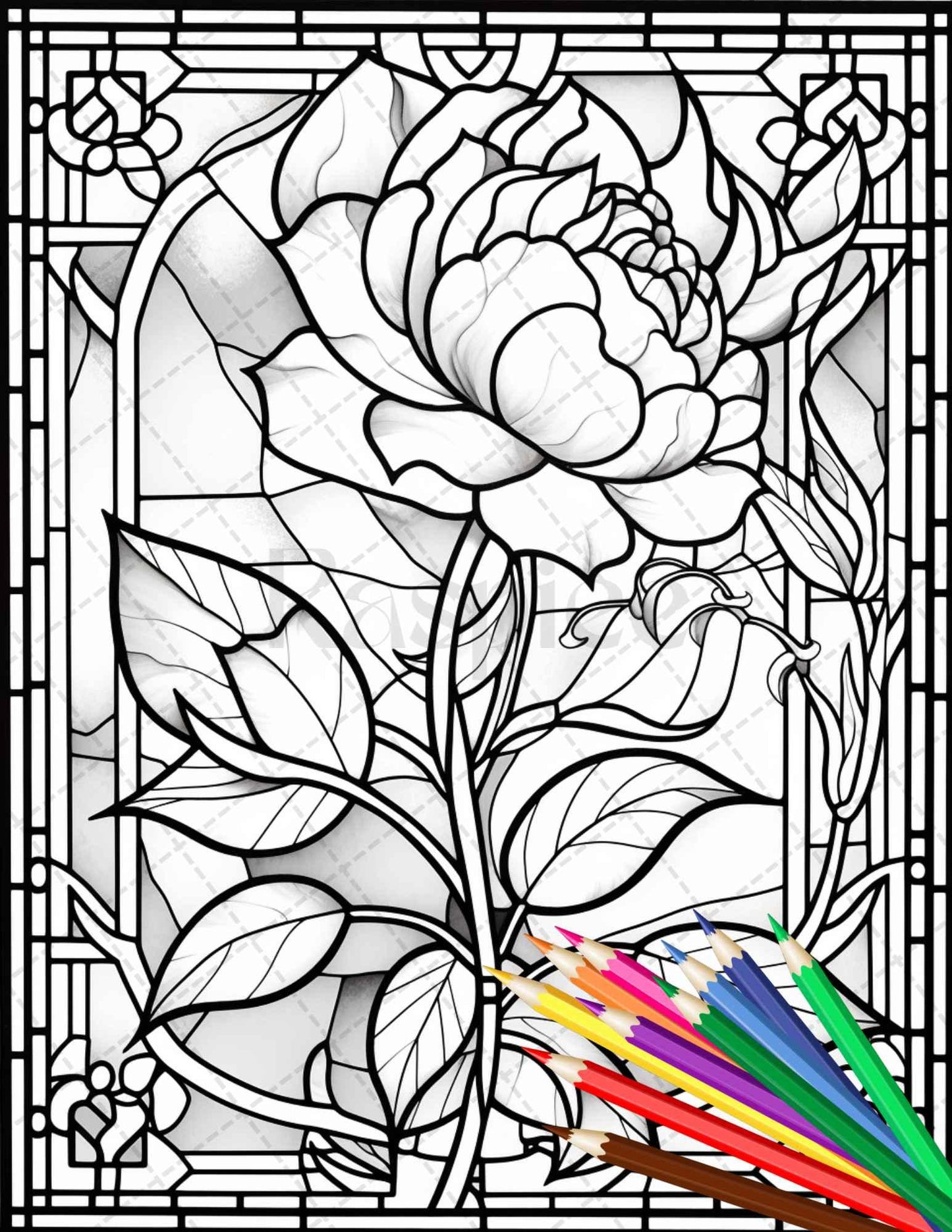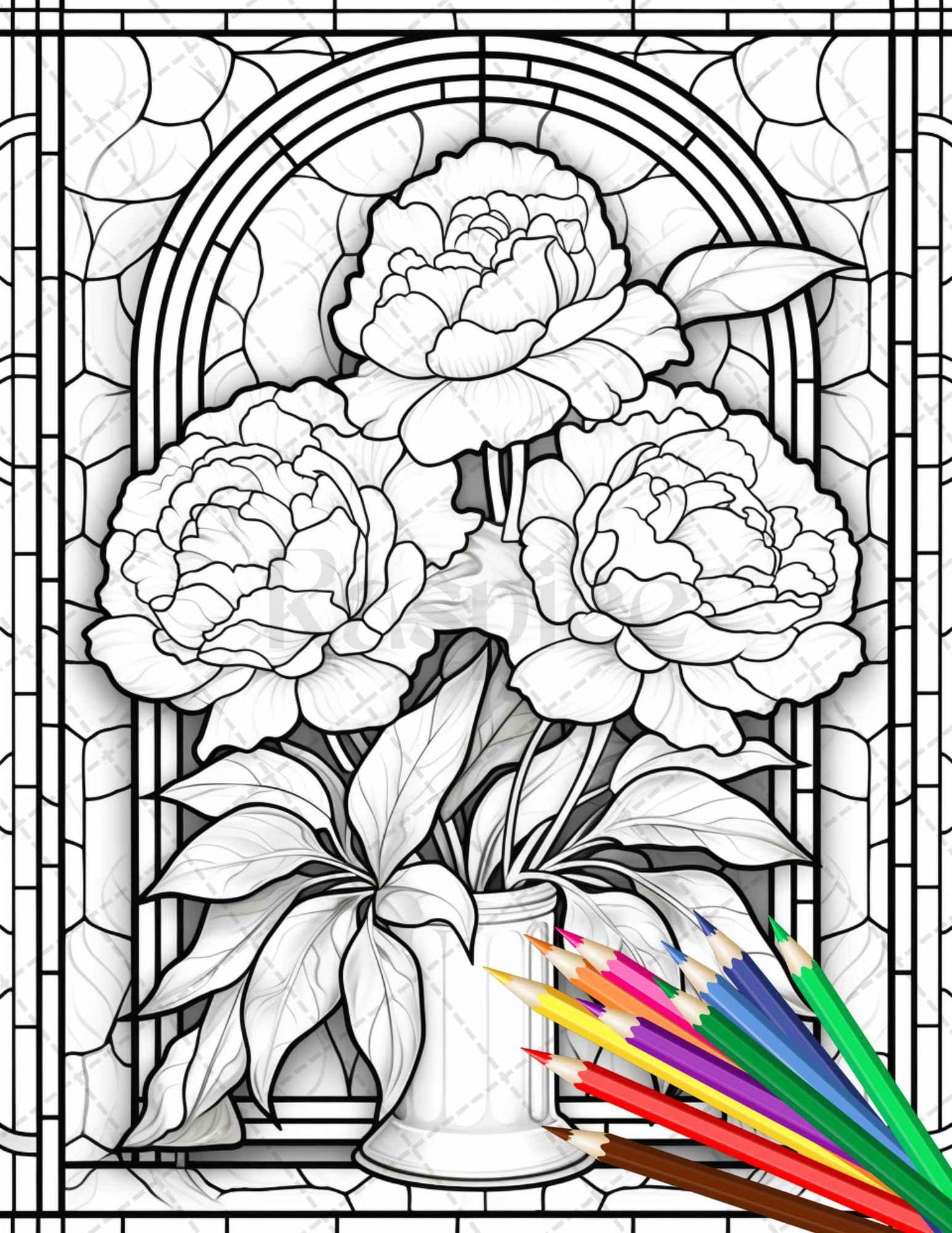 Welcome to our collection of 30 exquisite stained glass flowers grayscale coloring pages designed specifically for adults. These printable coloring sheets offer a unique and soothing artistic experience, perfect for relaxation and stress relief.