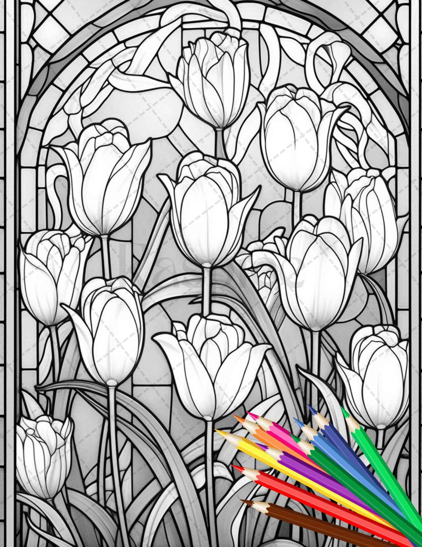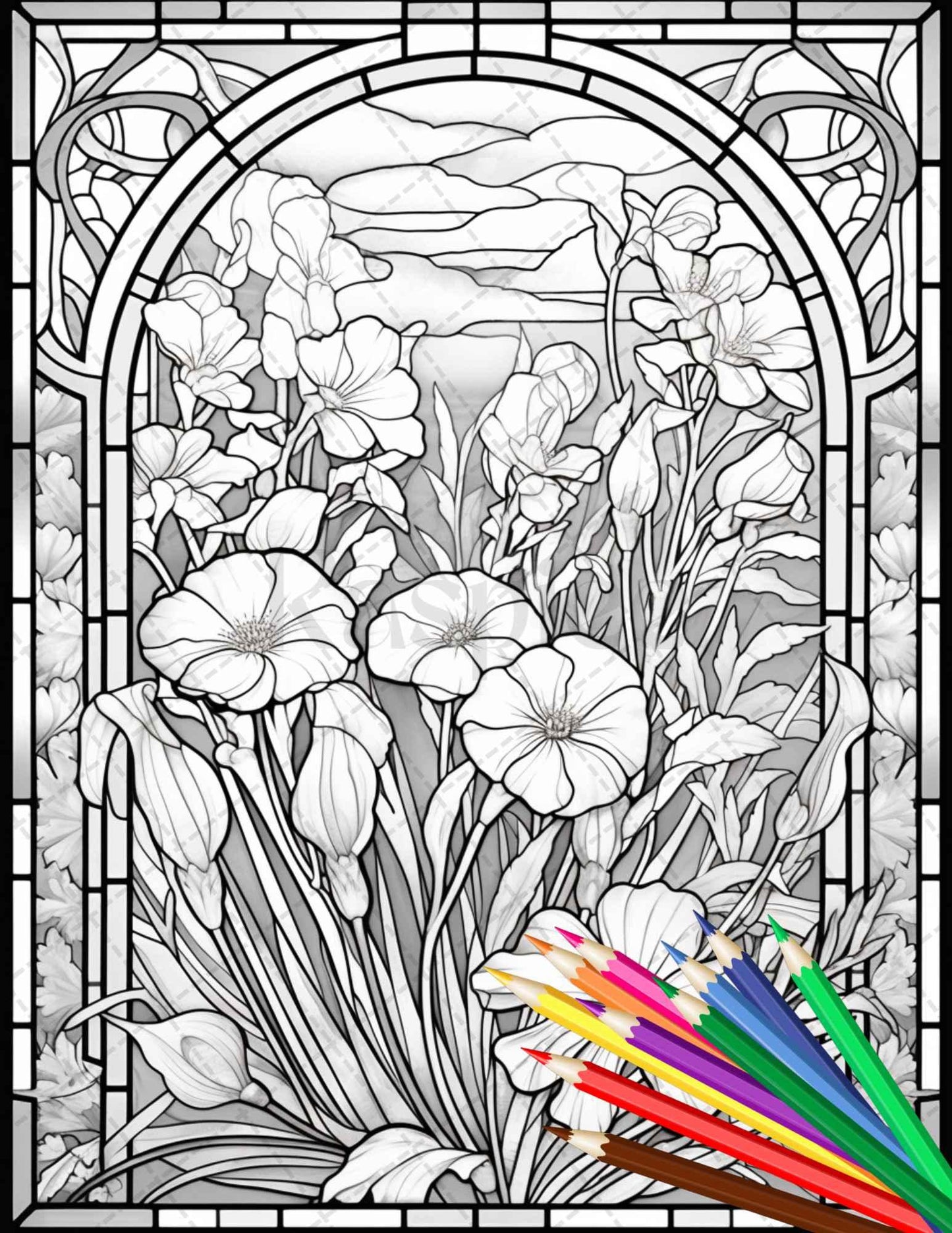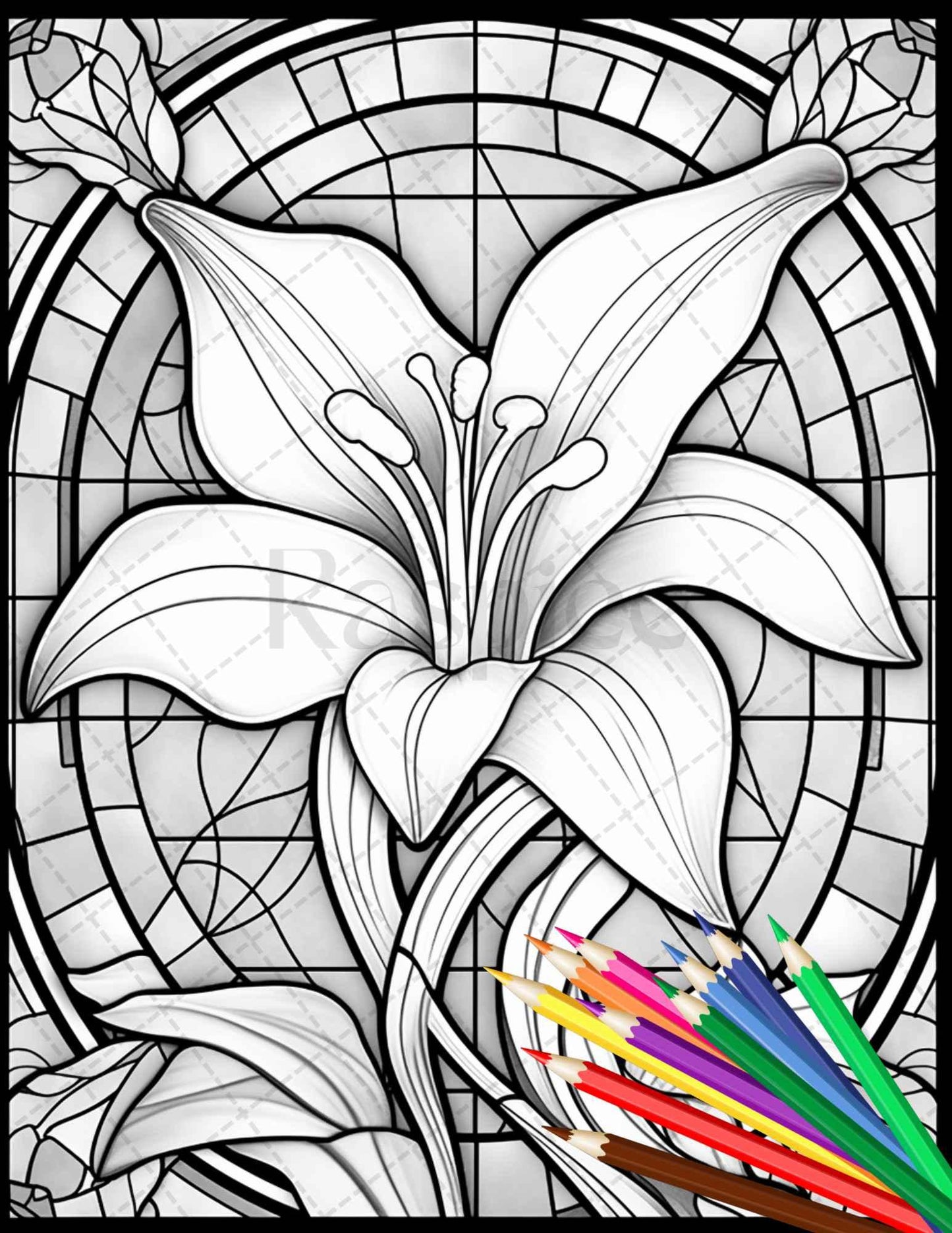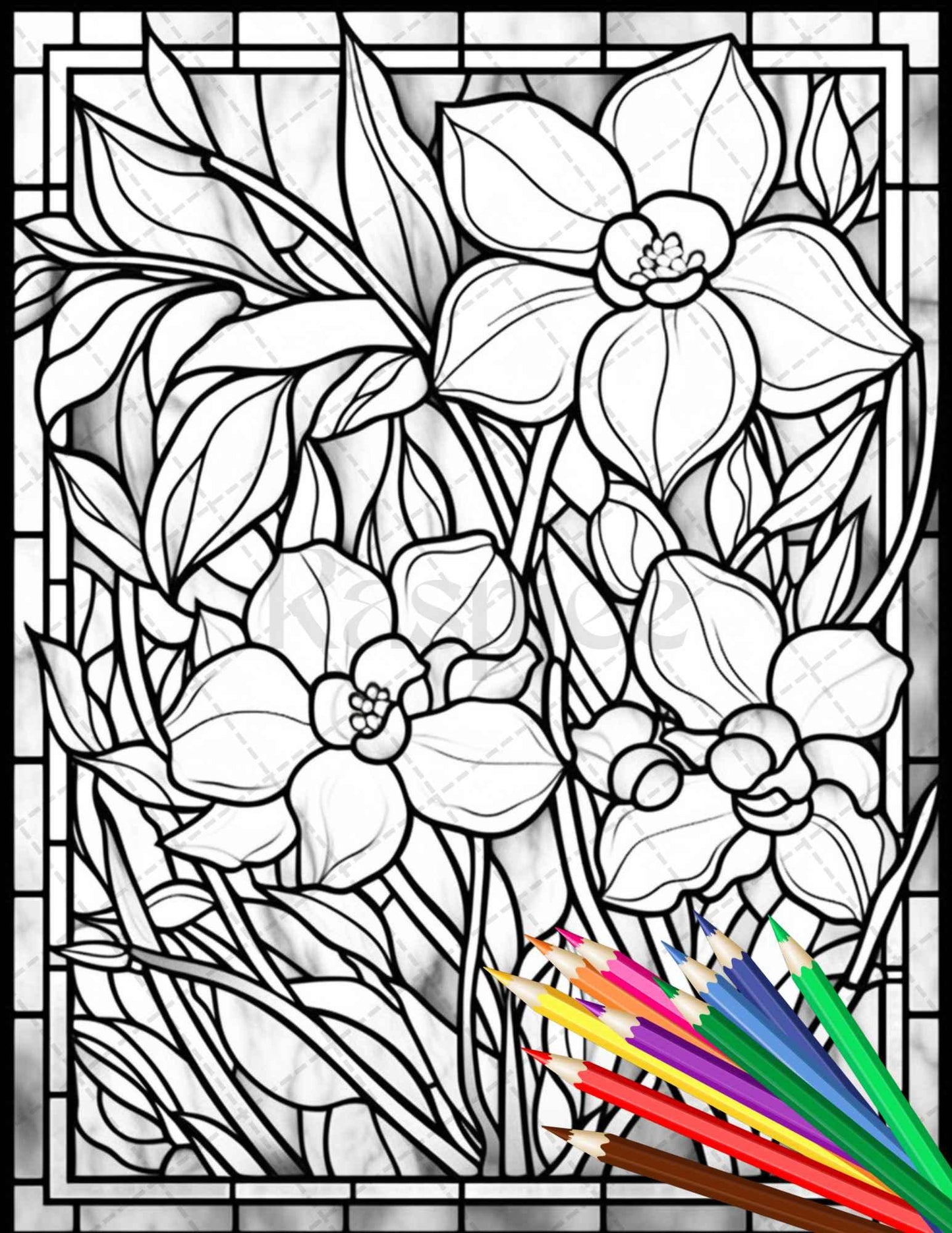 Welcome to our collection of 30 exquisite stained glass flowers grayscale coloring pages designed specifically for adults. These printable coloring sheets offer a unique and soothing artistic experience, perfect for relaxation and stress relief.