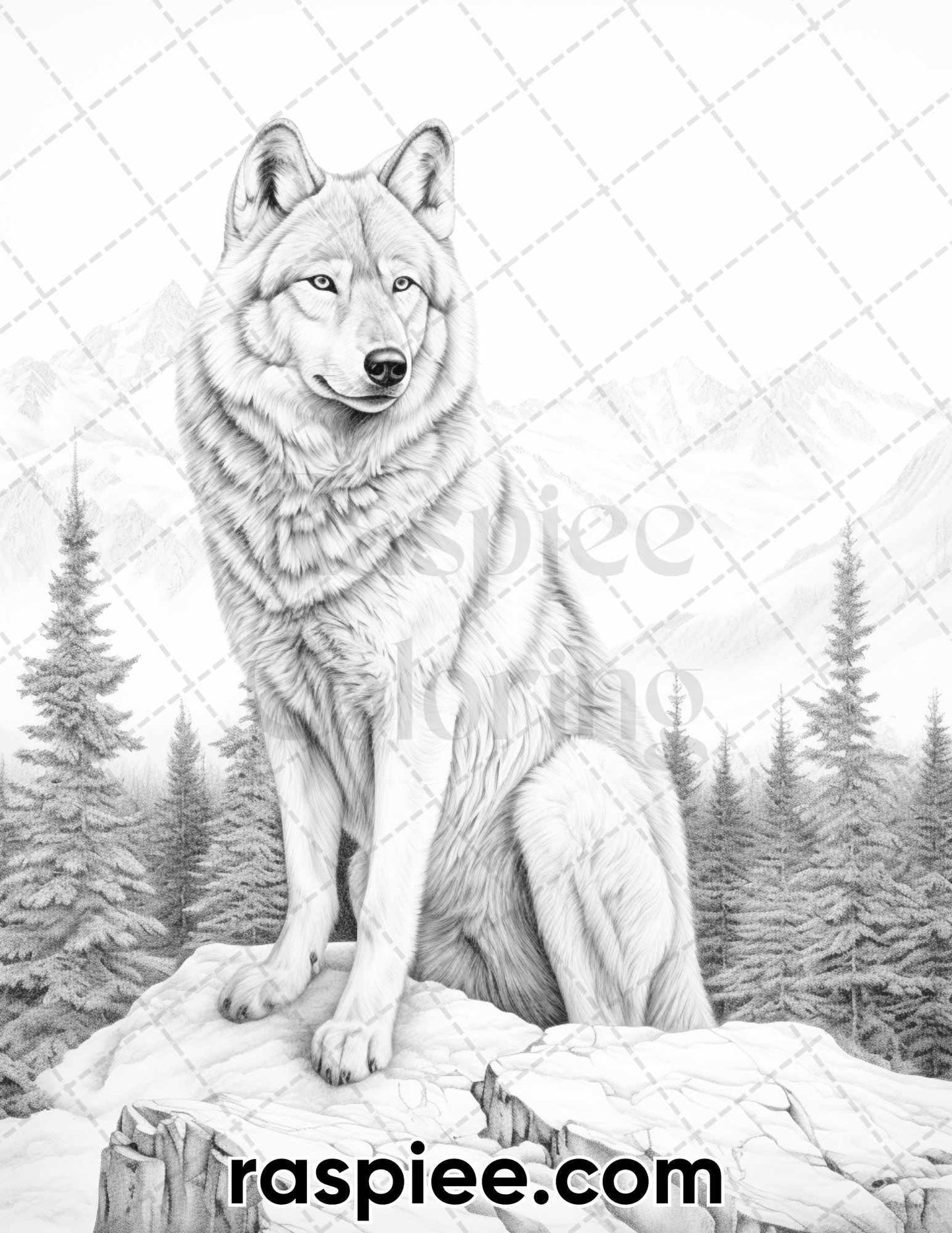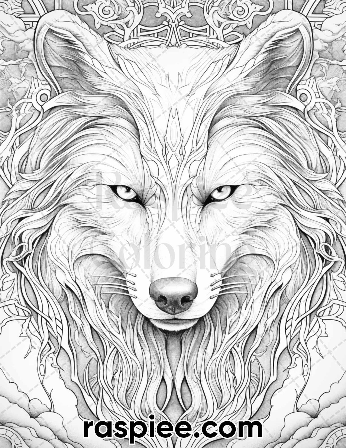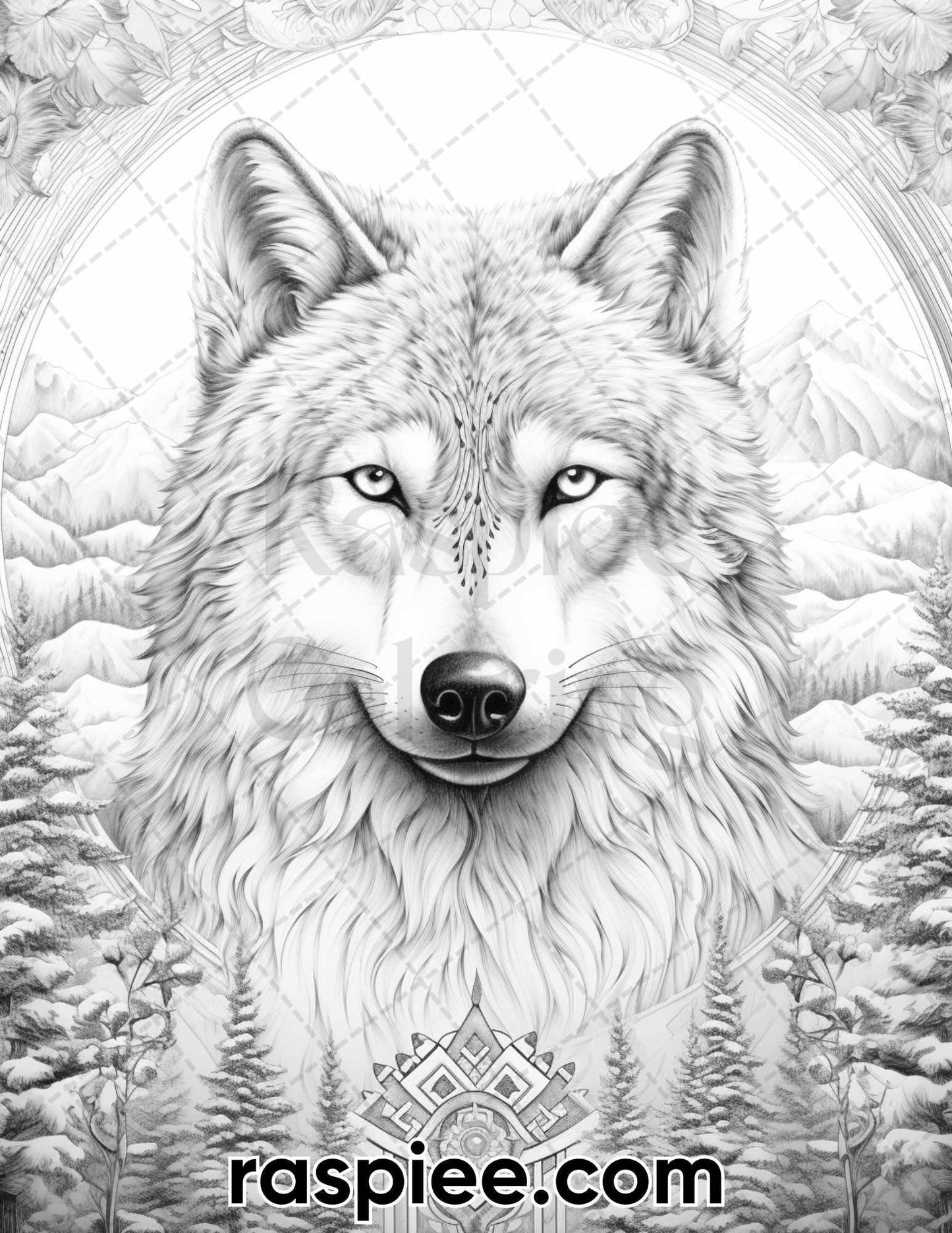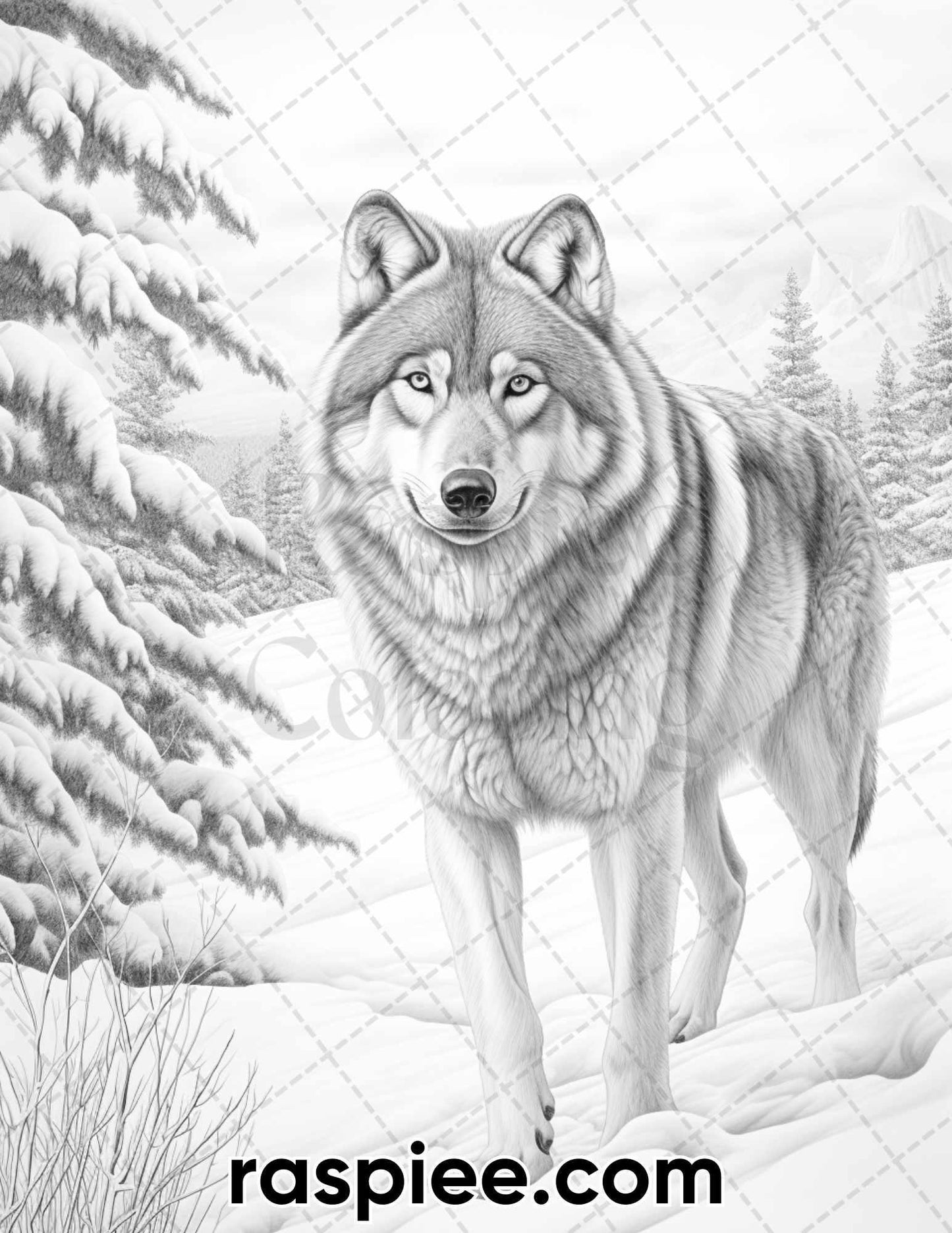 50 Winter Wolf Grayscale Coloring Pages for Adults, Printable PDF Instant Download