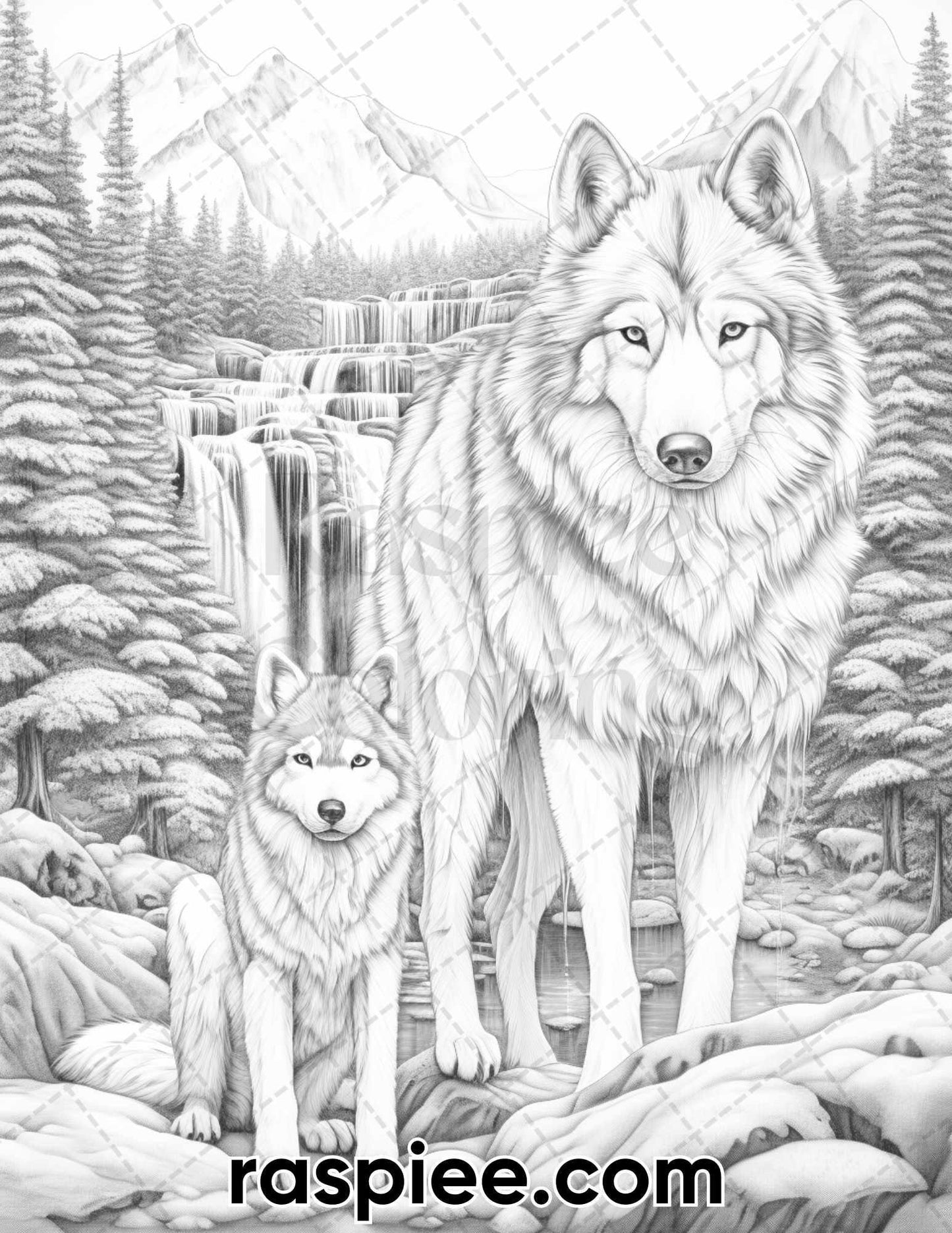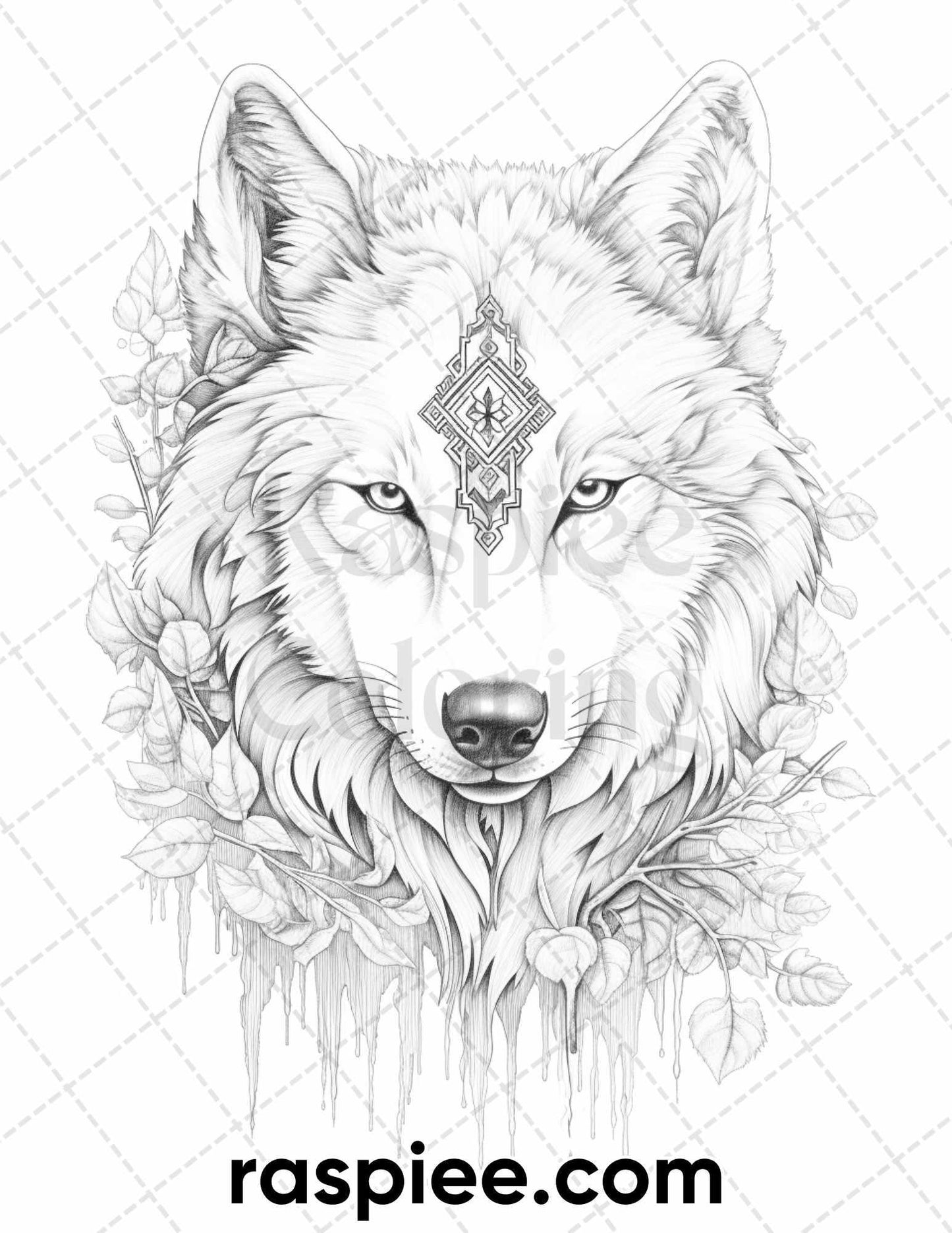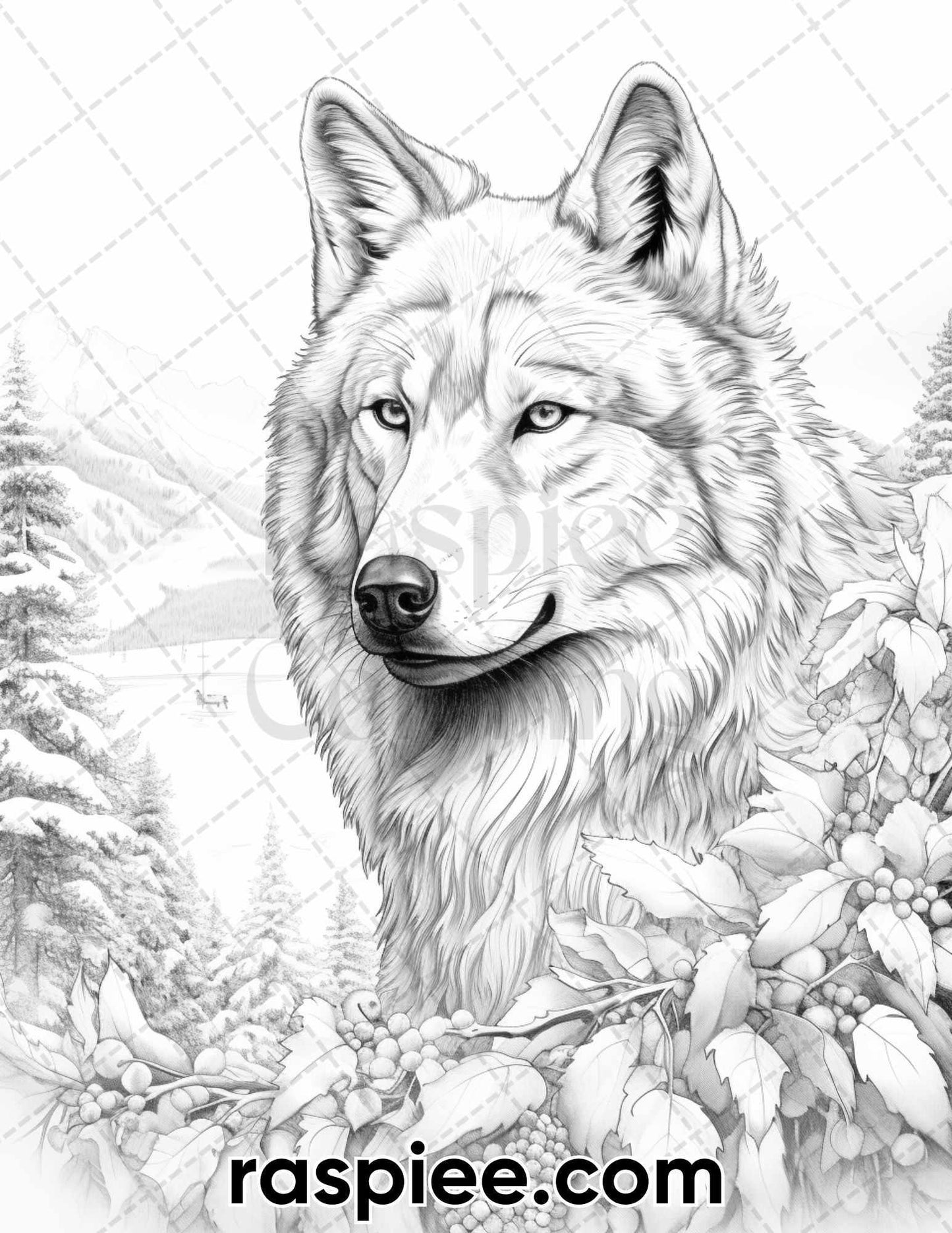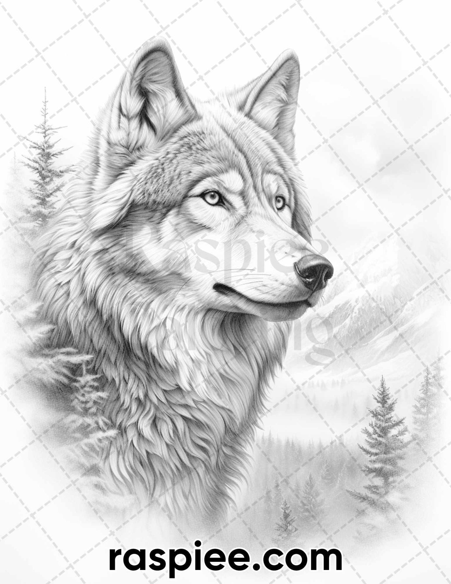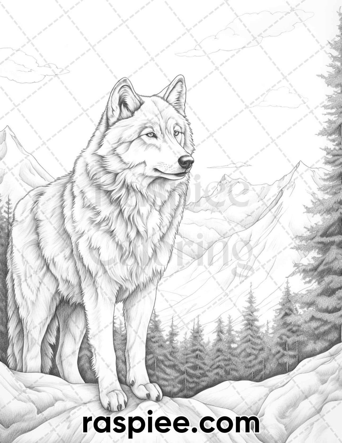 50 Winter Wolf Grayscale Coloring Pages for Adults, Printable PDF Instant Download