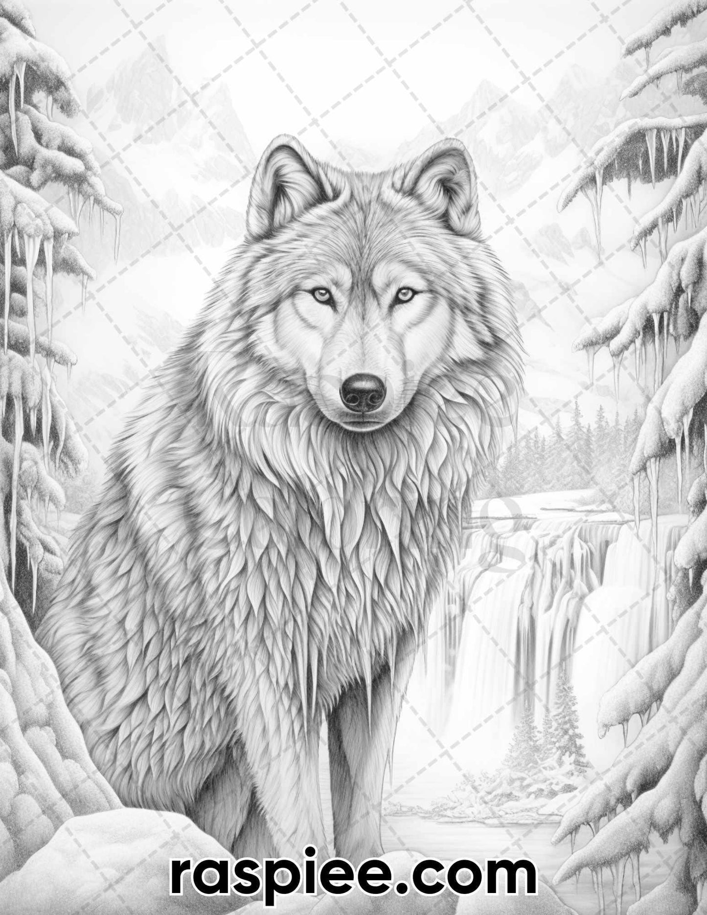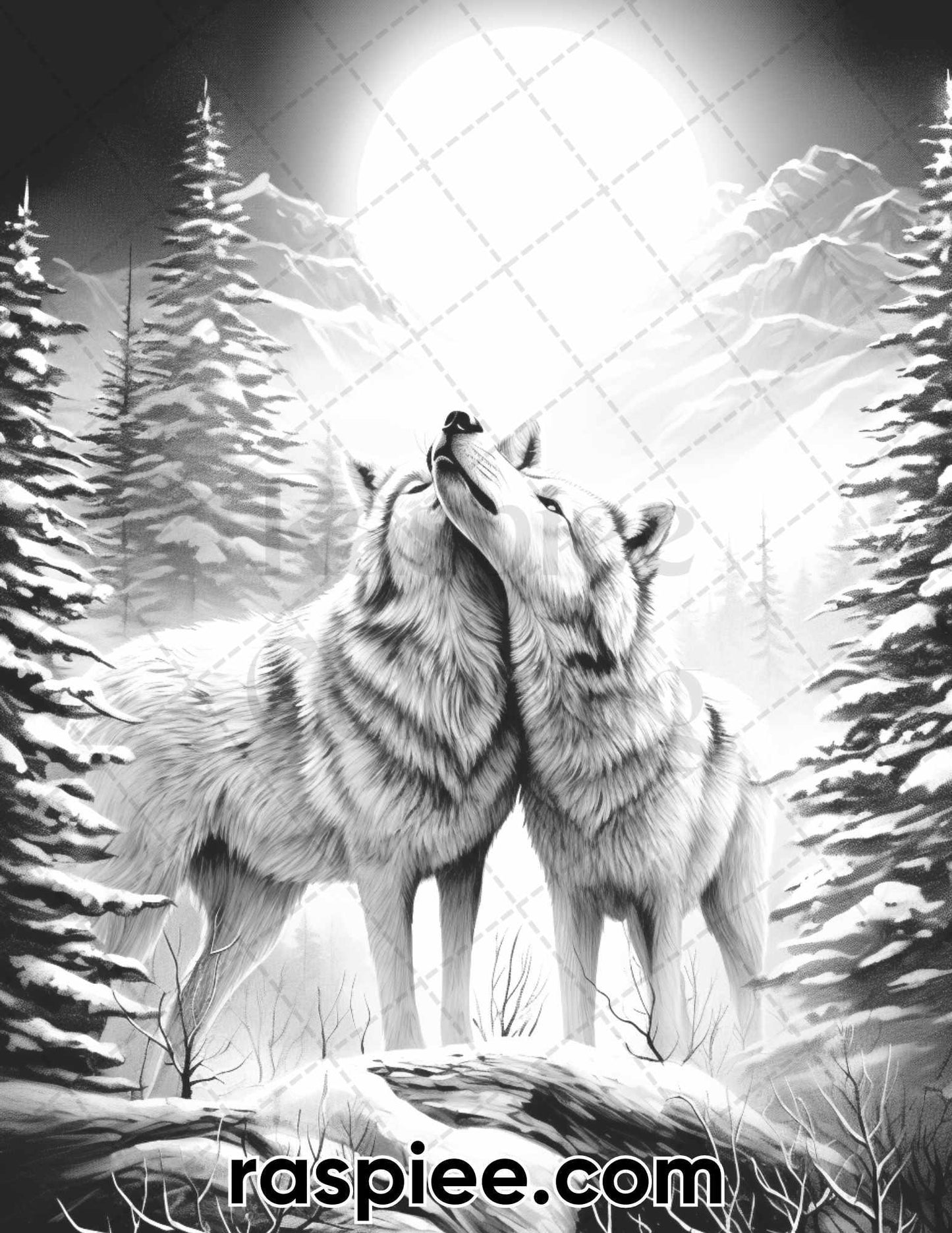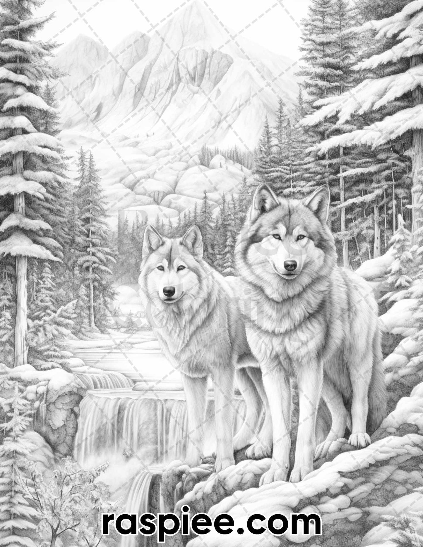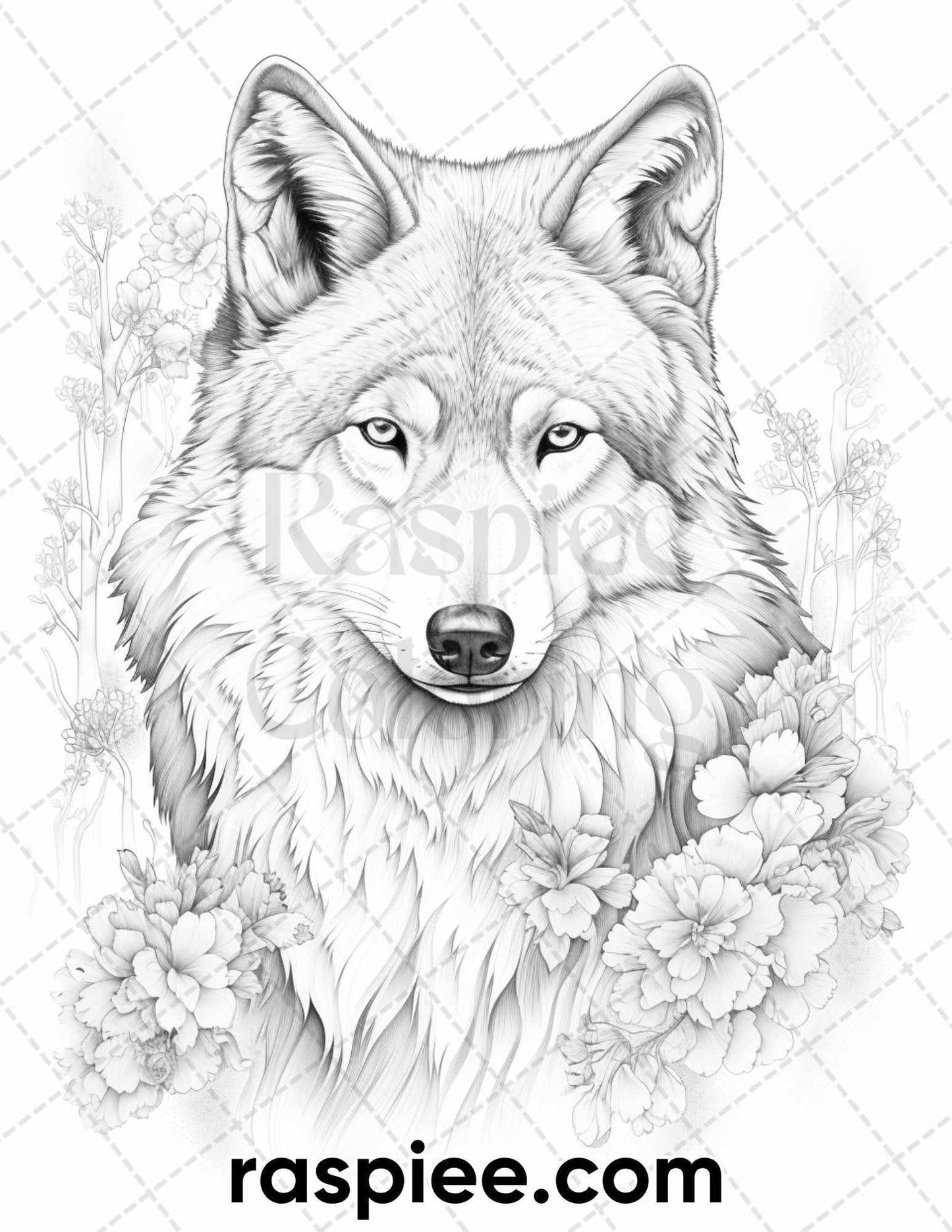 50 Winter Wolf Grayscale Coloring Pages for Adults, Printable PDF Instant Download