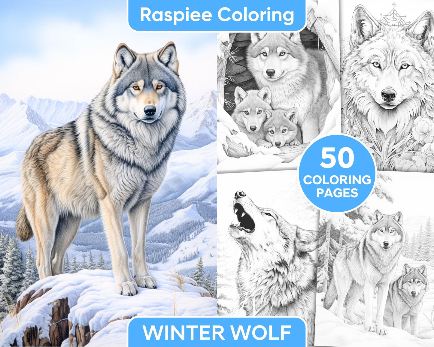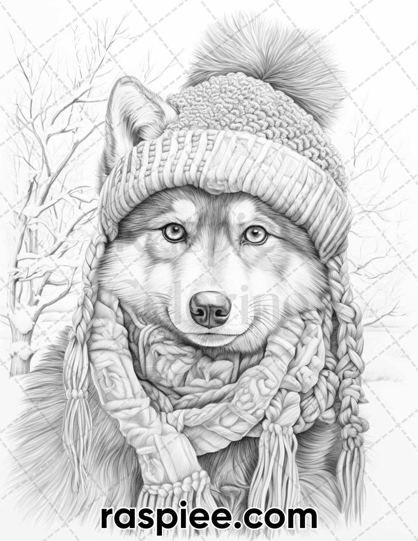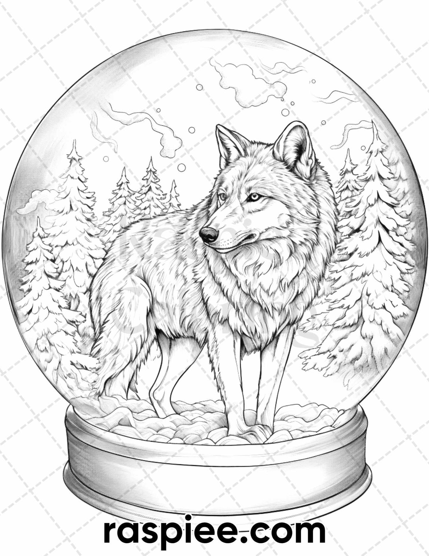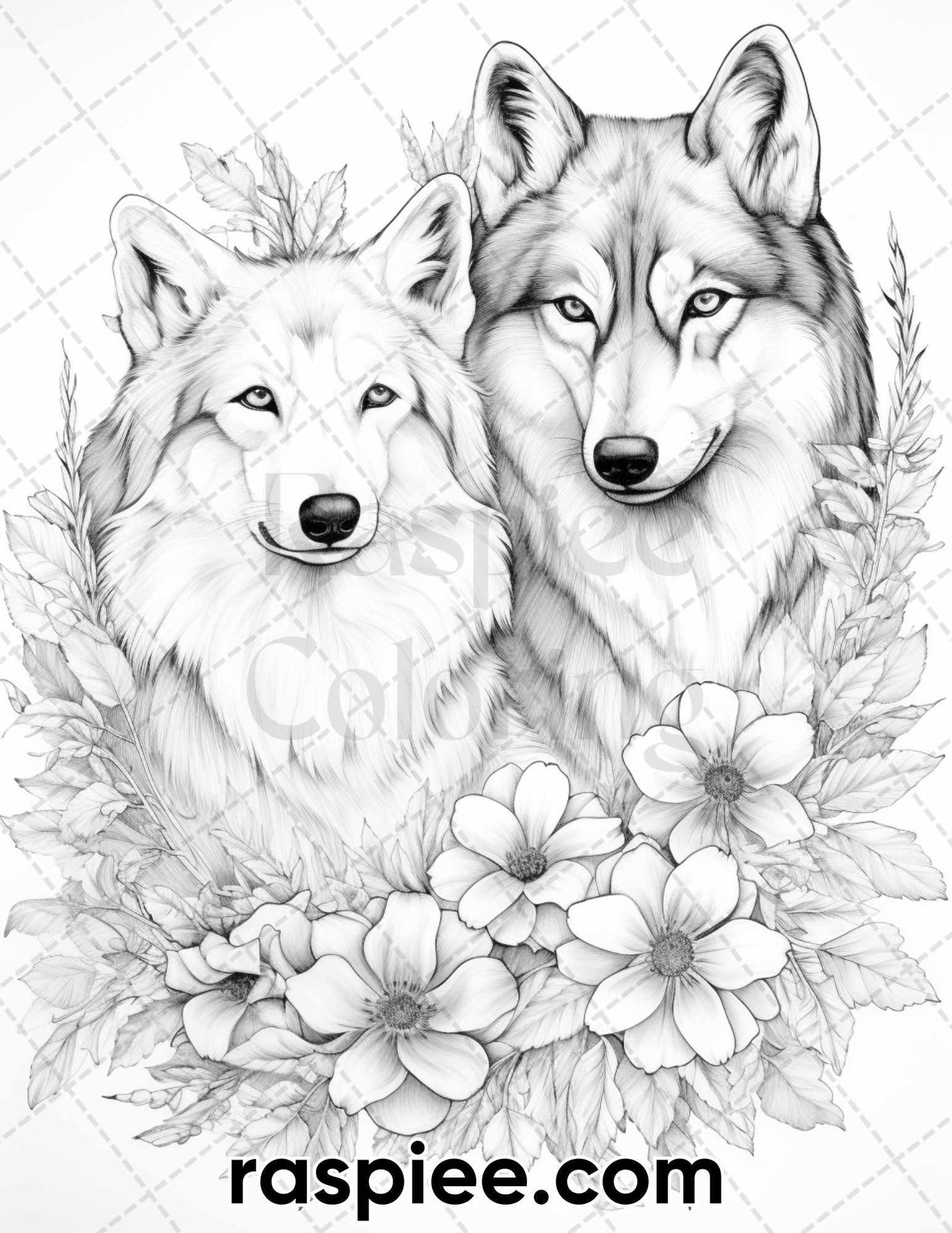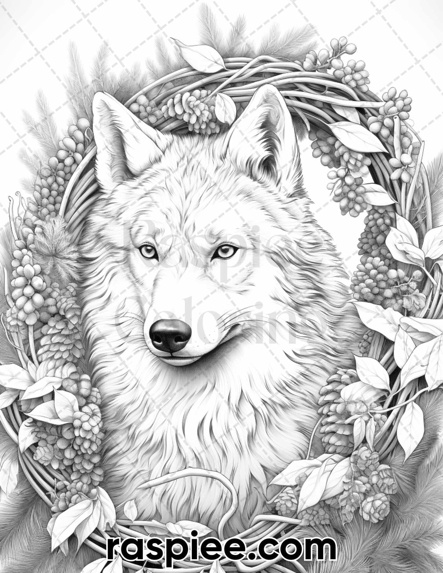 50 Winter Wolf Grayscale Coloring Pages for Adults, Printable PDF Instant Download
