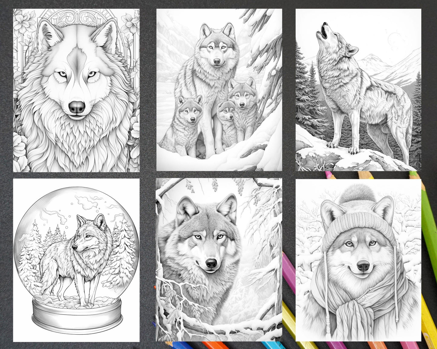 - Unique Designs: These grayscale pages capture the elegance of wolves in winter, making your artwork truly unique.