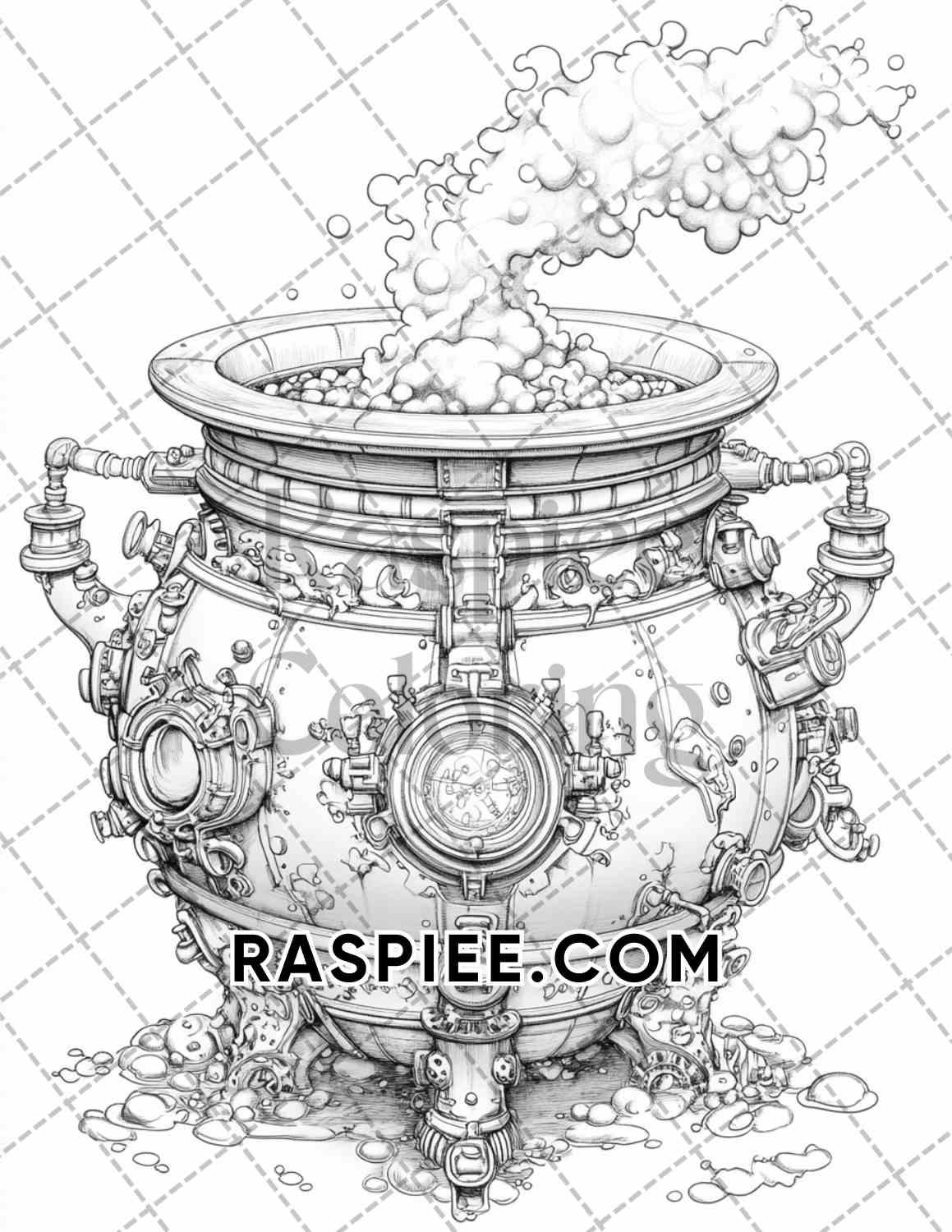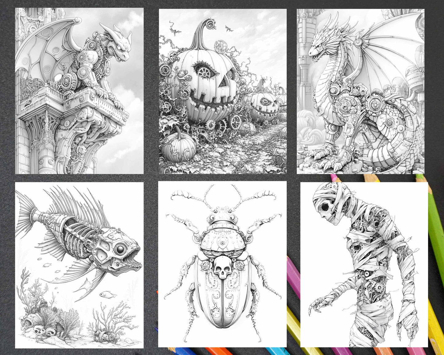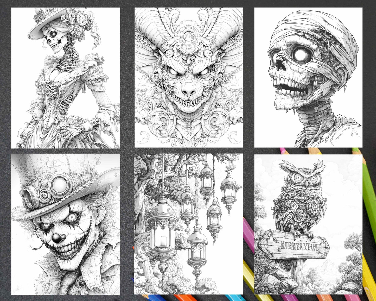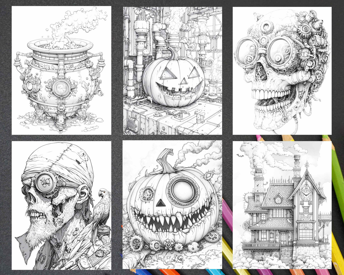Whether you're preparing for Halloween or simply love the fusion of steampunk and horror, this collection offers hours of artistic fun. Download now and embark on a thrilling coloring adventure!